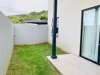 Enjoy your own private outdoor sanctuary, accessible directly from the living area via a sliding glass door. This space boasts a paved patio perfect for outdoor seating and a small, easily maintainable lawn, enclosed by high walls for enhanced seclusion. Distant hills provide a scenic backdrop. The property also includes two dedicated parking bays.