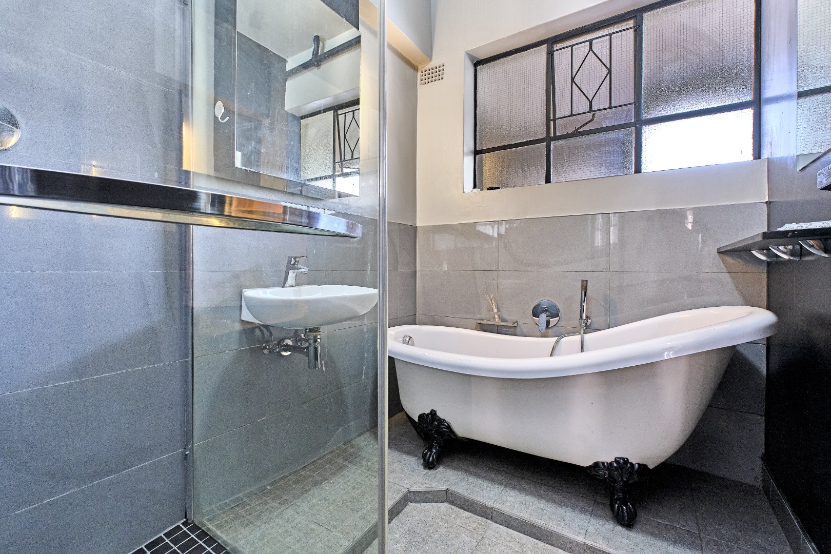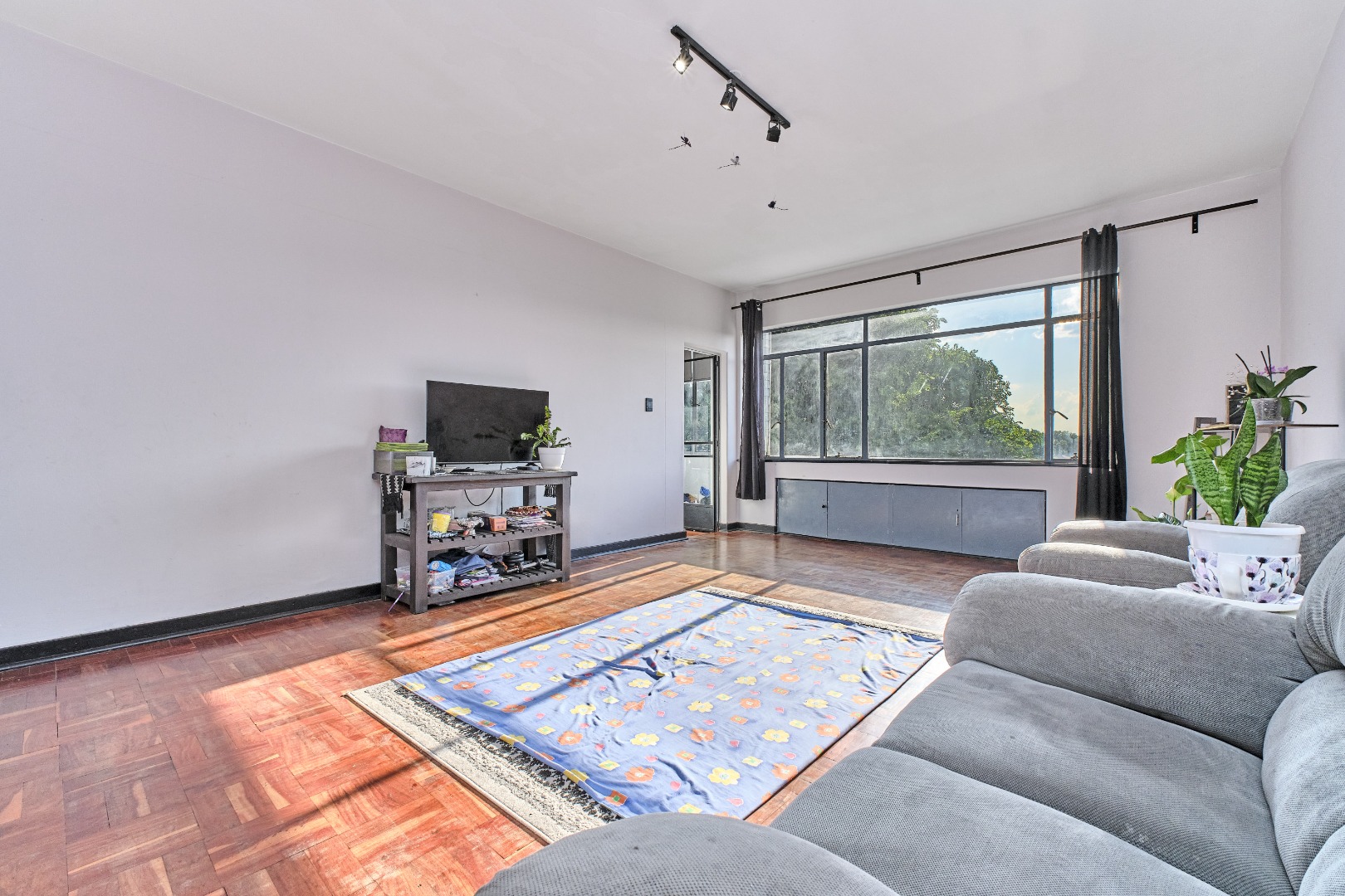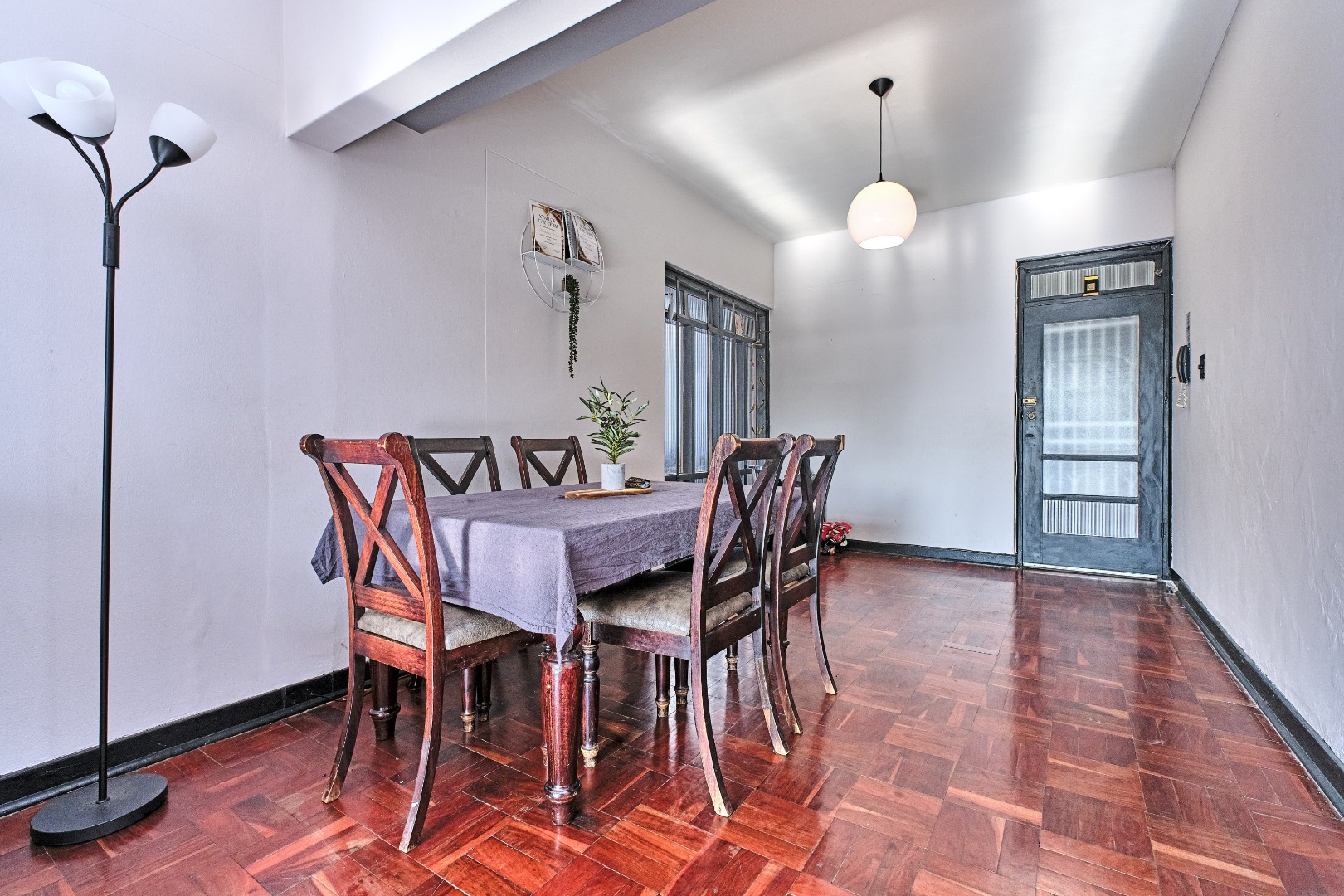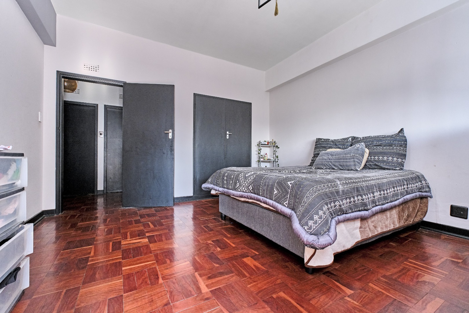 Discover this spacious 96 sqm apartment located in a secure complex in the vibrant Killarney suburb of Johannesburg. The interior boasts a generous open-plan living and dining area, characterized by classic parquet flooring that offers both character and the potential for modern refurbishment. Large windows throughout the living spaces invite abundant natural light, creating a bright and airy atmosphere, complemented by neutral white walls ready for your personal touch. The layout includes one well-proportioned bedroom and the convenience of two bathrooms, providing ample comfort and functionality for residents.
