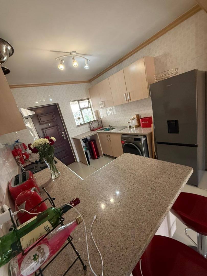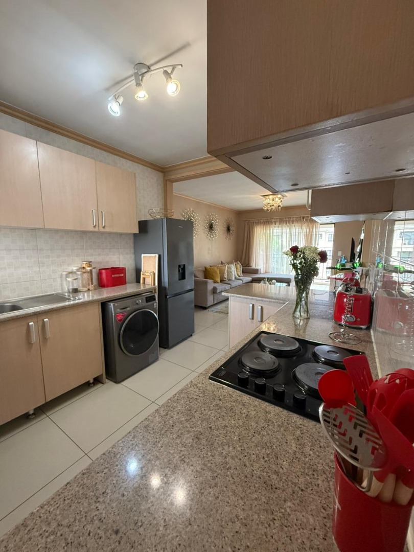 Discover modern living in this inviting 67 sqm apartment, ideally situated in the vibrant Noordwyk area of Midrand, South Africa. The residence features a contemporary open-plan layout, seamlessly connecting the living area with a stylish kitchen. Tiled flooring flows throughout, complemented by neutral-toned walls and abundant natural light. The kitchen is well-appointed with modern cabinetry, stone-look countertops, and a convenient breakfast bar, perfect for casual dining or entertaining. Integrated appliances and ample counter space enhance functionality, making it a practical and attractive space. This apartment offers two comfortable bedrooms, each designed with built-in wardrobes to maximise storage and maintain a tidy aesthetic. Large windows in the bedrooms ensure a bright and airy atmosphere. The single bathroom is neatly presented, catering to the needs of residents. While some bedrooms feature carpeting, the overall design prioritises comfort and utility. Step outside to a private, covered balcony, providing green views of the communal garden and surrounding complex – an ideal spot for relaxation. The property includes one dedicated parking bay, adding to the convenience of urban living. As part of a secure complex, residents benefit from 24-hour security, ensuring peace of mind. Fibre connectivity is also available, supporting modern work-from-home or entertainment needs. Noordwyk, Midrand, offers a dynamic suburban environment with easy access to essential amenities, major transport routes, and various lifestyle facilities, making it a sought-after location for professionals and families alike. Key Features: * 67 sqm modern apartment * 2 Bedrooms, 1 Bathroom * Open-plan living and kitchen * Tiled flooring throughout living areas * Modern kitchen with breakfast bar * Built-in wardrobes in bedrooms * Private covered balcony * 1 Dedicated parking bay * 24-hour security complex * Fibre ready