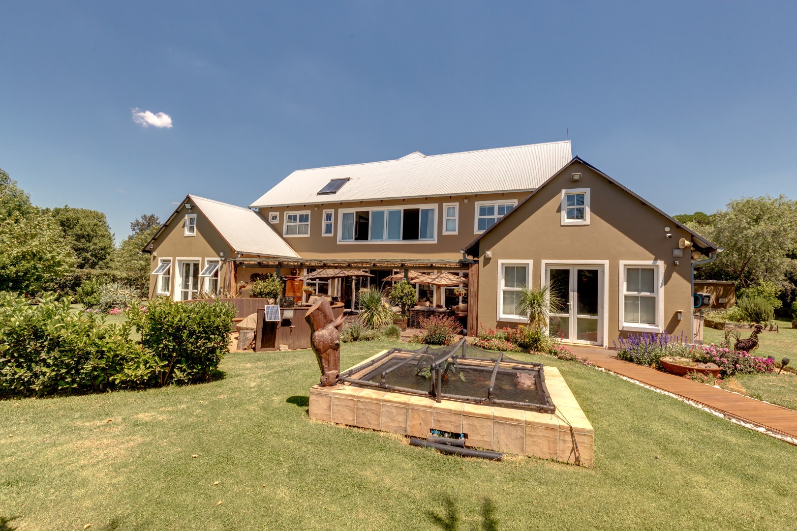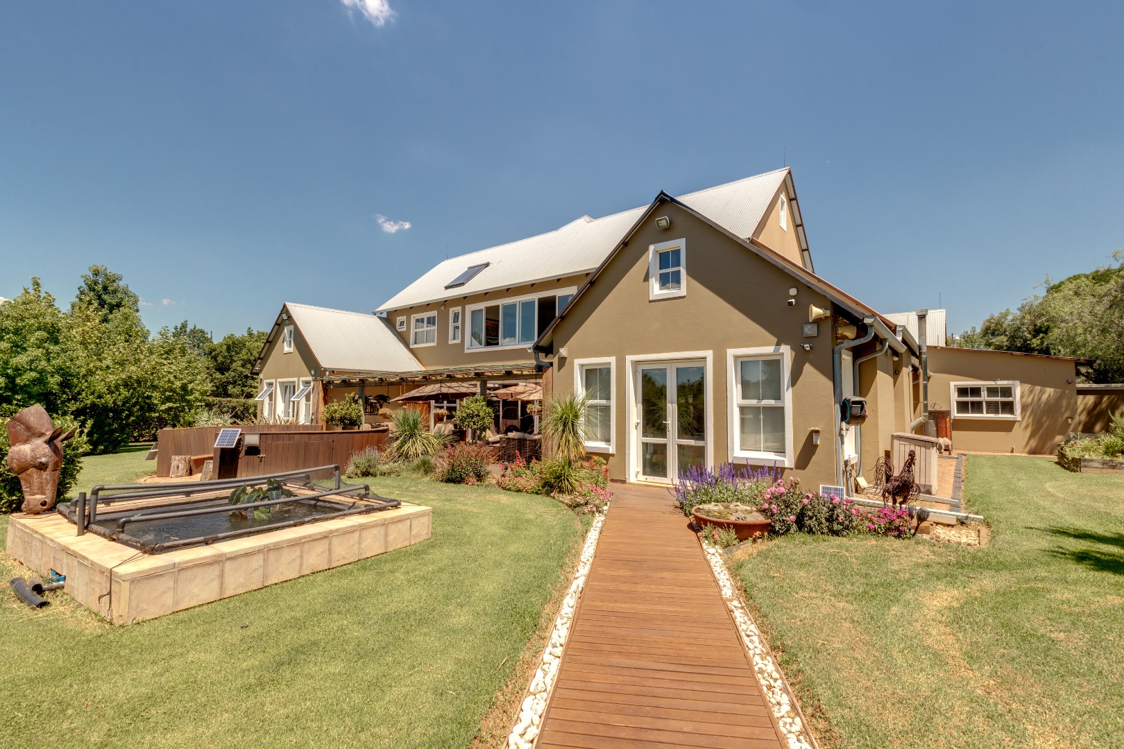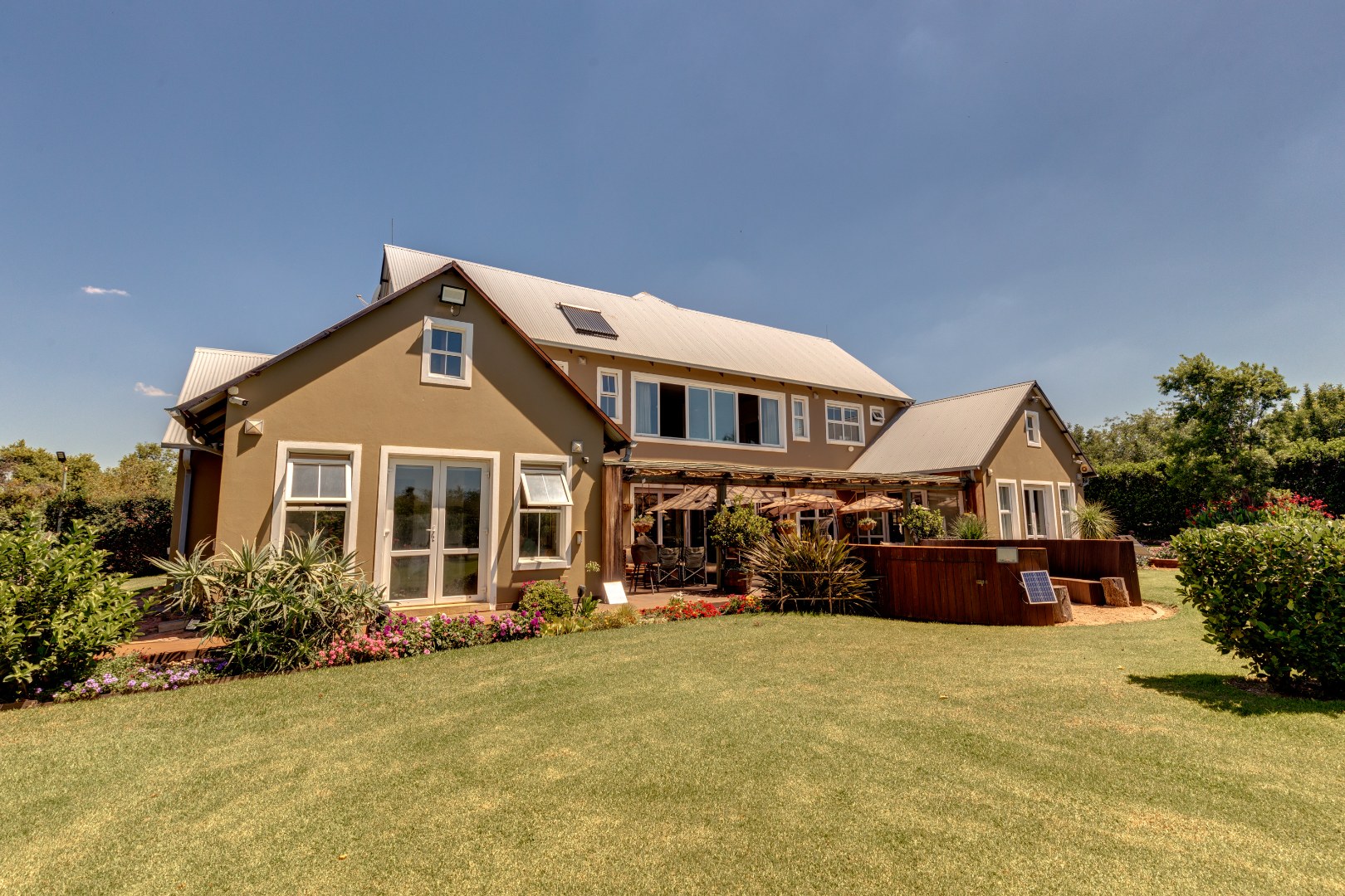 The home is supported by two solar geysers, four garages, and a fully automated irrigation system.