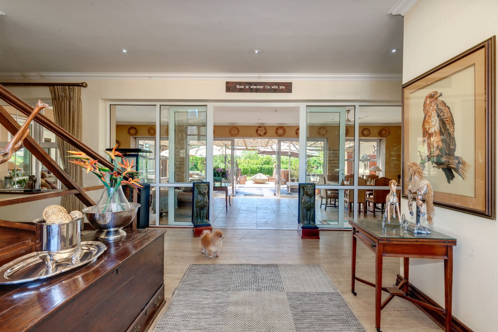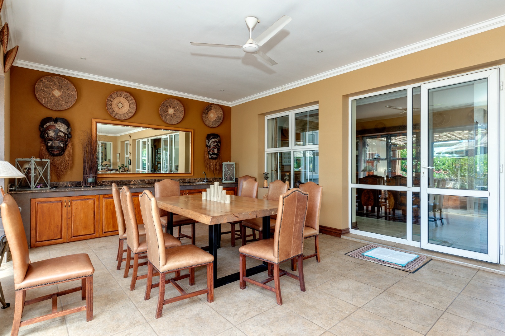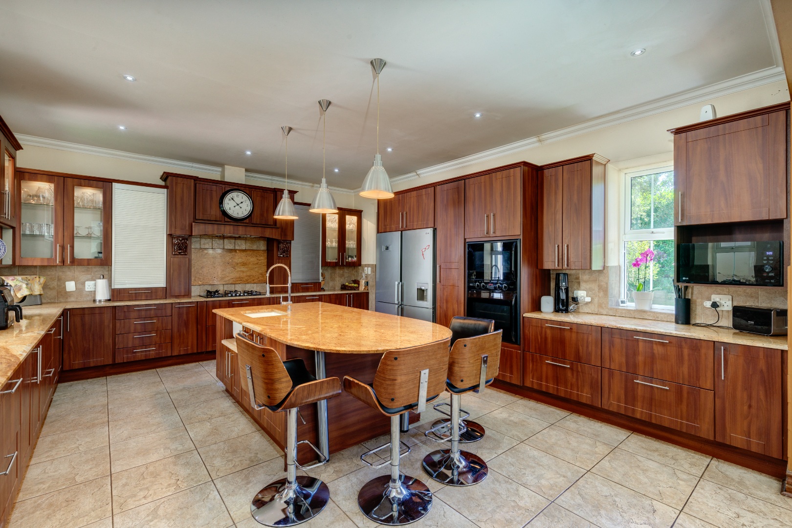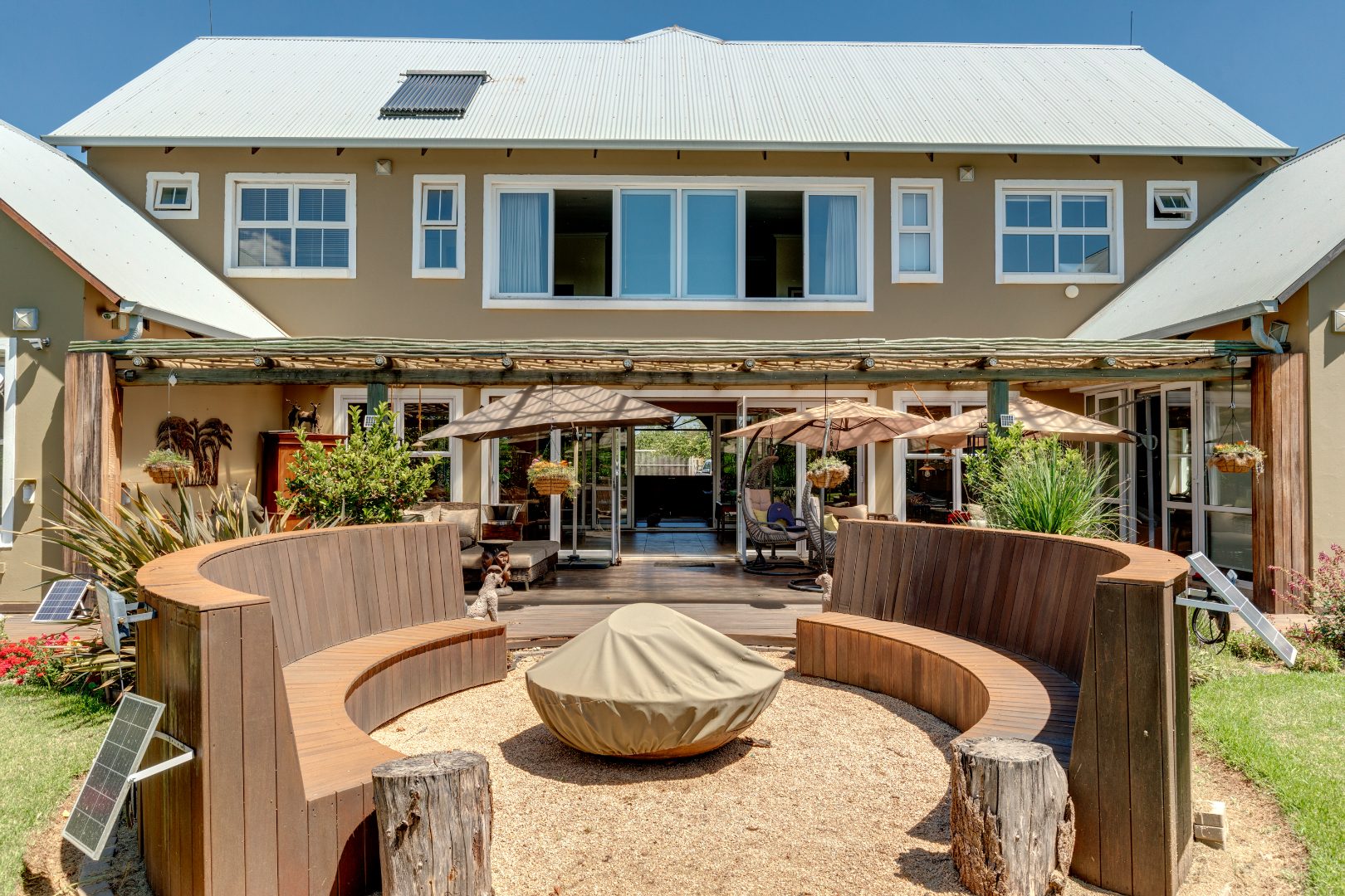 The home is supported by two solar geysers, four garages, and a fully automated irrigation system.