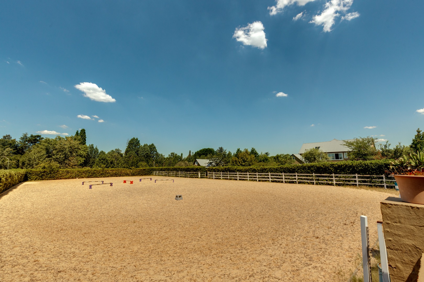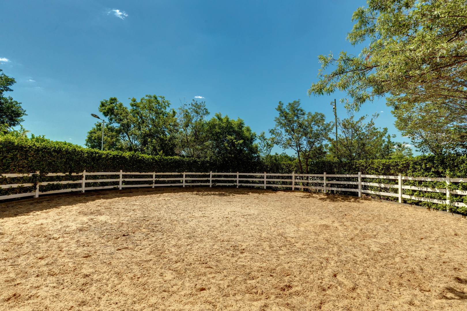 60m x 30m fibre arena, surrounded by manicured hedges