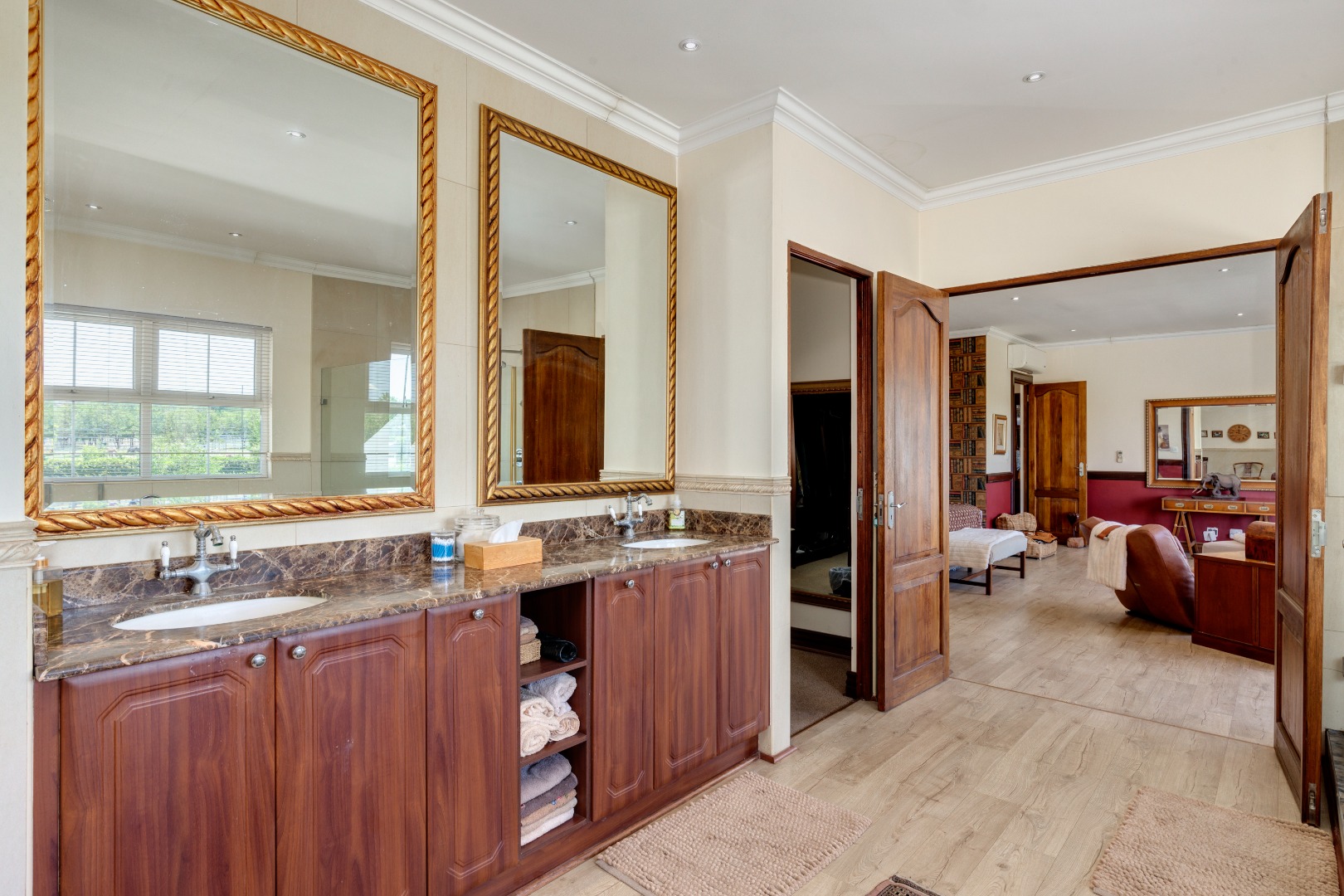 Living spaces are expansive and well-appointed, including:
