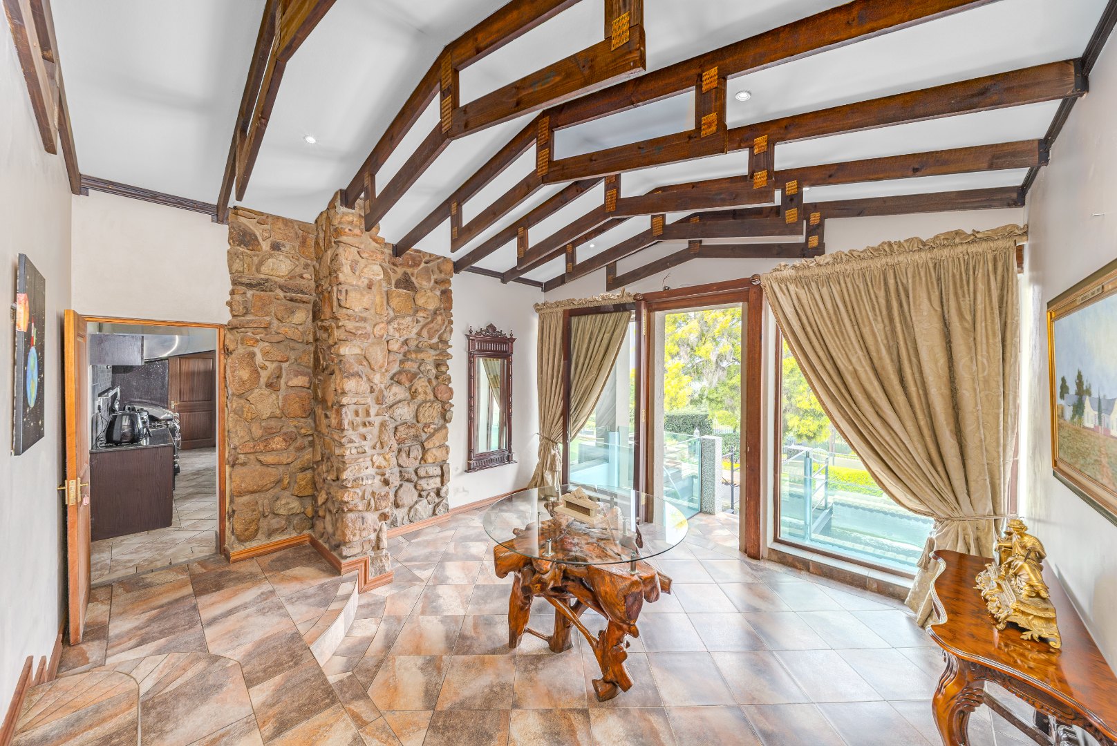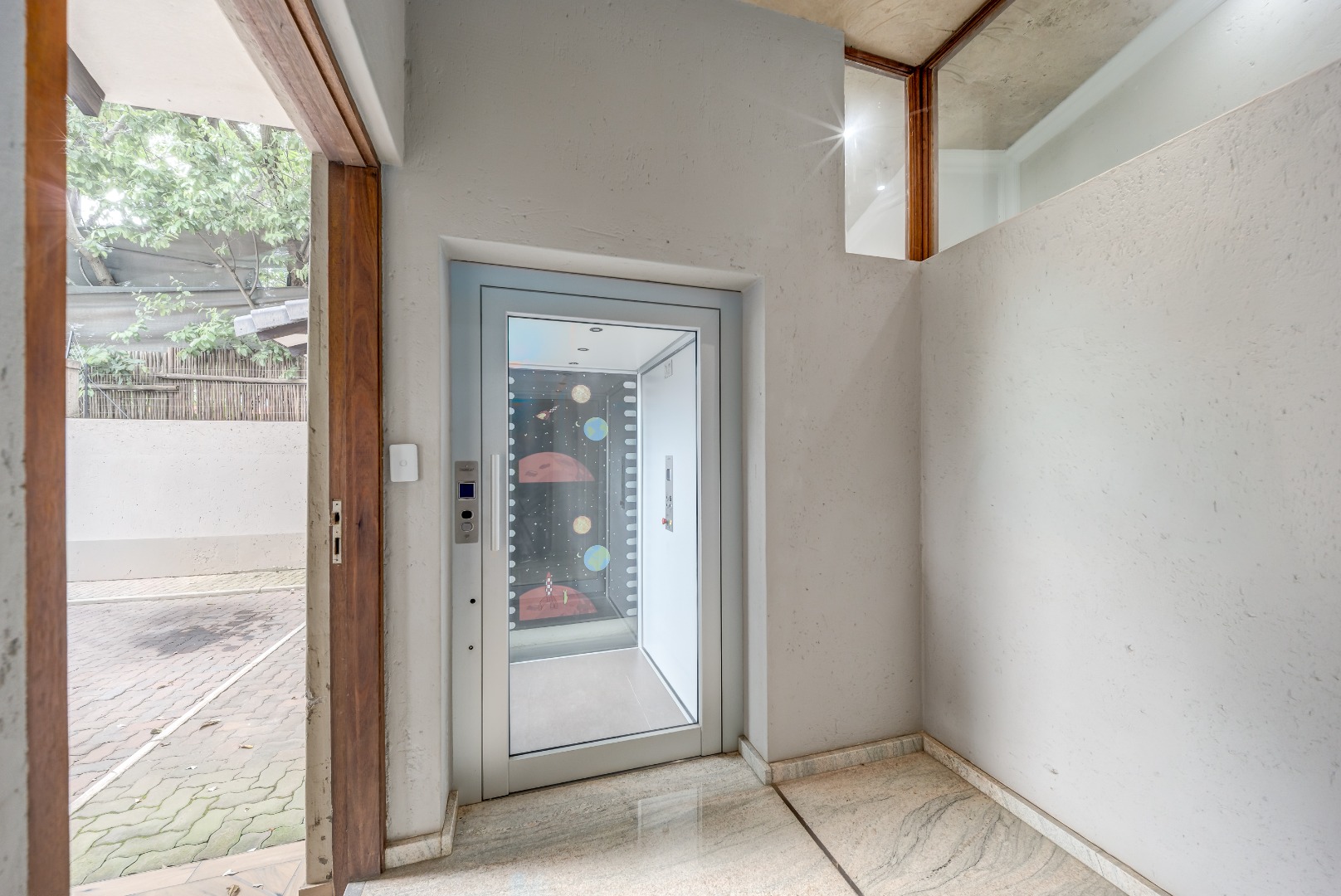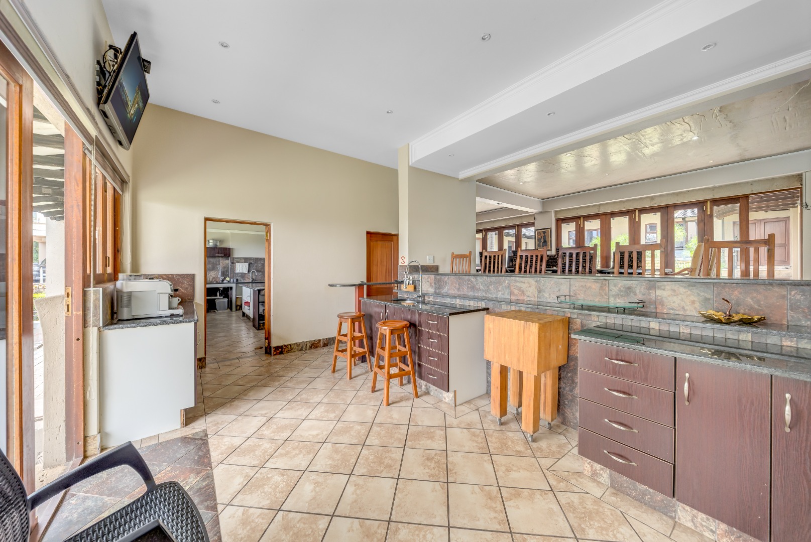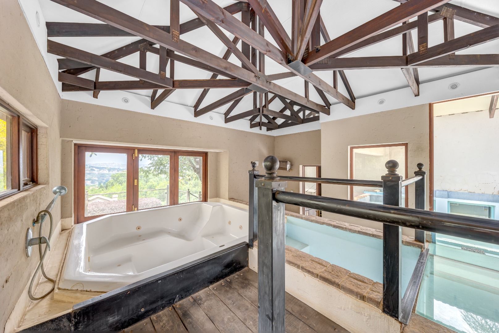 The interior boasts a thoughtful layout with two spacious lounges and a dedicated dining room, providing ample space for both relaxation and entertaining. The property features two well-appointed kitchens, catering to diverse culinary needs. A dedicated study offers a quiet retreat for work or contemplation, while a separate laundry room and ample storage ensure practical convenience. Unique amenities include an indoor jacuzzi with panoramic views, a professional-grade braai room with a built-in bar, and a modern glass elevator, adding a touch of sophistication and accessibility.