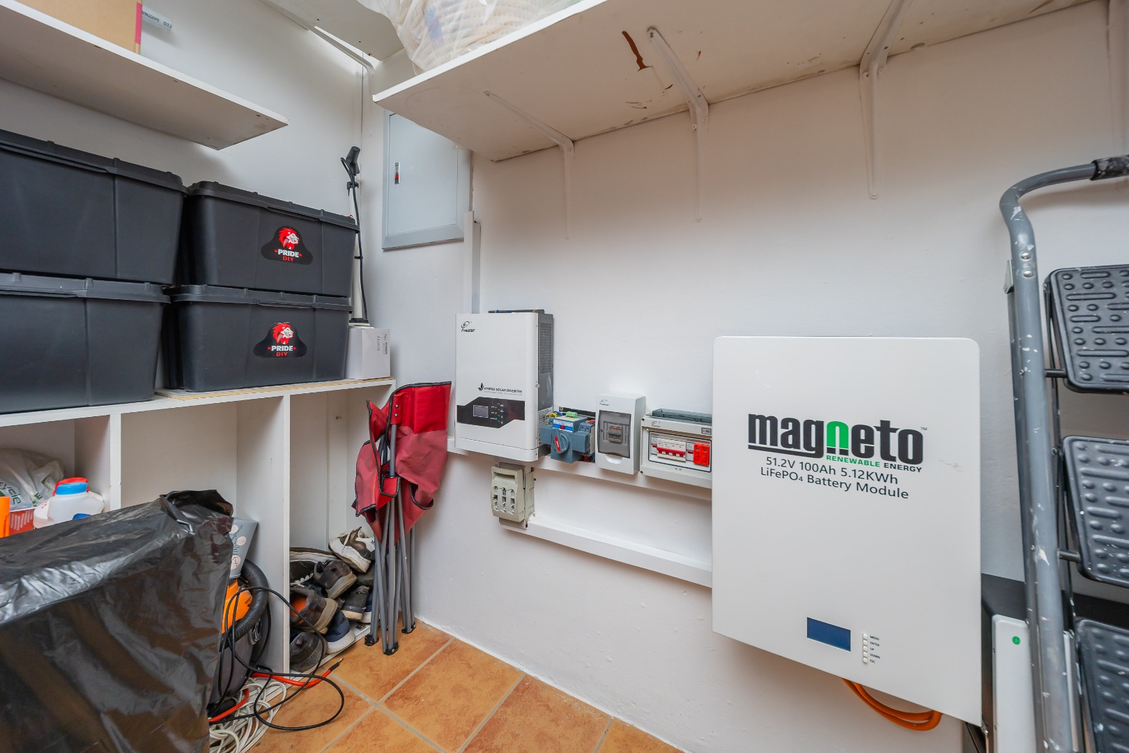 Energy-efficient features include solar panels with a 5.12kW inverter, prepaid electricity, and a geyser heat pump, all designed to reduce monthly costs.
