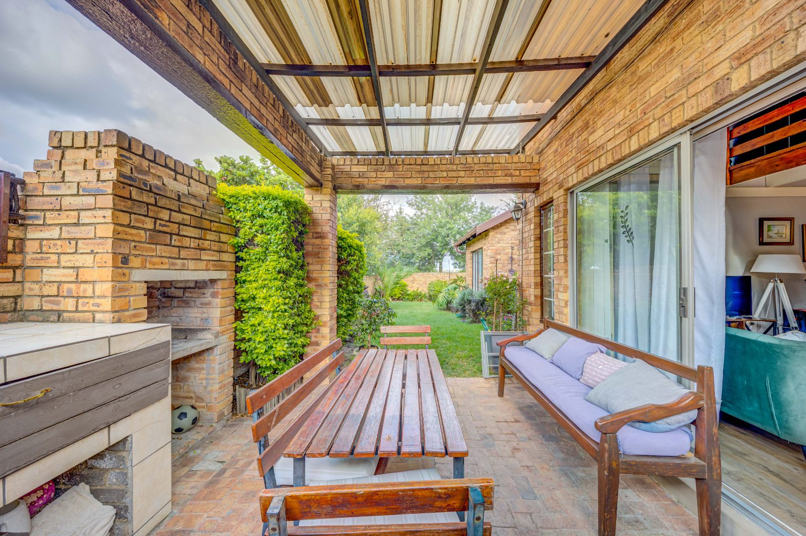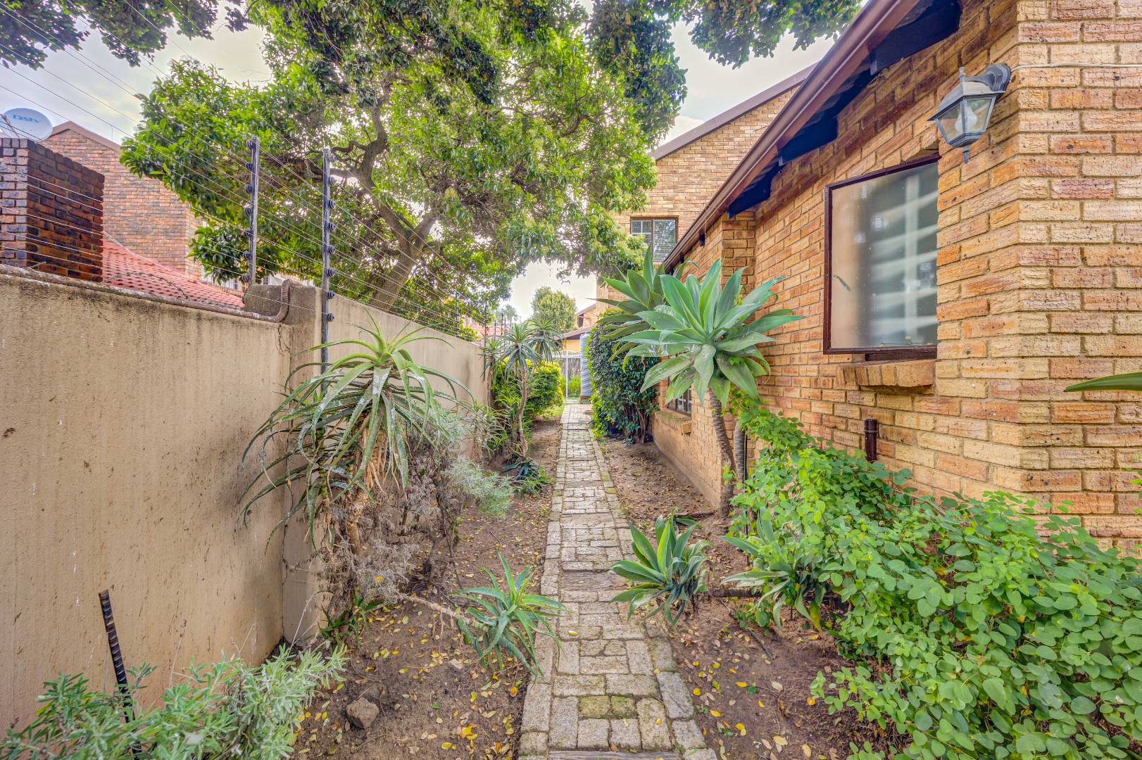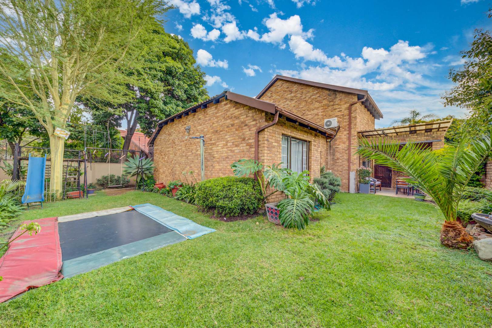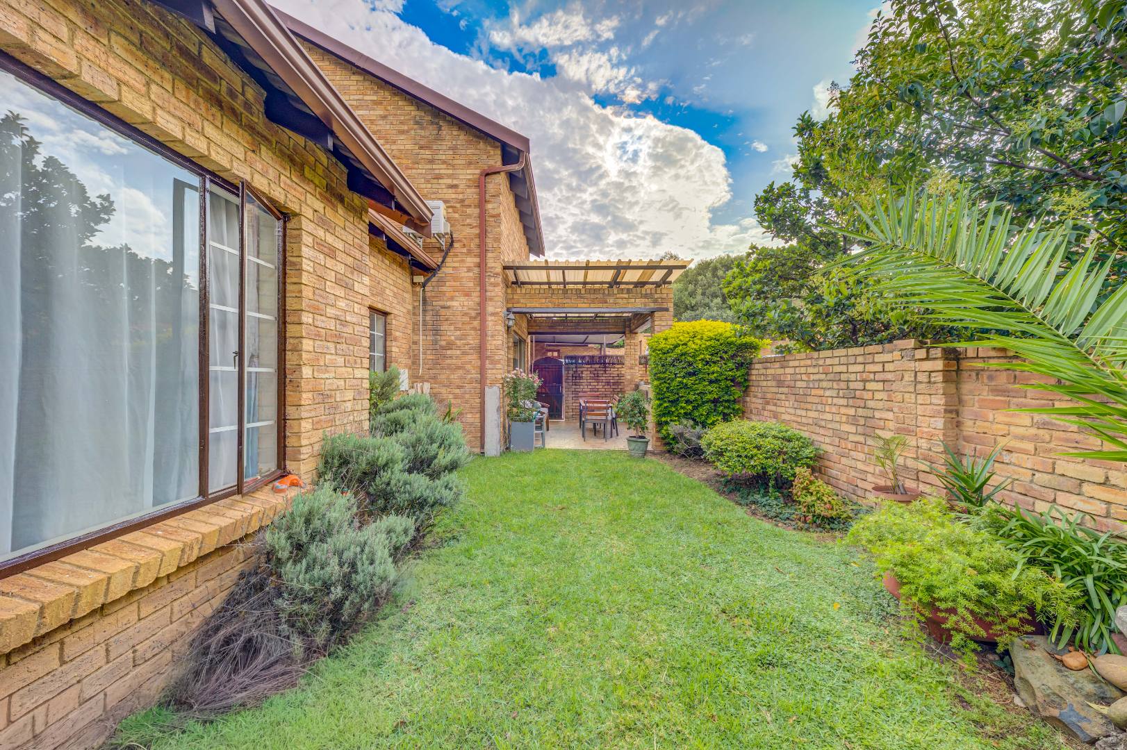 Nestled in a secure Bromhof estate, Randburg, this charming 3-bedroom, 2-bathroom home offers a comfortable 130 sqm of living space. The durable brick exterior and paved driveway lead to a double garage. Inside, an open-plan lounge and dining area seamlessly connect to a well-equipped kitchen. A dedicated study provides a quiet workspace, while three bedrooms, including a main with an ensuite, ensure ample accommodation. Sliding doors open to a private, covered patio overlooking an established, pet-friendly garden with a children's play area. Enjoy peace of mind with 24-hour estate security, access gates, burglar bars, and a walled perimeter. Practical features include rainwater harvesting tanks and fibre connectivity, all within a desirable suburban setting offering convenient access to local amenities.
