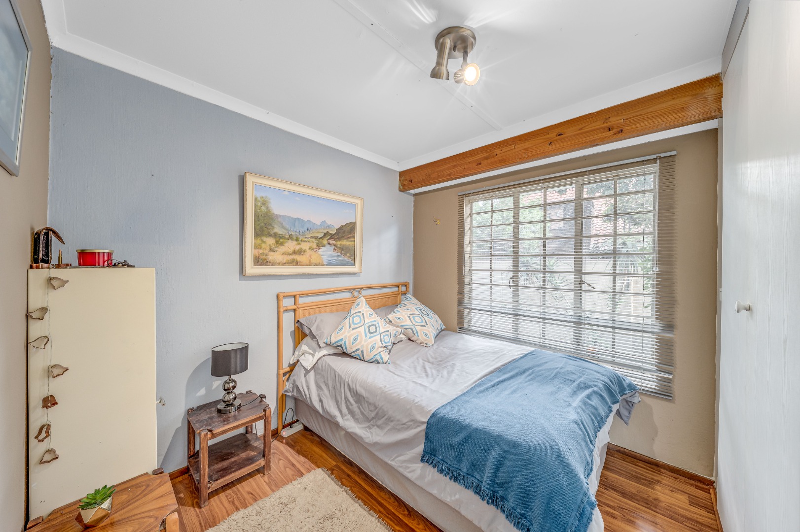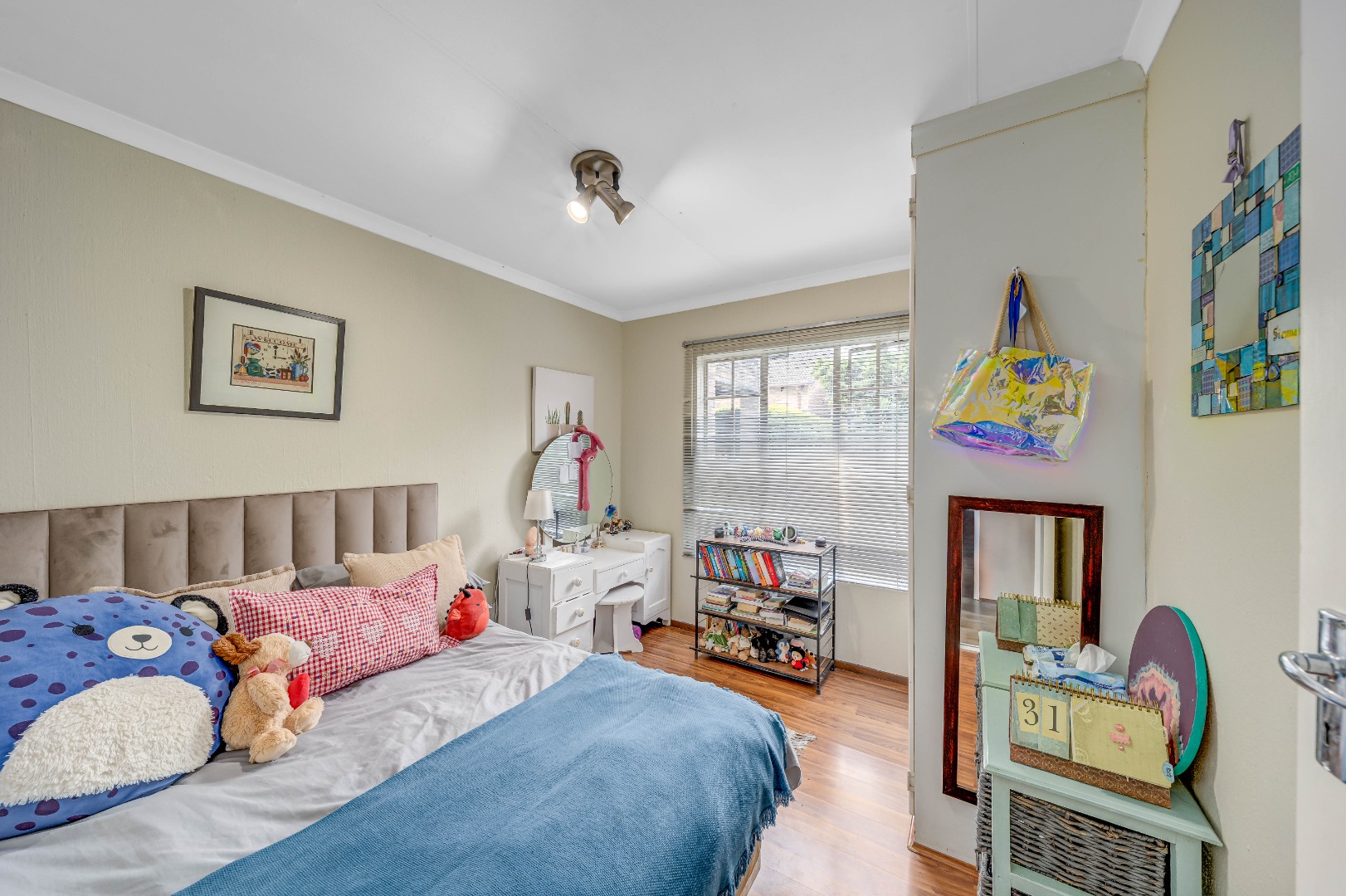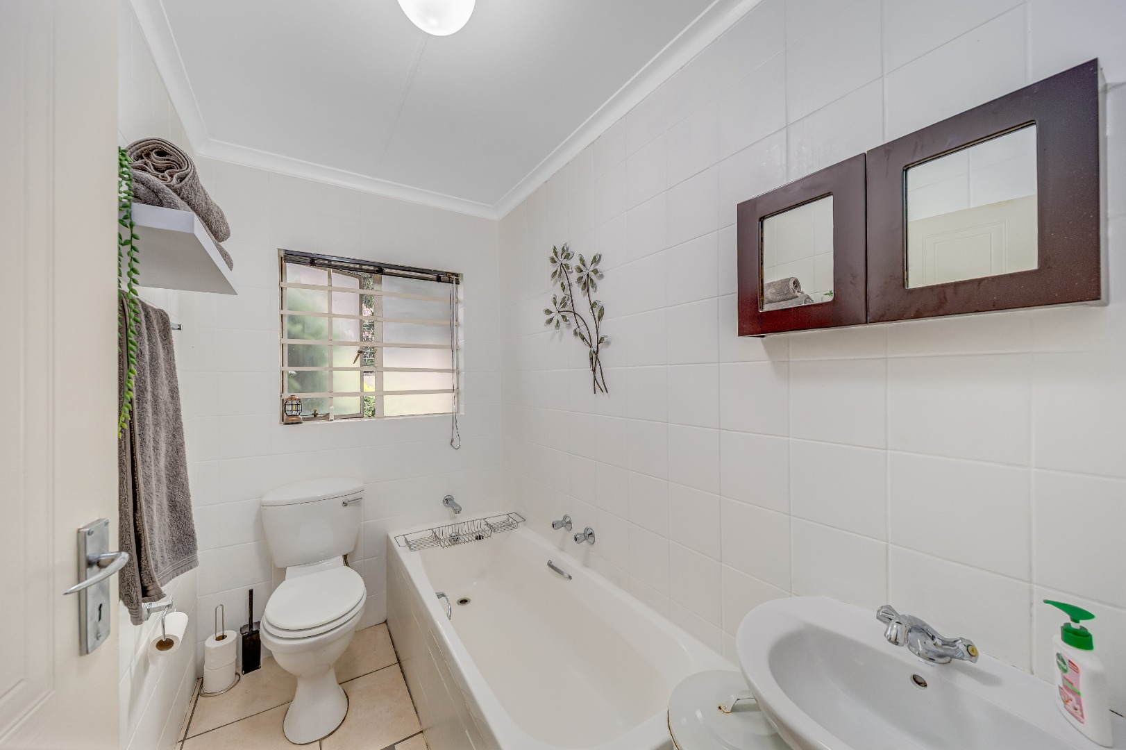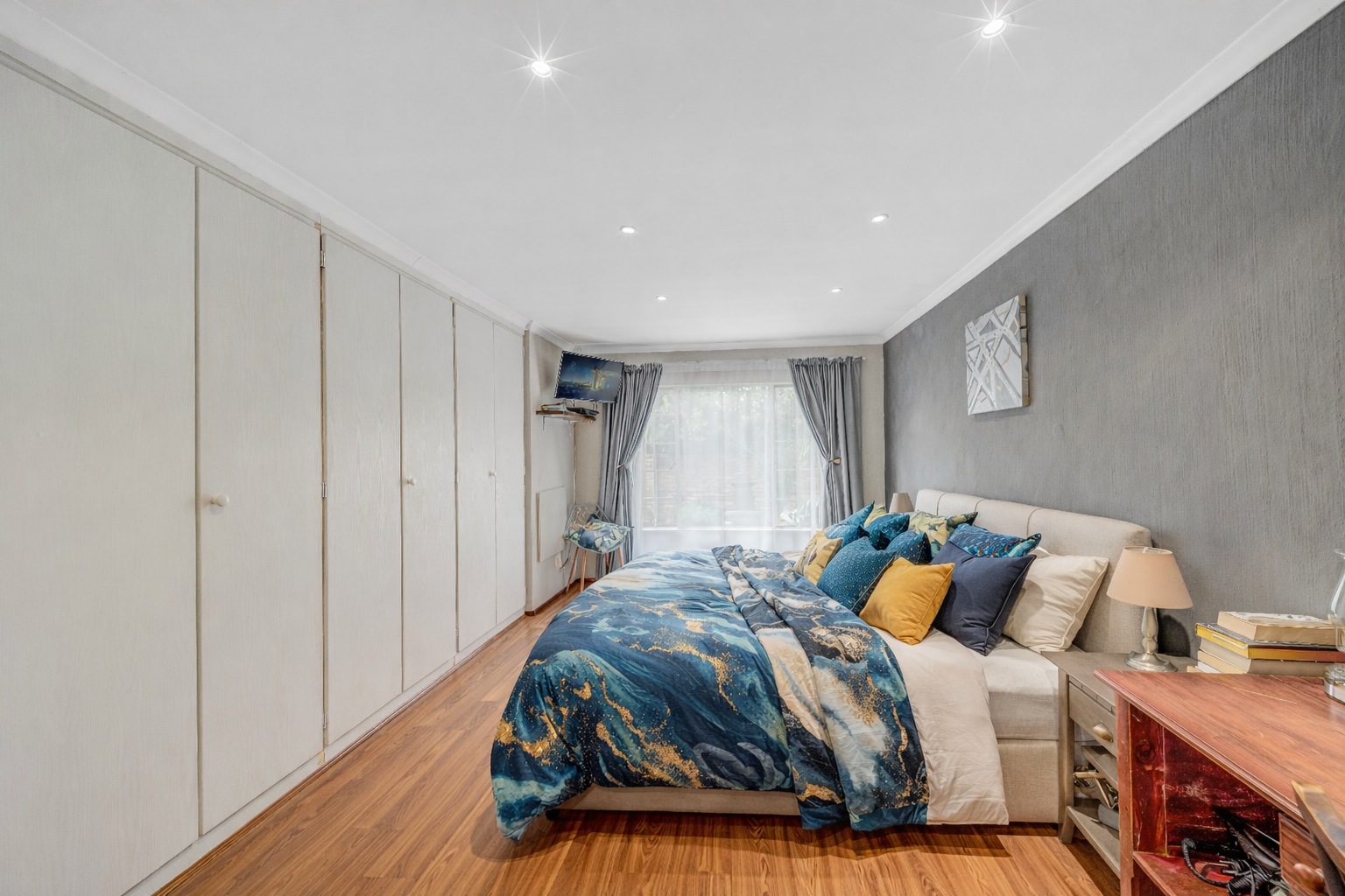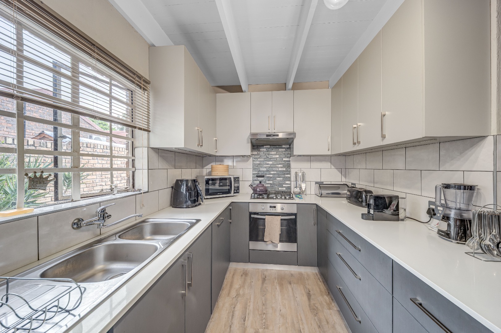Nestled in a secure Bromhof estate, Randburg, this charming 3-bedroom, 2-bathroom home offers a comfortable 130 sqm of living space. The durable brick exterior and paved driveway lead to a double garage. Inside, an open-plan lounge and dining area seamlessly connect to a well-equipped kitchen. A dedicated study provides a quiet workspace, while three bedrooms, including a main with an ensuite, ensure ample accommodation. Sliding doors open to a private, covered patio overlooking an established, pet-friendly garden with a children's play area. Enjoy peace of mind with 24-hour estate security, access gates, burglar bars, and a walled perimeter. Practical features include rainwater harvesting tanks and fibre connectivity, all within a desirable suburban setting offering convenient access to local amenities.
