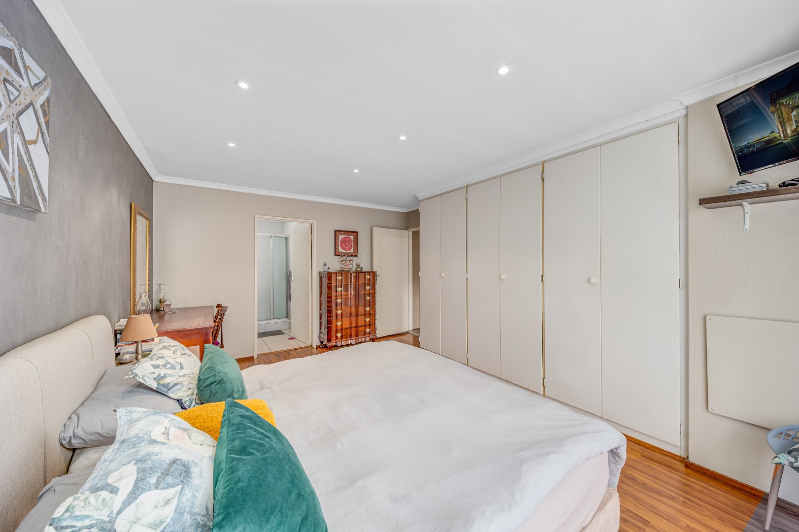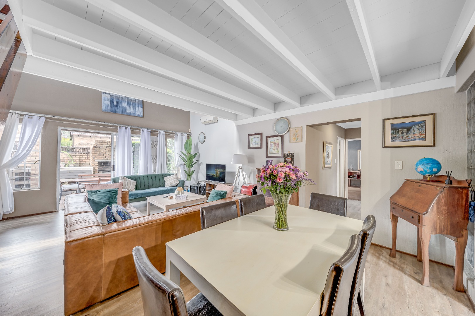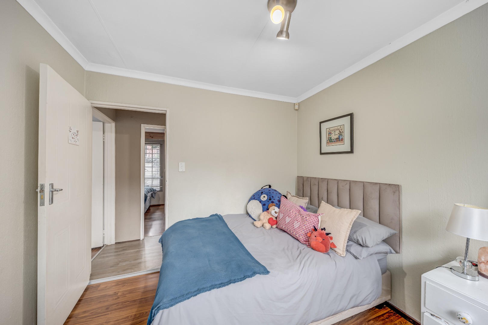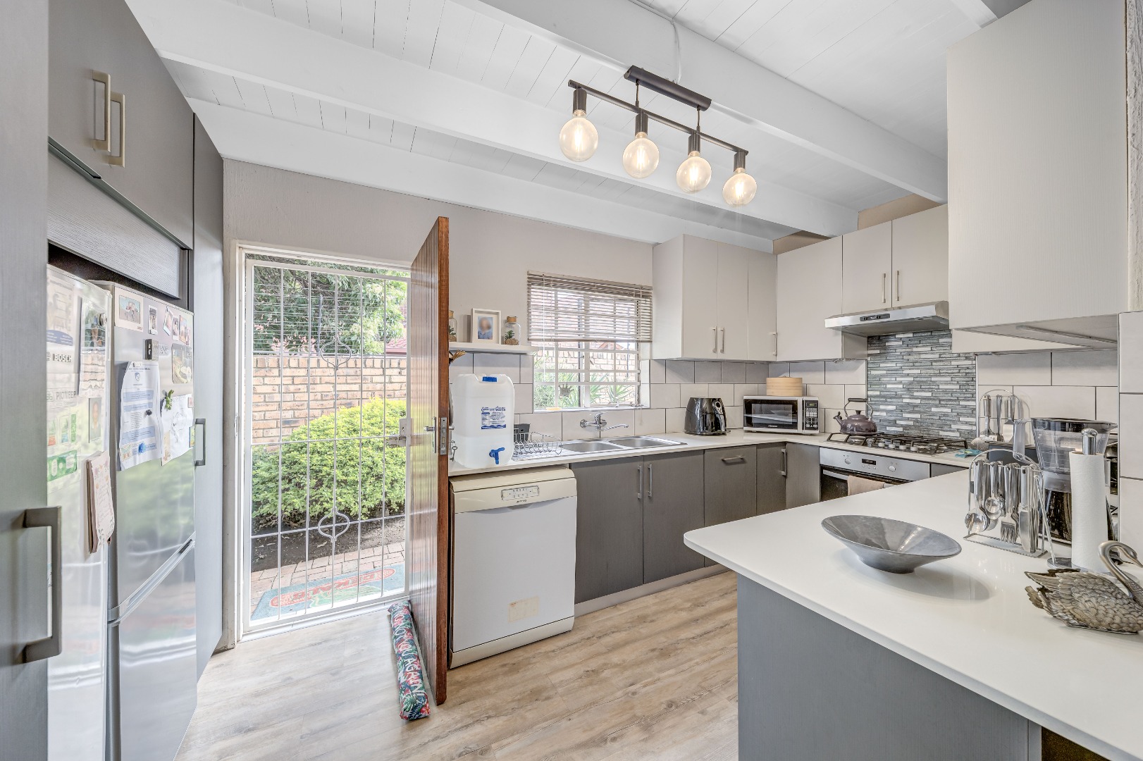 Nestled in a secure Bromhof estate, Randburg, this charming 3-bedroom, 2-bathroom home offers a comfortable 130 sqm of living space. The durable brick exterior and paved driveway lead to a double garage. Inside, an open-plan lounge and dining area seamlessly connect to a well-equipped kitchen. A dedicated study provides a quiet workspace, while three bedrooms, including a main with an ensuite, ensure ample accommodation. Sliding doors open to a private, covered patio overlooking an established, pet-friendly garden with a children's play area. Enjoy peace of mind with 24-hour estate security, access gates, burglar bars, and a walled perimeter. Practical features include rainwater harvesting tanks and fibre connectivity, all within a desirable suburban setting offering convenient access to local amenities.