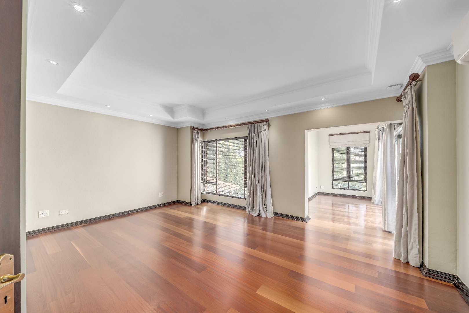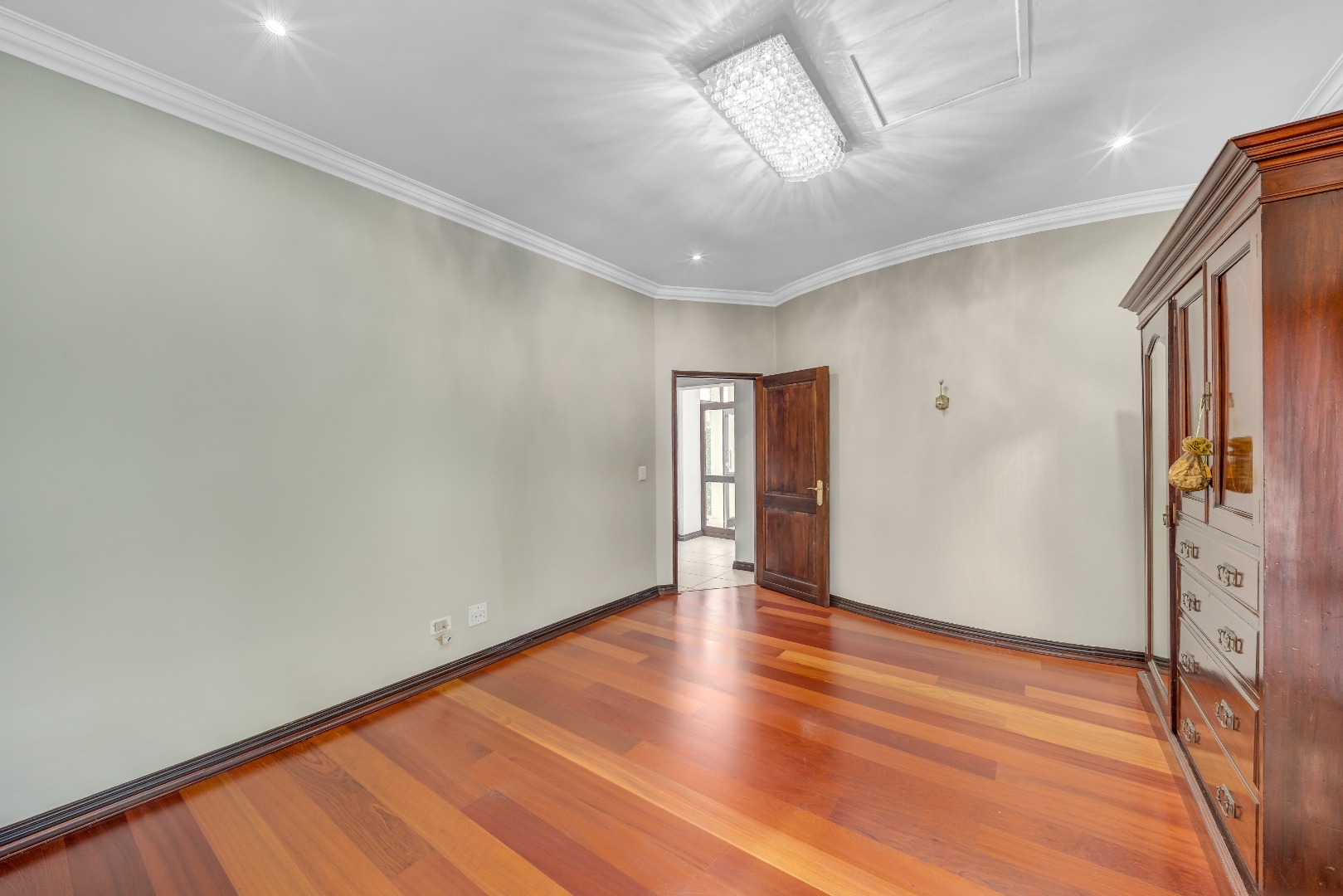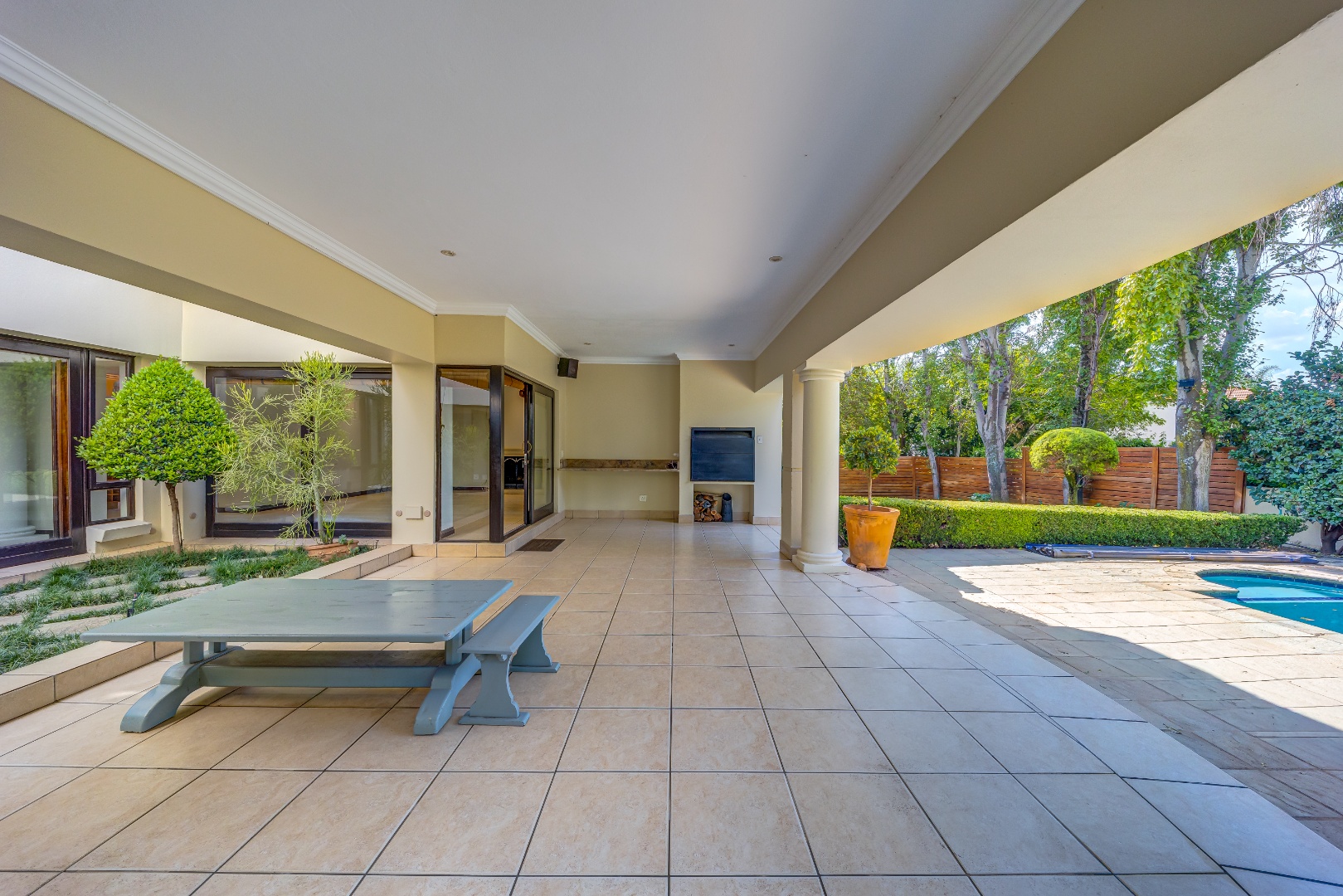 Step outside to a private oasis featuring a swimming pool and an expansive covered patio, perfect for outdoor entertaining and relaxation. The lush, mature garden is equipped with an irrigation system, ensuring year-round beauty. Additional amenities include staff quarters, a clubhouse within the estate, and a double garage with a driveway, offering ample parking.