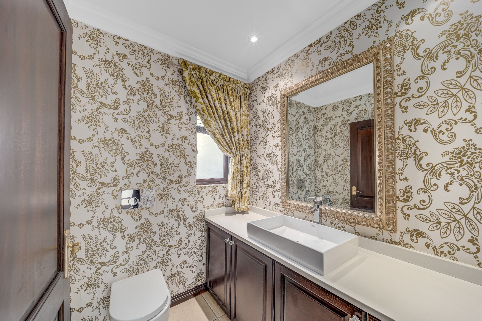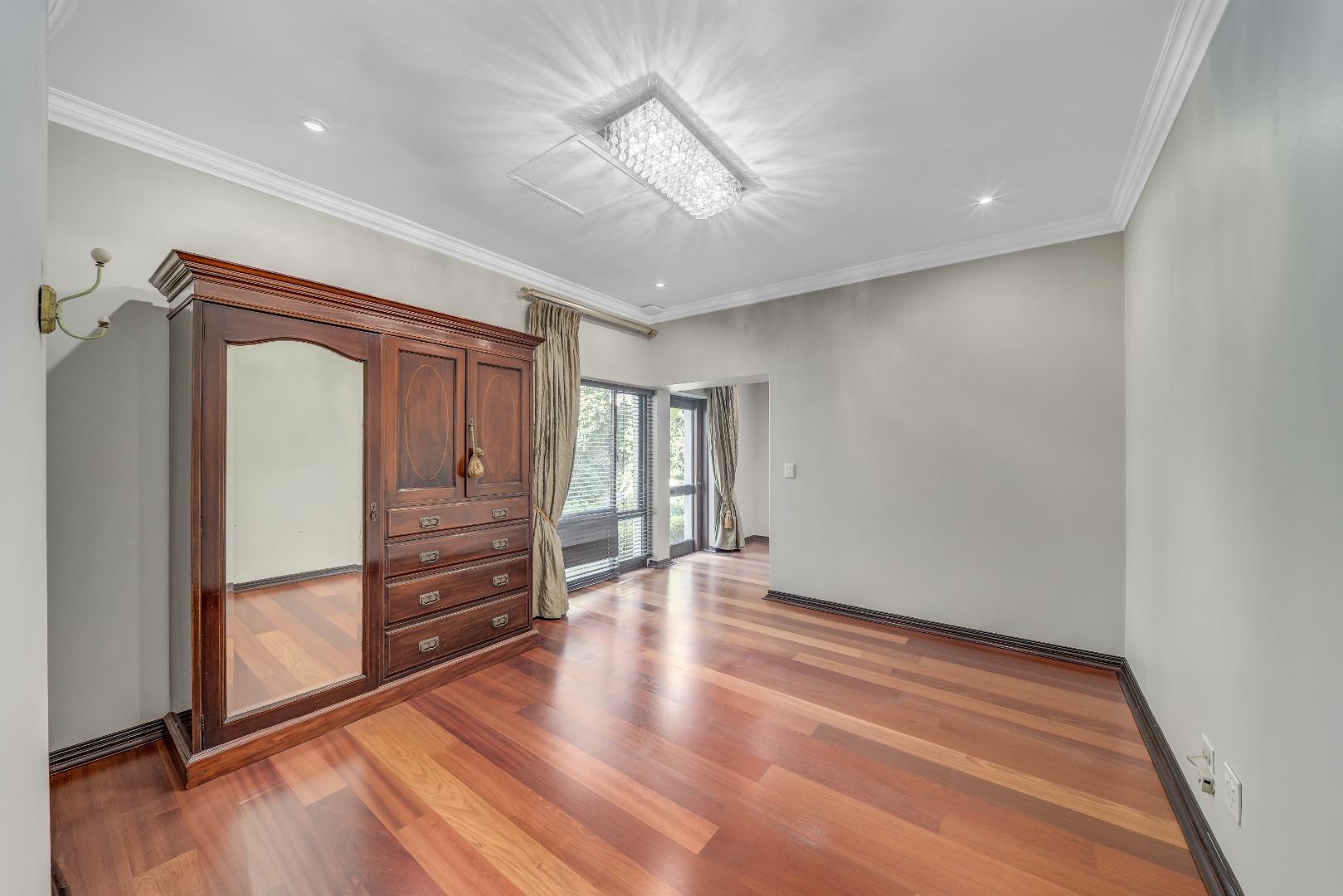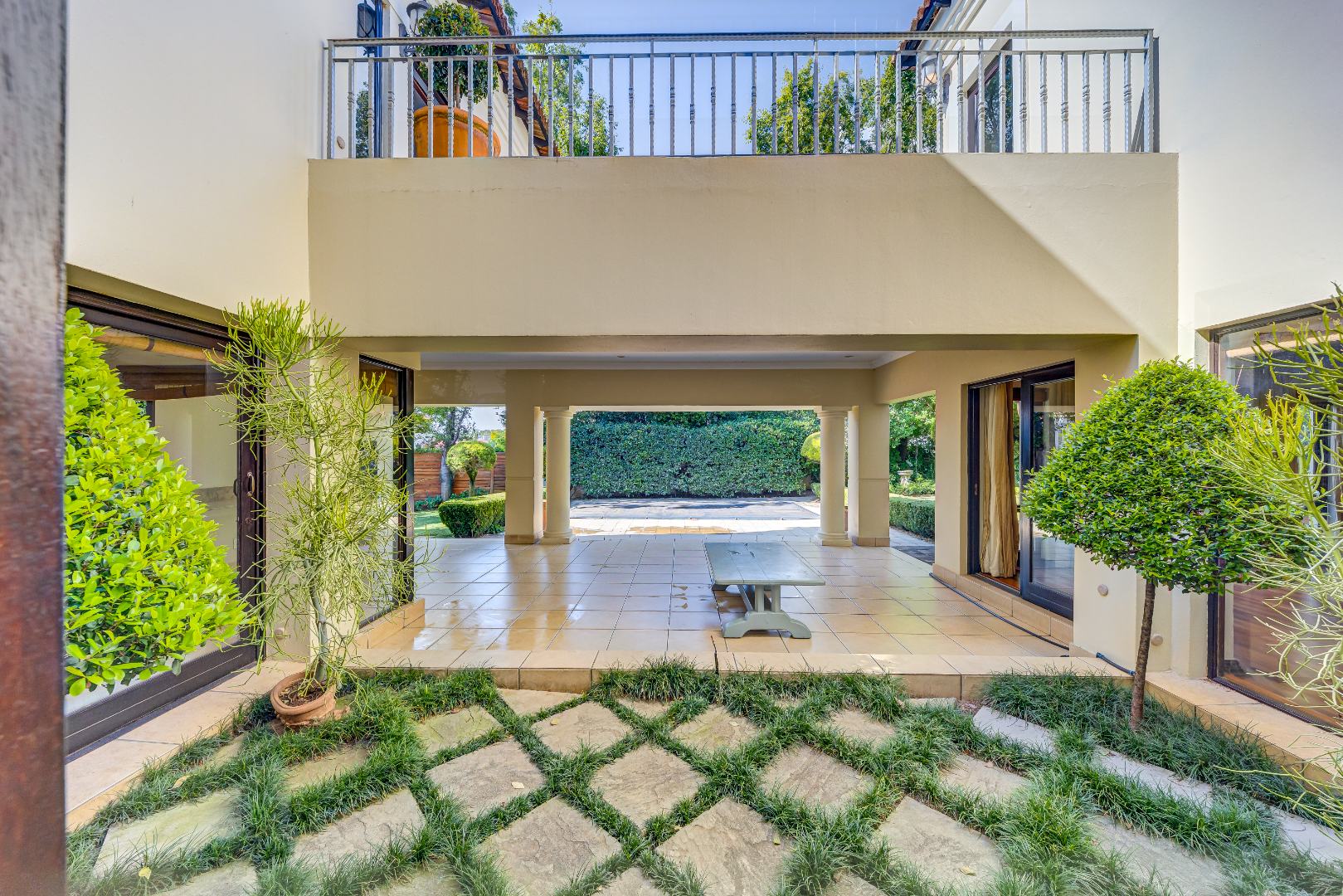 Step outside to a private oasis featuring a swimming pool and an expansive covered patio, perfect for outdoor entertaining and relaxation. The lush, mature garden is equipped with an irrigation system, ensuring year-round beauty. Additional amenities include staff quarters, a clubhouse within the estate, and a double garage with a driveway, offering ample parking.
