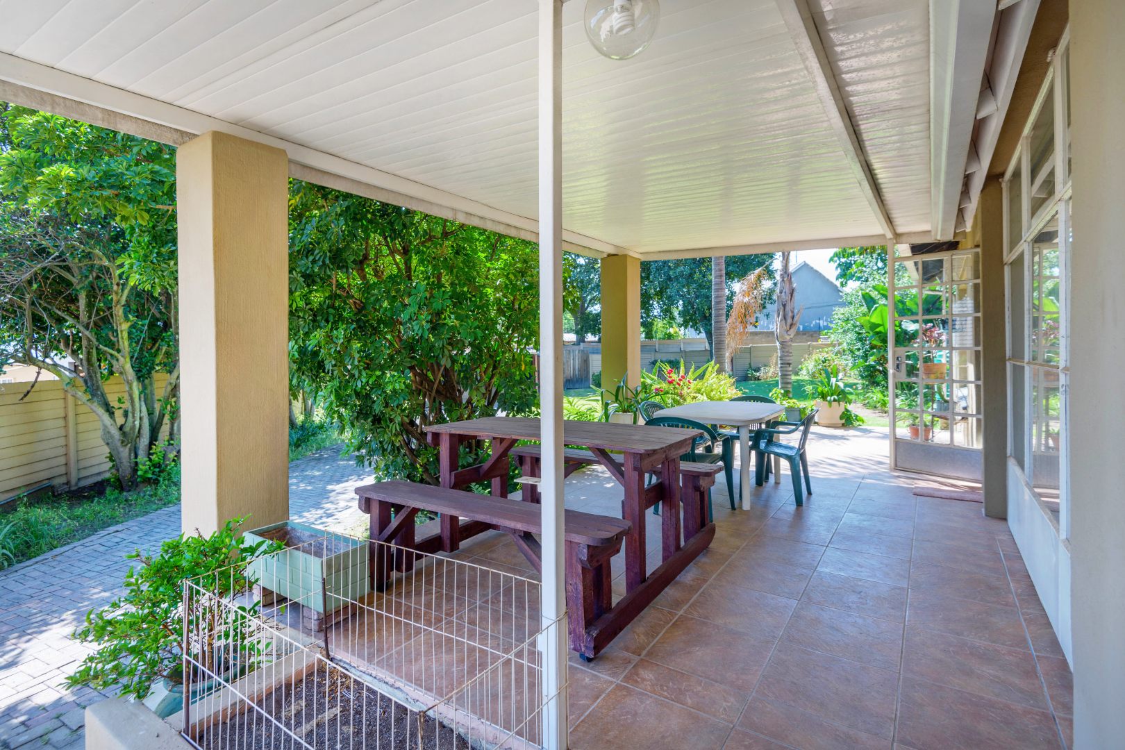 Comfort is provided by three well-proportioned bedrooms, with one offering an en-suite bathroom. The property includes a total of two bathrooms. Outdoor living is enhanced by a spacious covered patio, perfect for relaxation and entertaining, overlooking the lush green garden. Practical amenities include two garages and an additional six open parking spaces, catering to multiple vehicles.