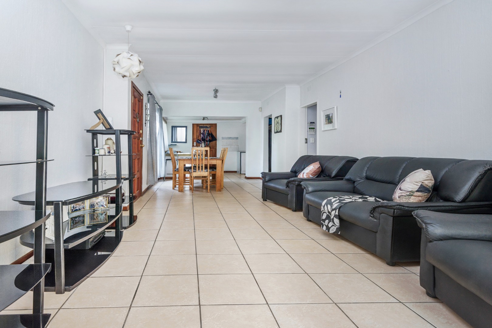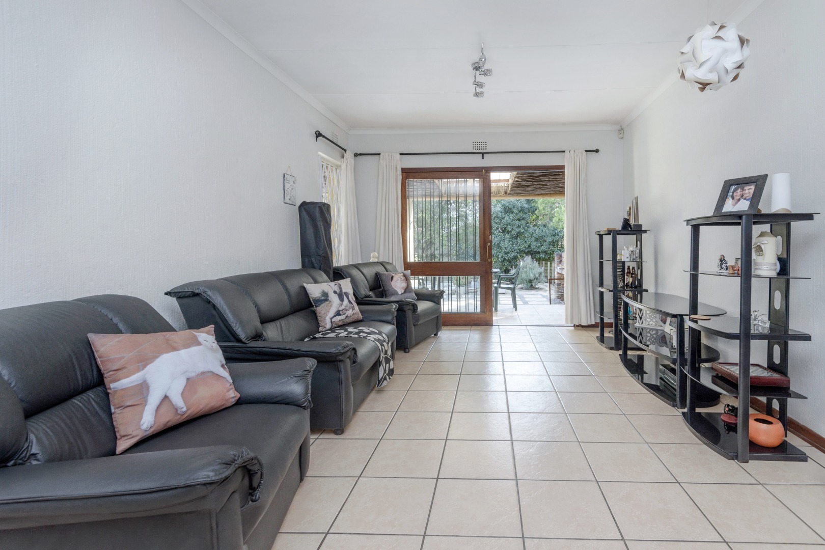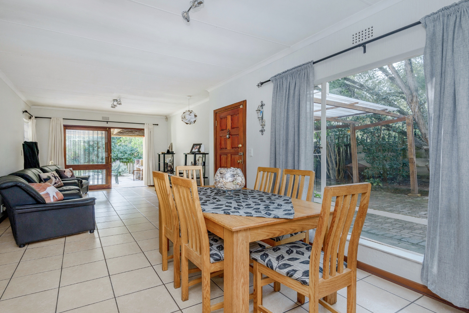 The interior comprises three well-proportioned bedrooms and two bathrooms, including one en-suite, ensuring privacy and convenience. The living spaces are thoughtfully designed with a dedicated lounge, a dining room perfect for entertaining, and a functional kitchen. Sliding doors lead to a welcoming patio, extending the living area outdoors and providing an ideal spot for relaxation.