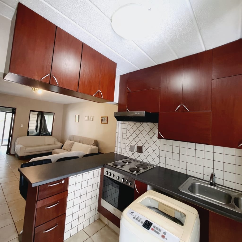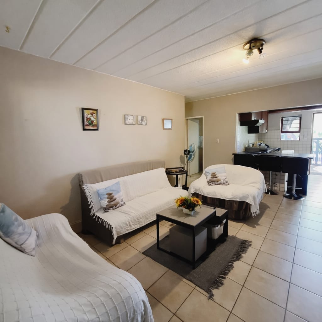 The apartment itself offers easy, ground-floor living with direct access to the gardens — ideal for families, pet lovers or anyone who appreciates indoor-outdoor flow. The open-plan living area is light and airy, leading seamlessly to the communal green spaces, while both bedrooms are well-sized with ample cupboard space. The bathroom is neatly finished and functional.