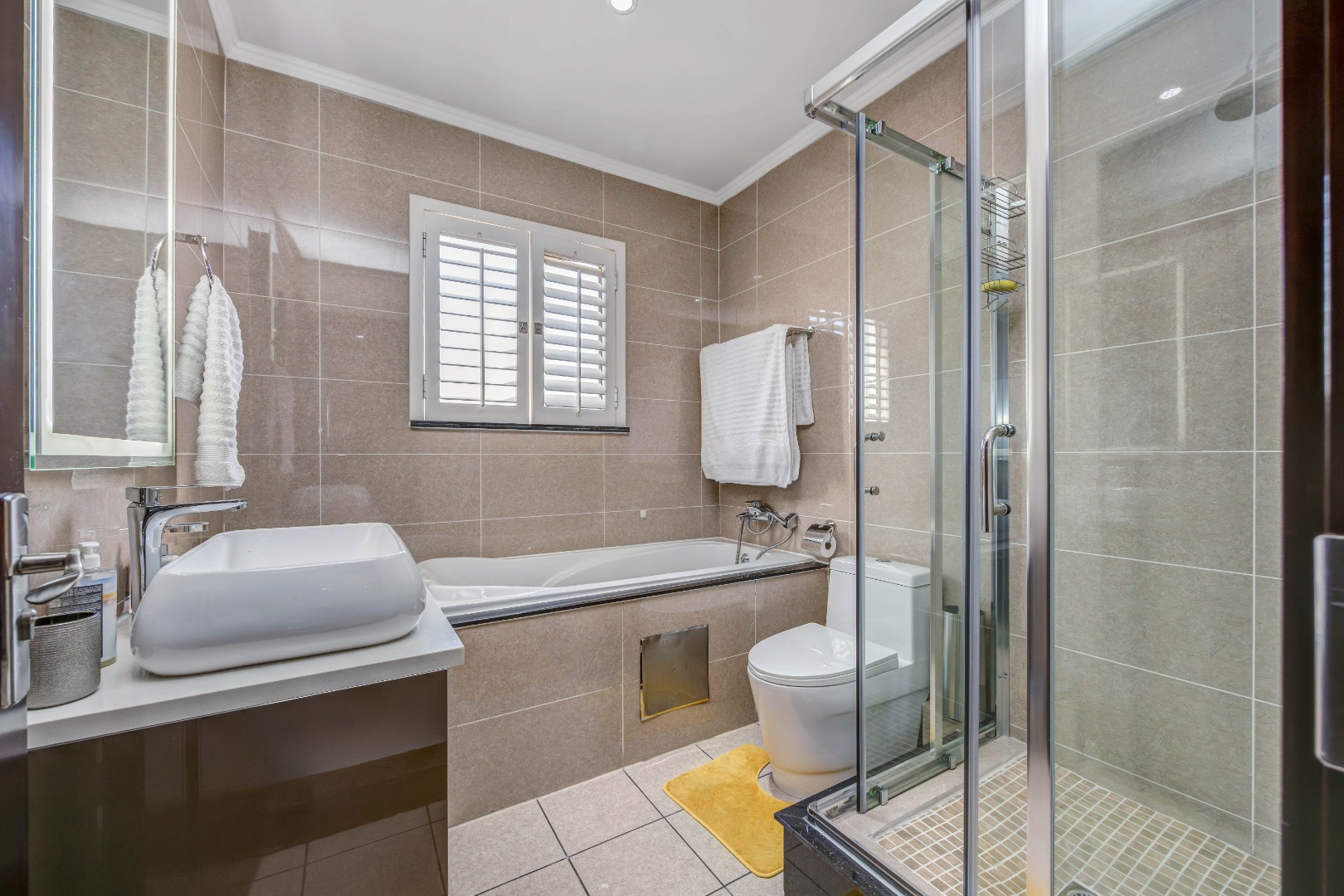 The main bedroom features a stylish en-suite bathroom and a beautiful walk-in closet. Two additional spacious bedrooms share a well-appointed bathroom.