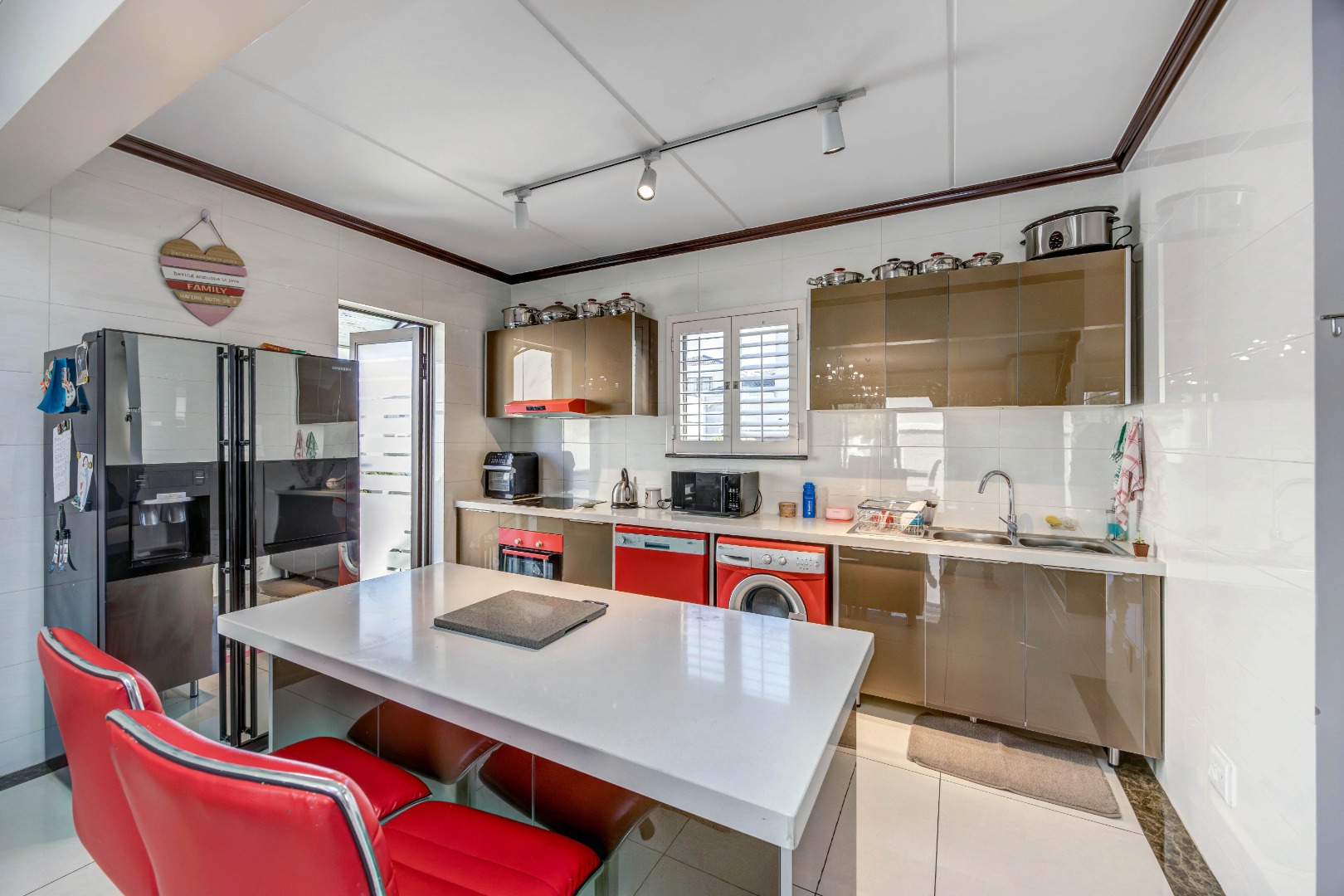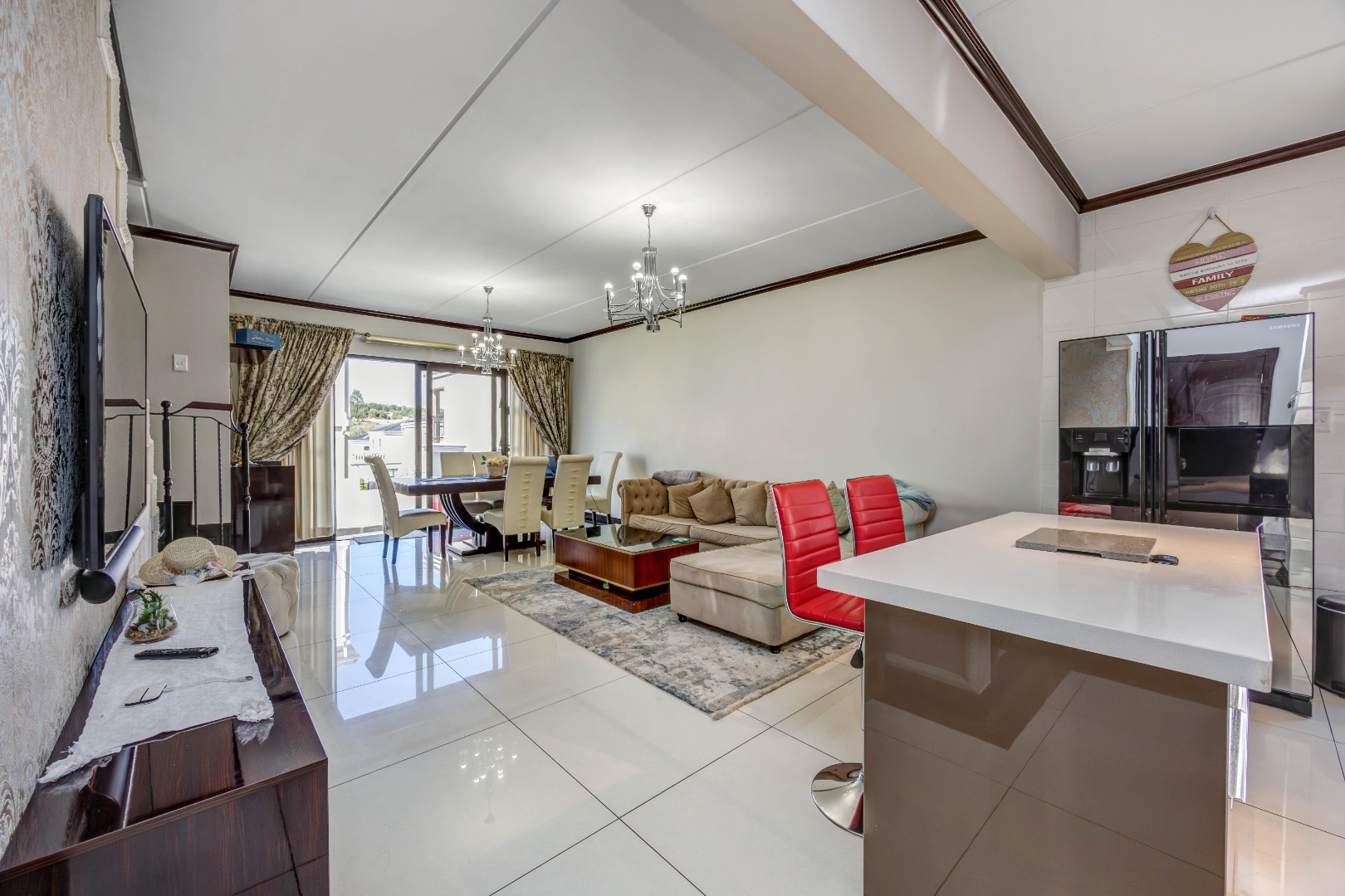 The spacious open-plan living area is bright and inviting, with ample room for a large lounge suite as well as a generously sized dining room table — perfect for both relaxed family living and entertaining.