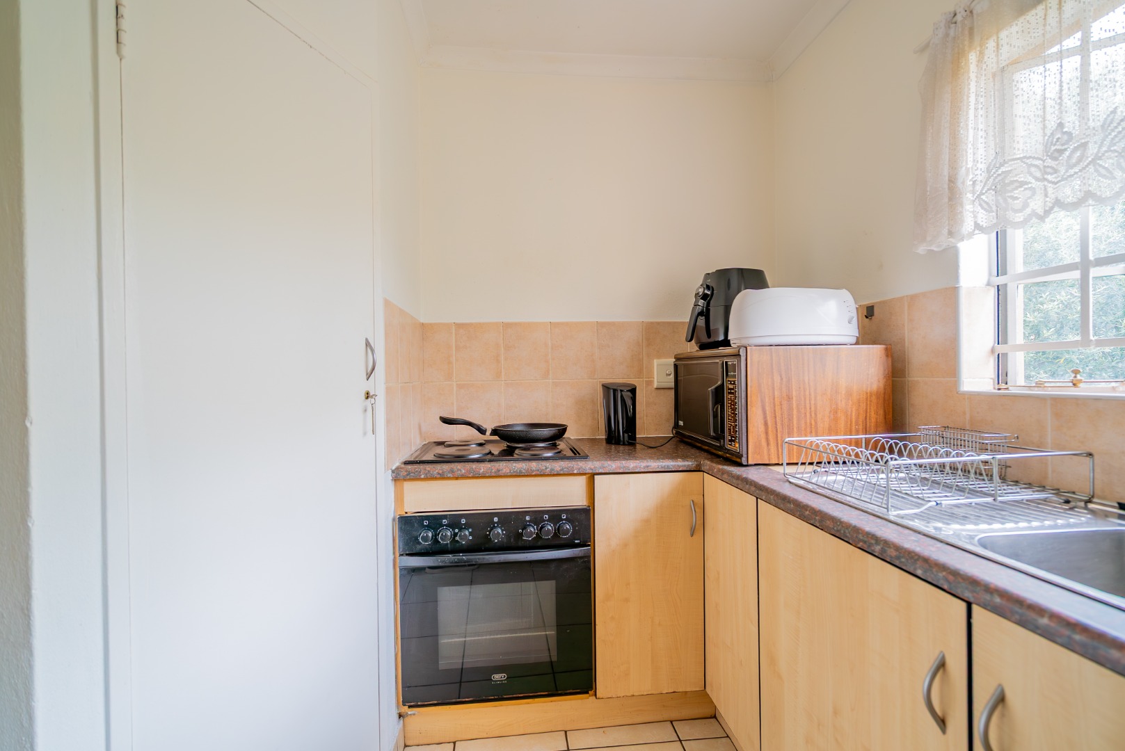 - Open-plan living area (fits lounge suite + 4-seater dining table)