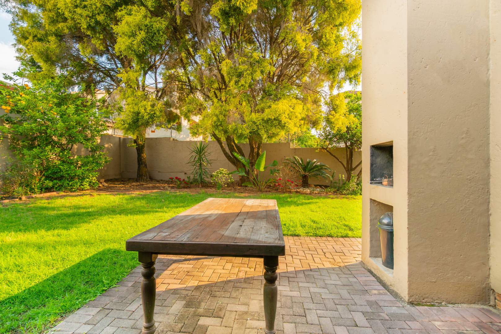 The 356 sqm property boasts a lush, pet-friendly garden with mature trees and a vibrant green lawn – ideal for weekend braais, kids' playtime, or simply soaking up the sun. A paved patio with a built-in braai sets the scene for entertaining, while a handy outdoor storage shed keeps your garden tools neatly tucked away.