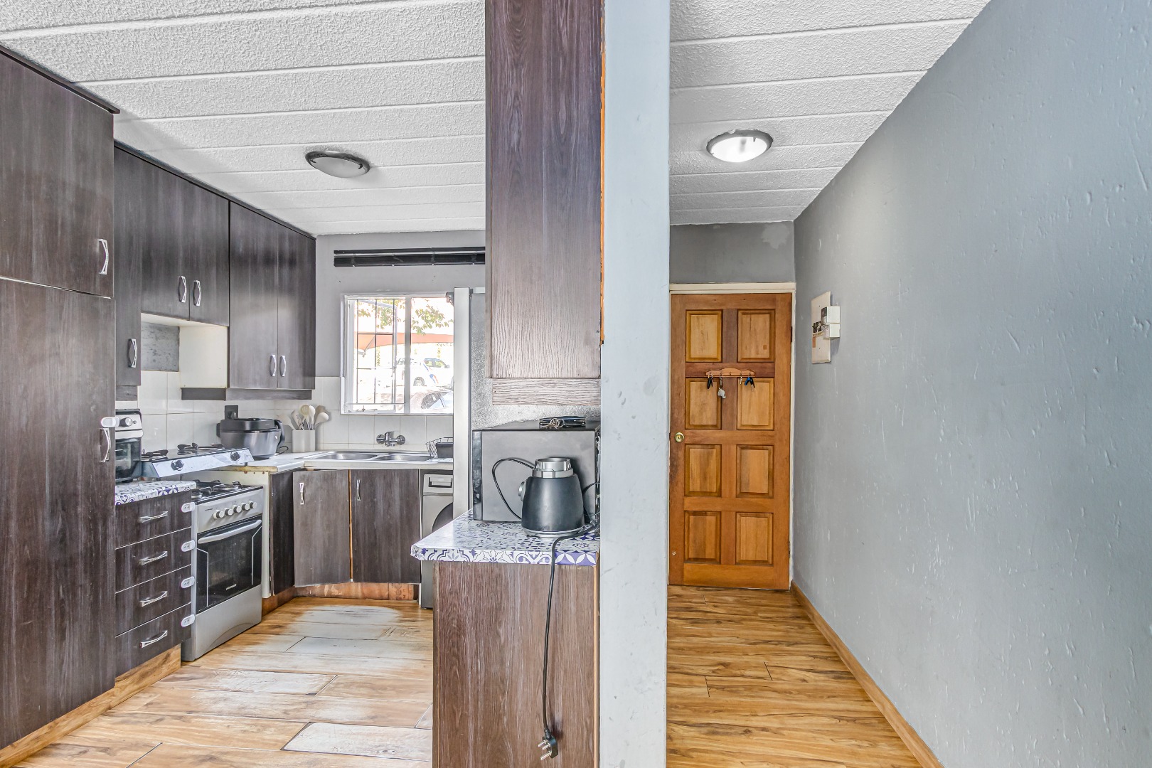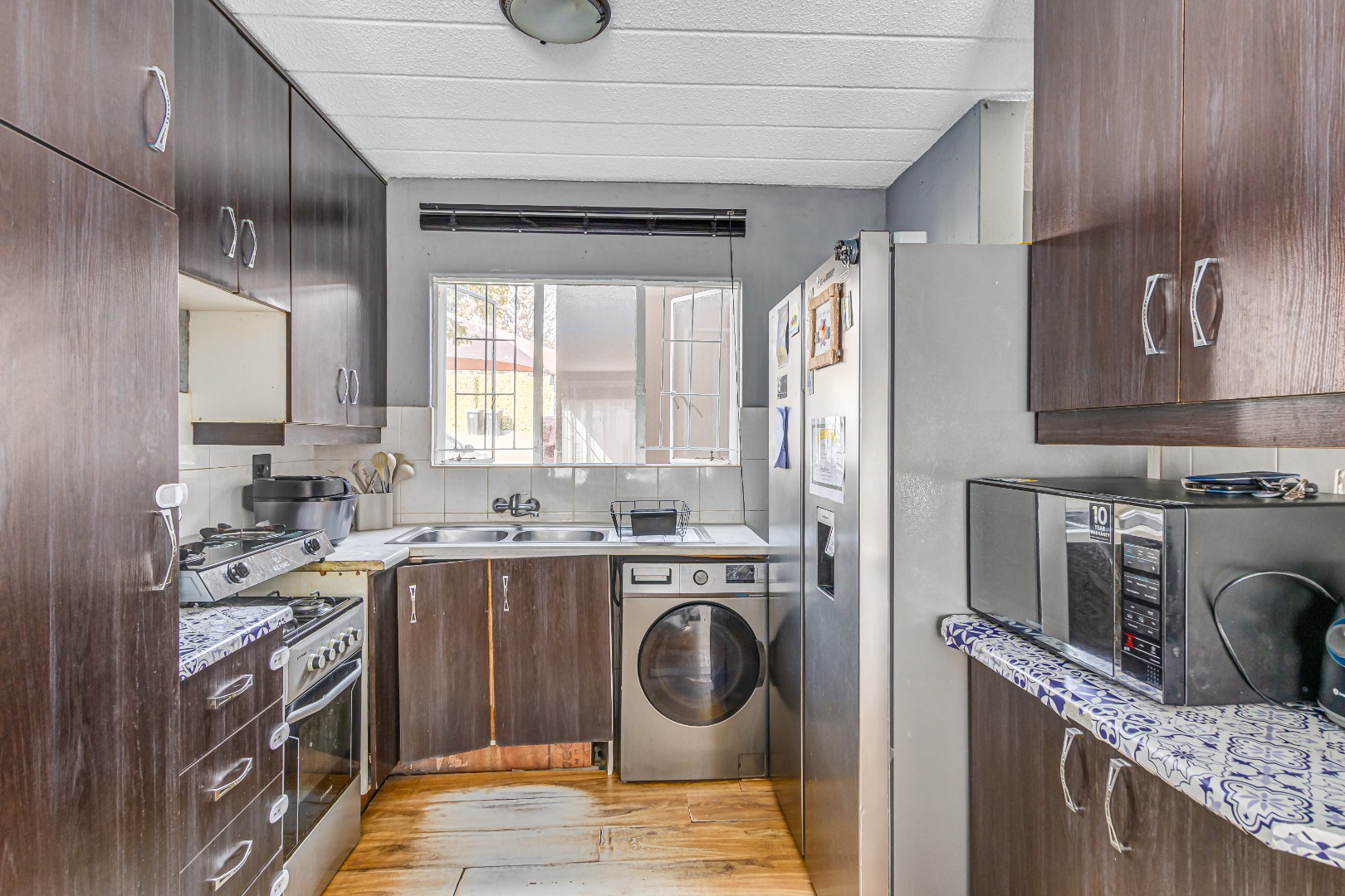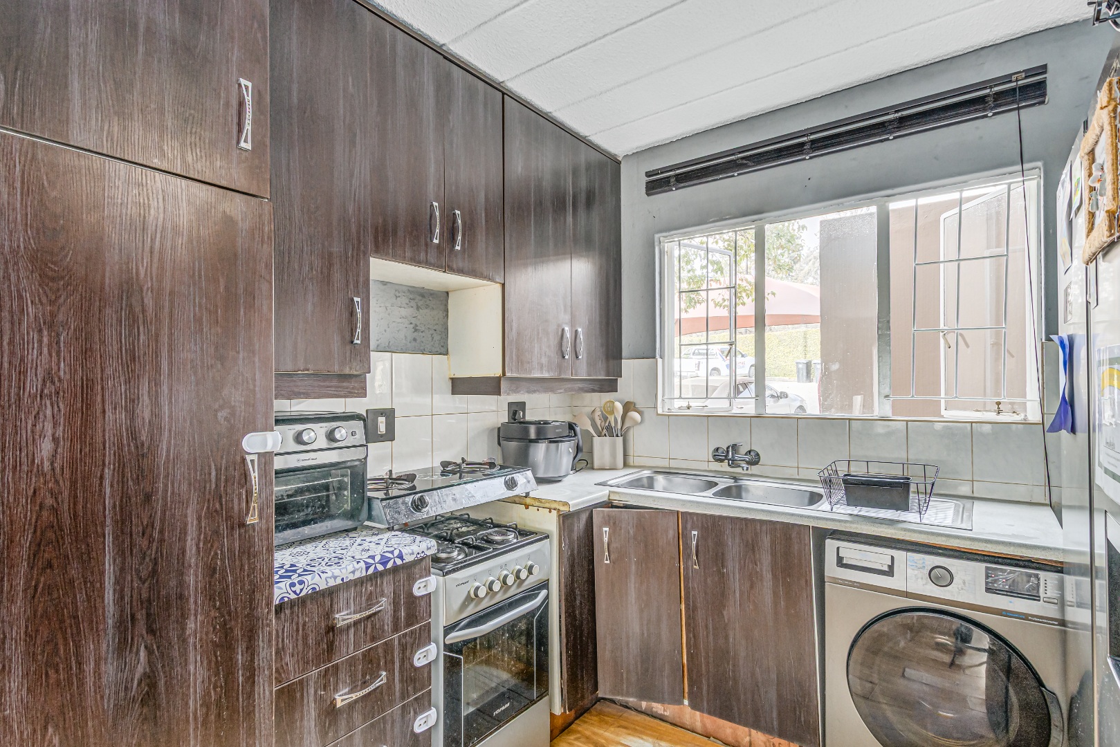 Neat kitchen with ample storage and space for appliances