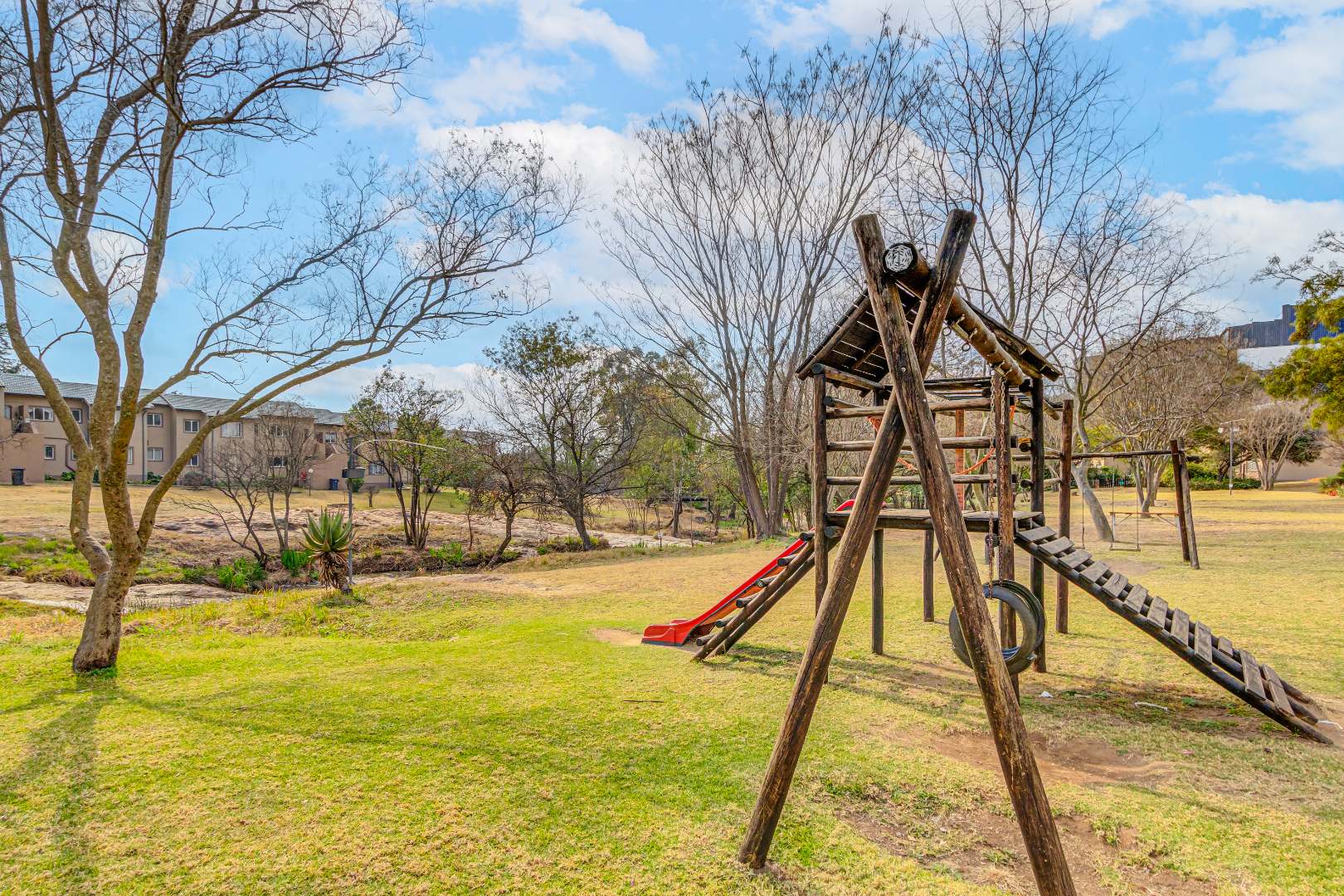 Well-maintained walkways and green areas throughout the complex