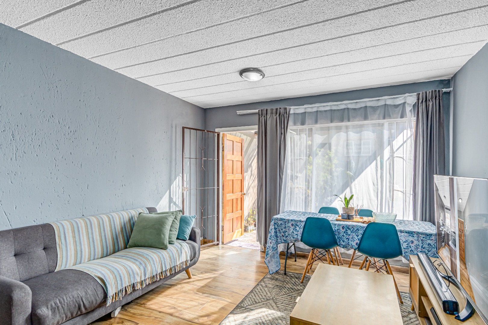 Open-plan lounge and dining area filled with natural light