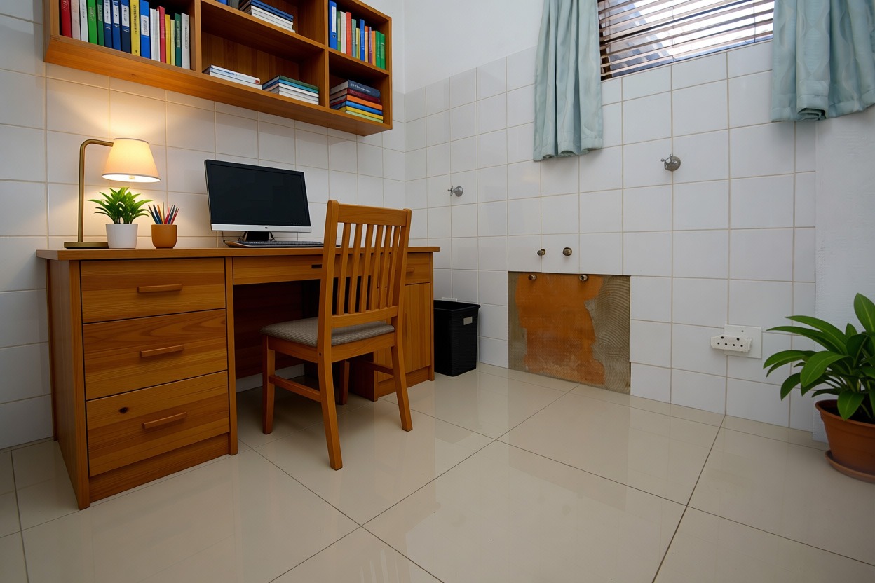 Step outside to a lush, well-maintained garden, offering a tranquil outdoor retreat. Mature trees provide shade, and a variety of potted plants create a vibrant atmosphere. A charming paved area is perfect for outdoor living and entertaining, complemented by a rustic Wendy house for additional storage. The complex also offers a communal braai area for residents to enjoy.