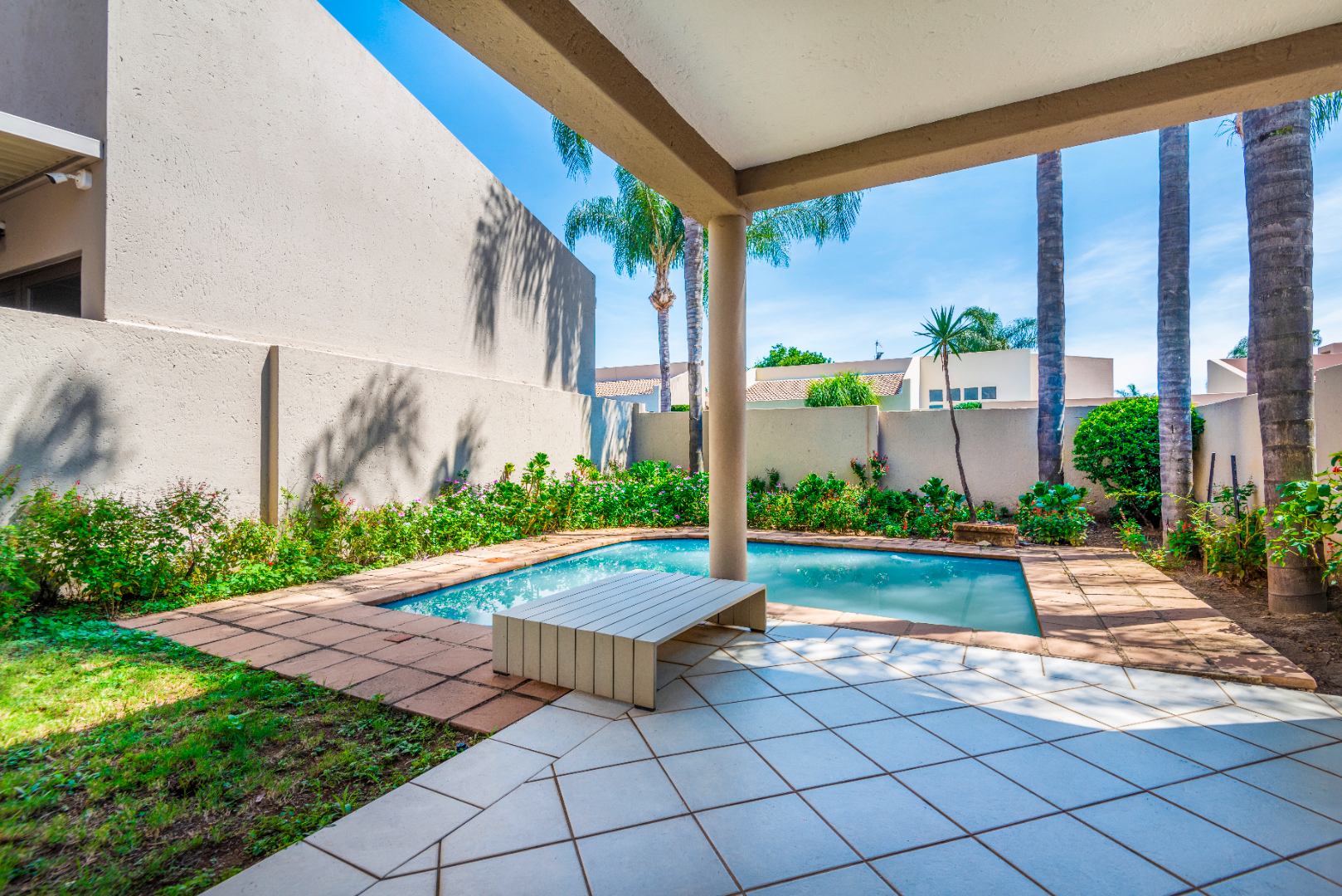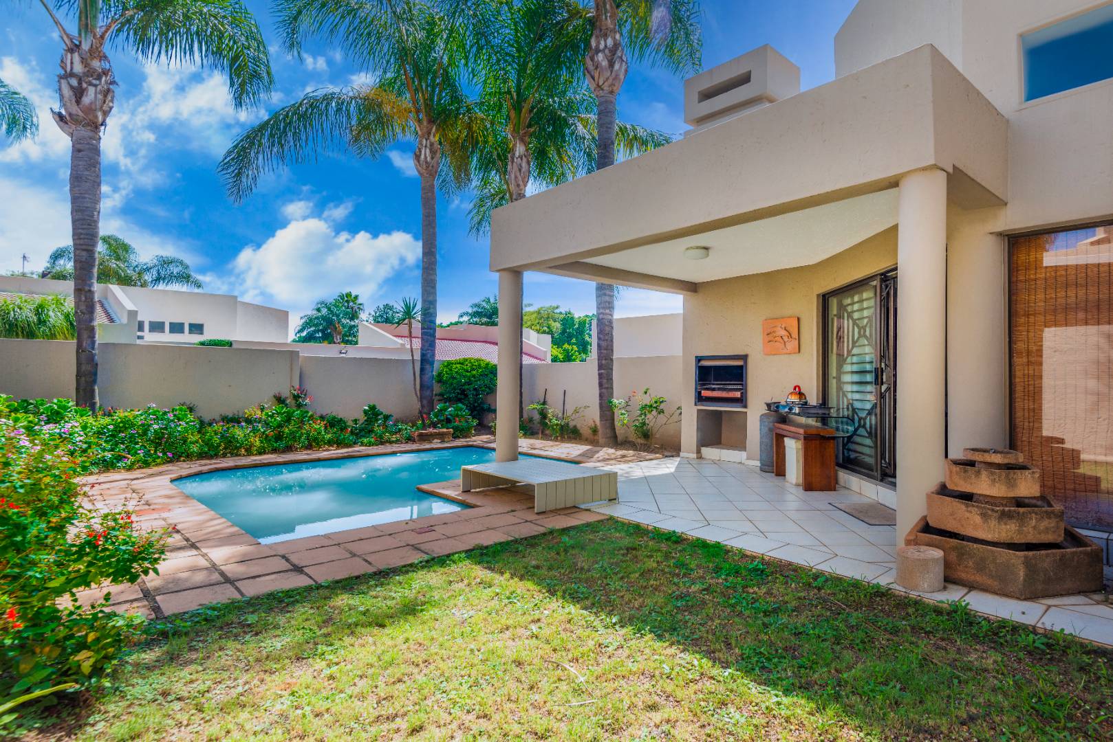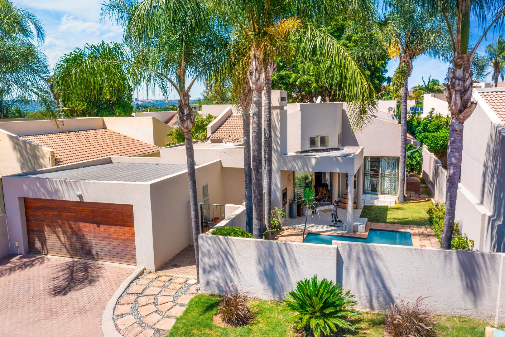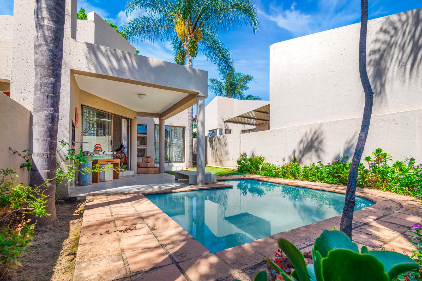 The property also includes a double automated garage and a small, fully walled garden with a pool, perfect for relaxation and outdoor enjoyment. A cozy patio area adds to the charm, ideal for alfresco dining or unwinding in the fresh air.