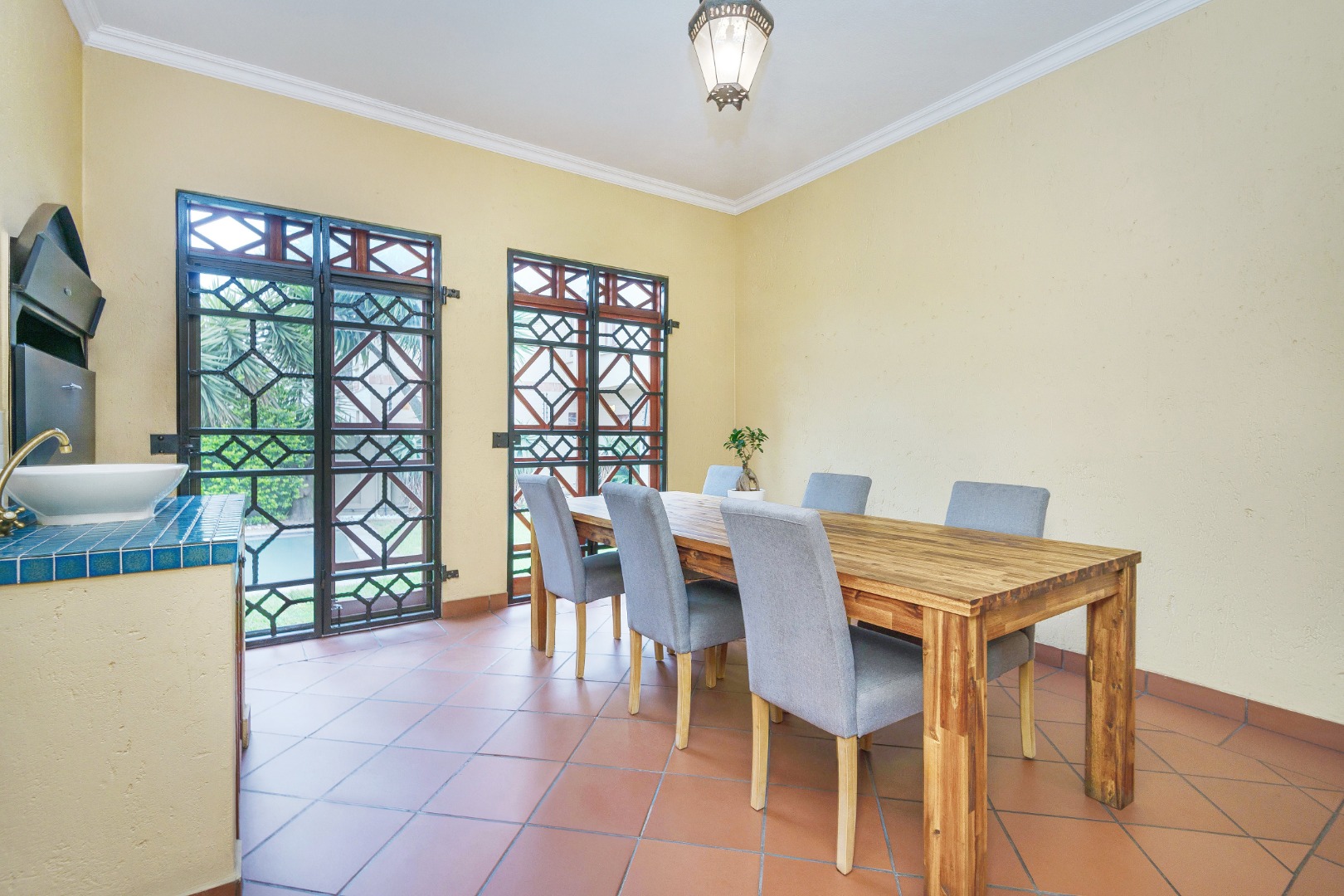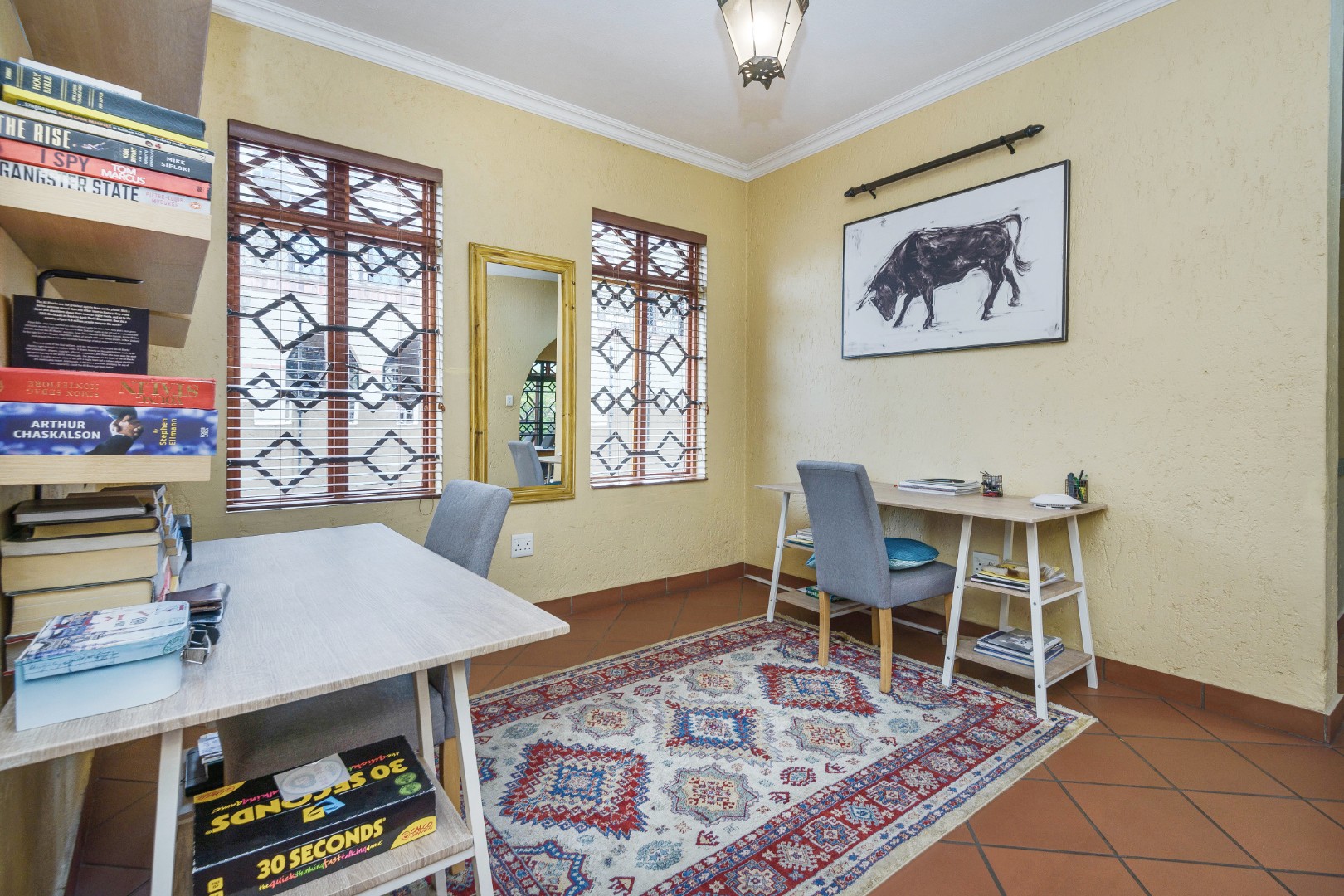 Discover this charming multi-story family home located in a desirable complex in North Riding, Randburg. Boasting a generous 267 sqm floor size on a 452 sqm erf, this residence offers a unique blend of character and comfort. The interior features a warm aesthetic with terracotta tile flooring, inviting arched doorways, and wooden accents throughout. Enjoy two spacious lounges, a dedicated dining room, and a well-appointed kitchen complete with blue tiled countertops, wooden cabinetry, a built-in oven, and a convenient pantry. An indoor built-in braai and a cozy fireplace enhance entertaining possibilities.