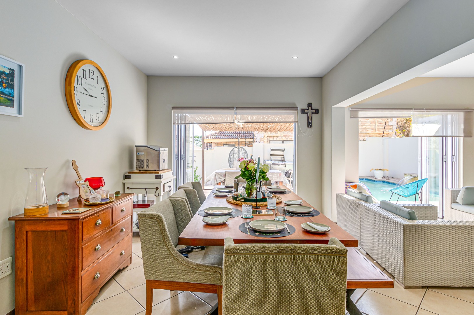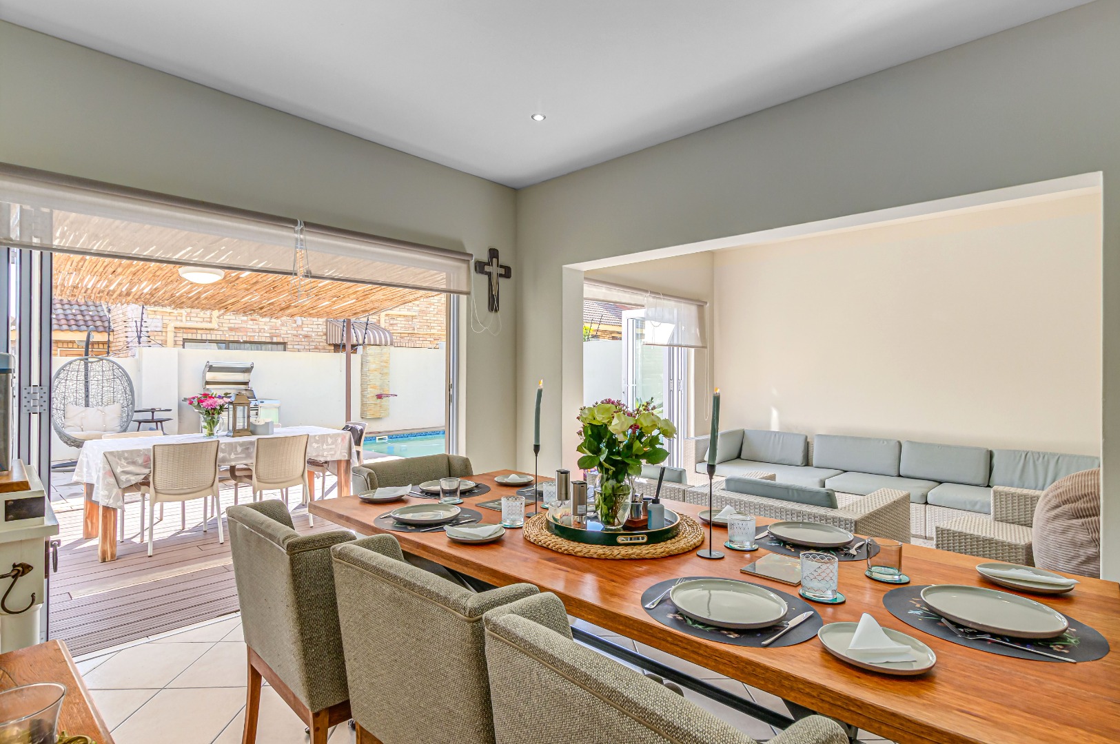 The lounge, complete with a cosy fireplace, flows into the dining room and pool lounge. Stacking doors open onto a covered patio overlooking a sparkling pool with a feature fountain — ideal for seamless indoor-outdoor entertaining.