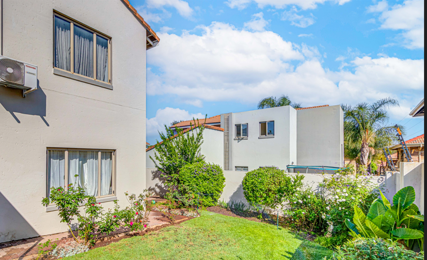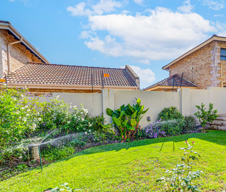 Outdoors, the neatly maintained garden is supported by an irrigation system, creating a private and inviting retreat.