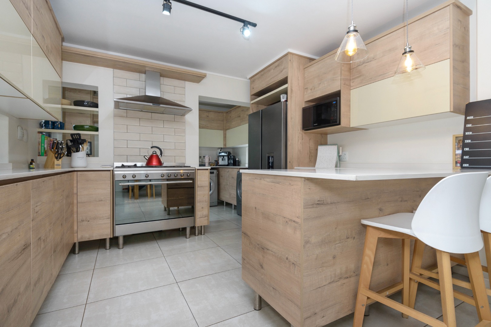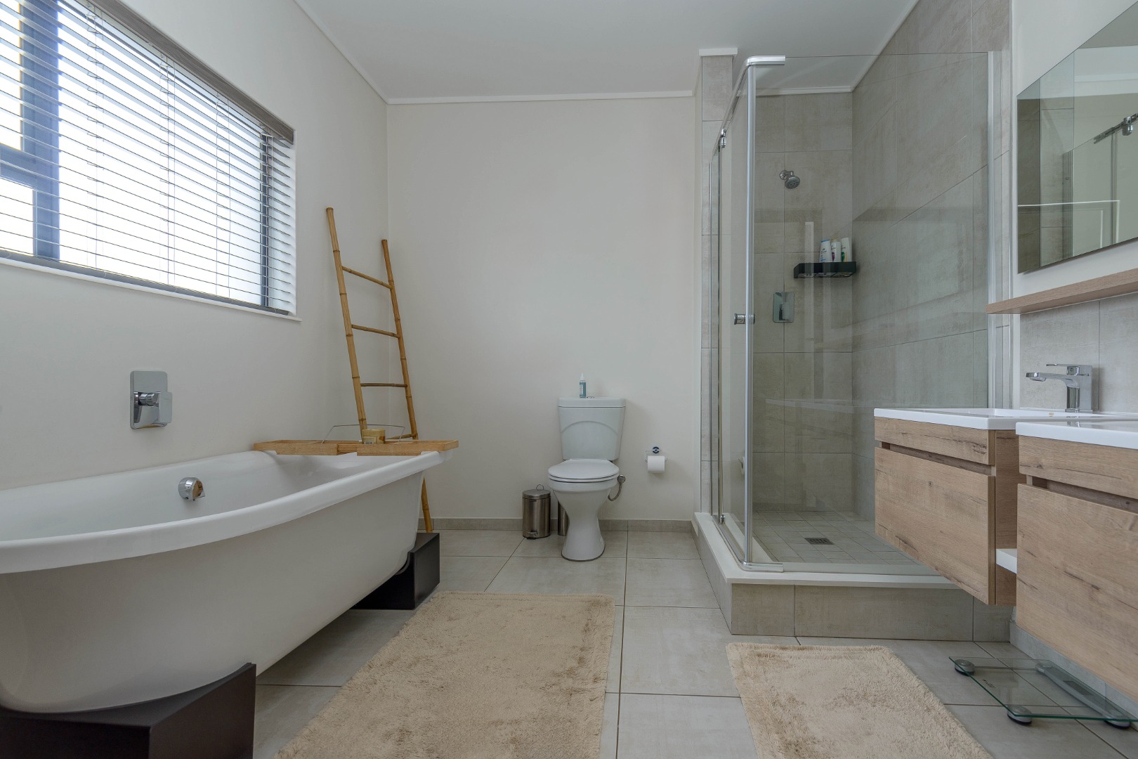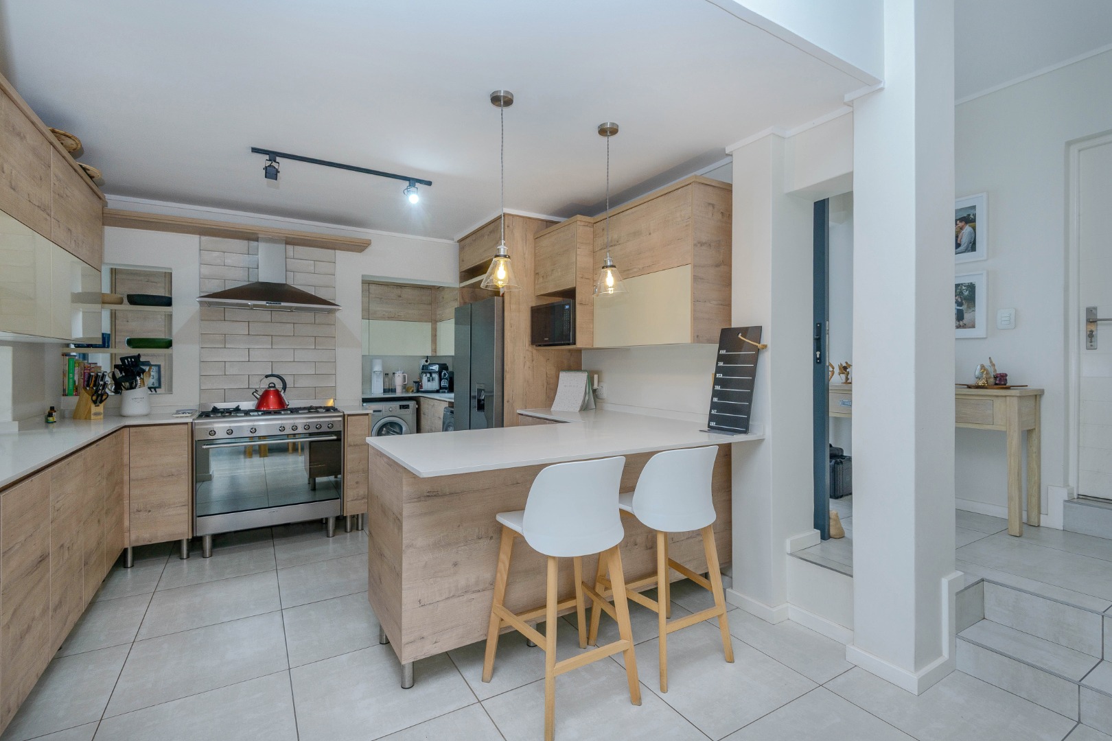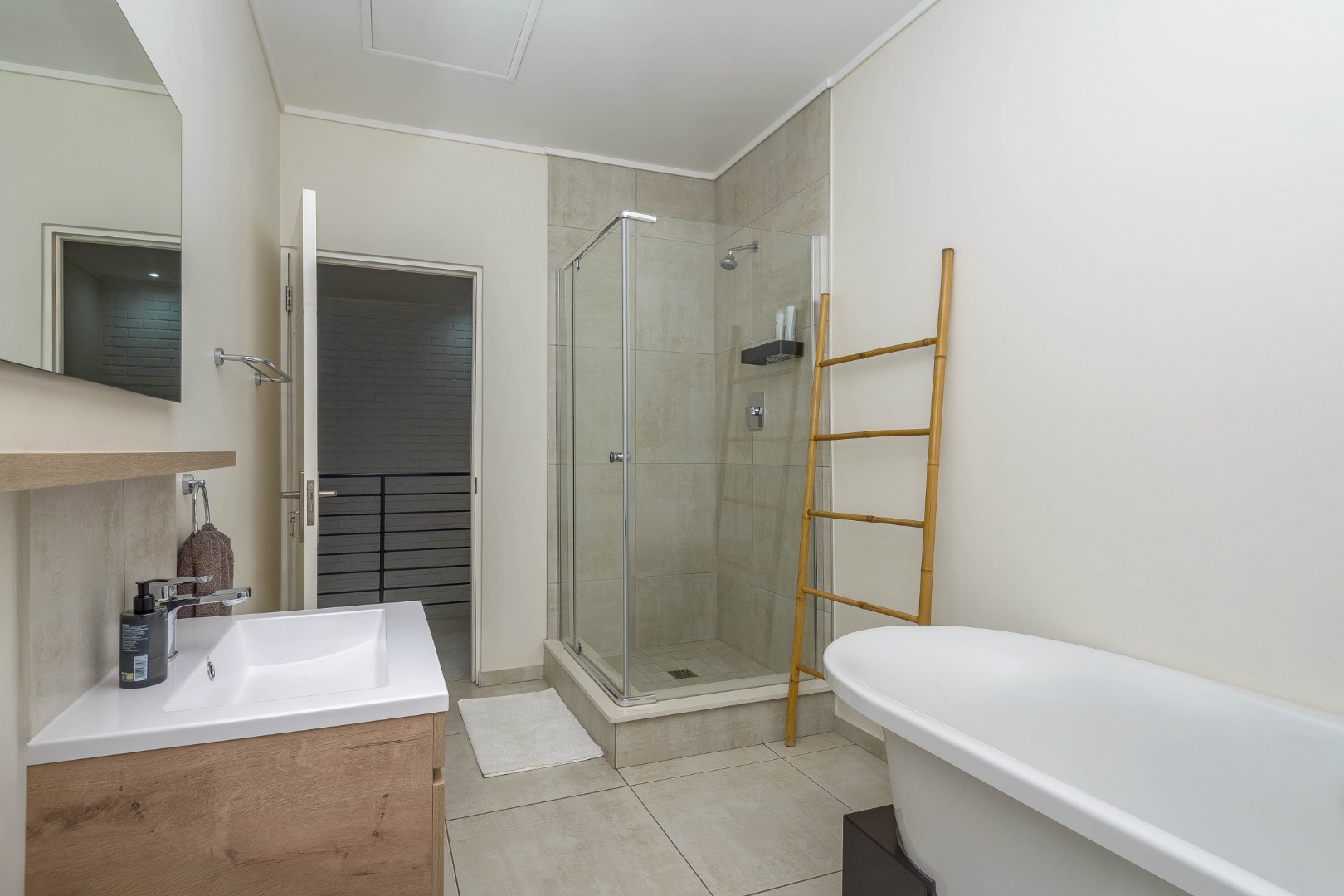 Upstairs are three spacious bedrooms and two full bathrooms, including a serene main en-suite with a freestanding bath and walk-in shower.