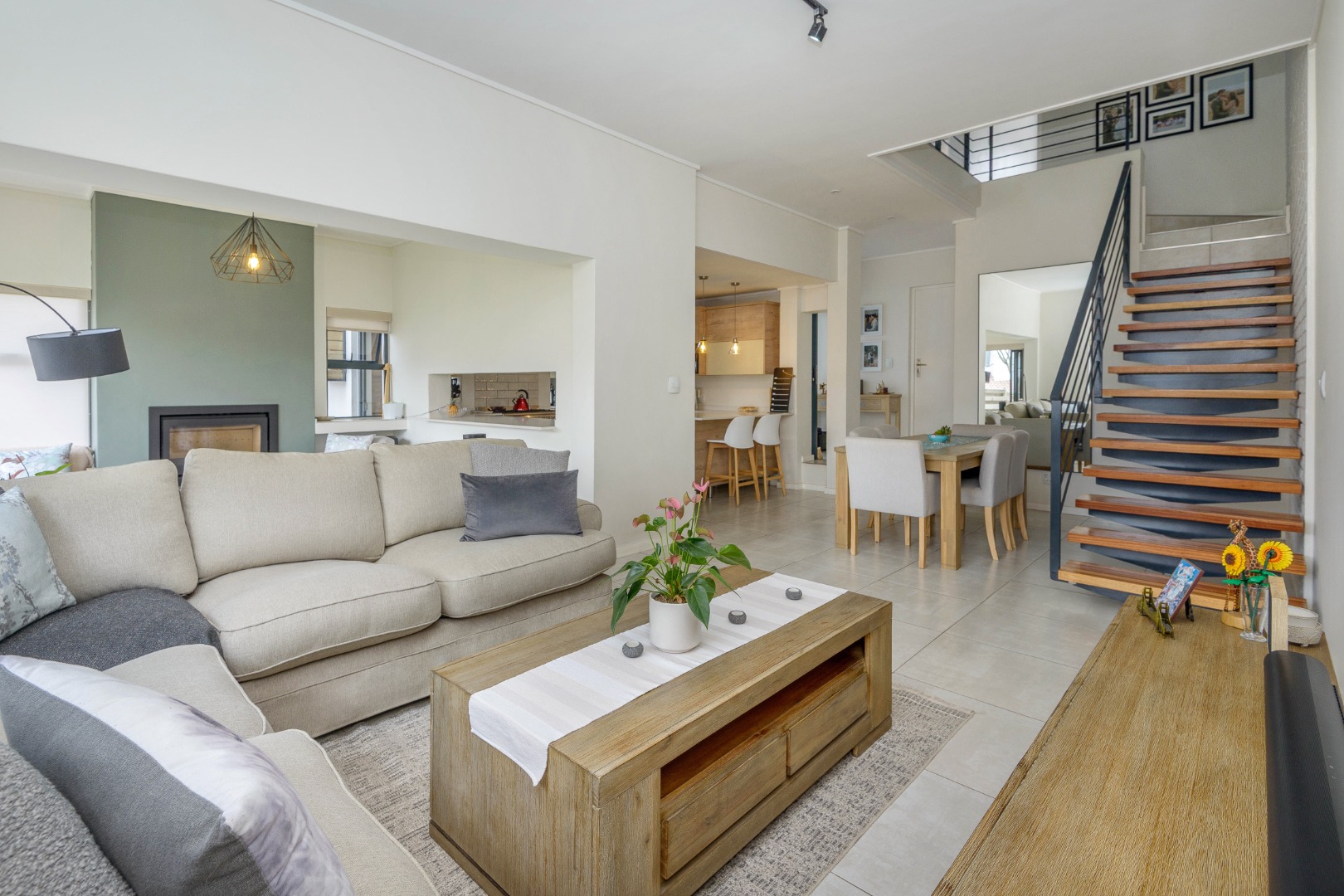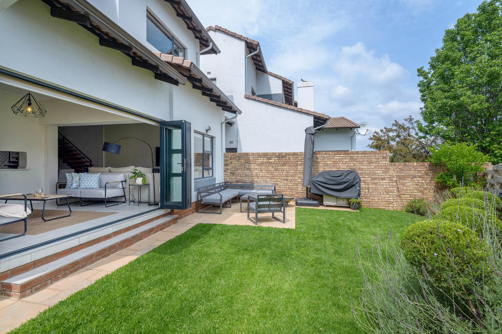 Added features include a wood-burning fireplace, guest cloakroom, double automated garage with direct access, solar system, gas geyser, and 24-hour security.