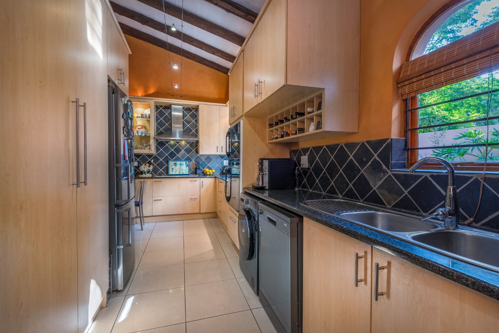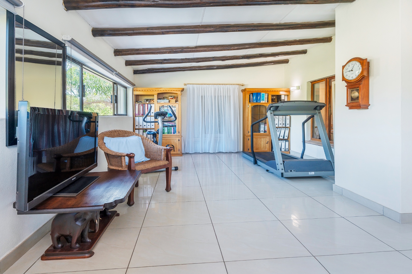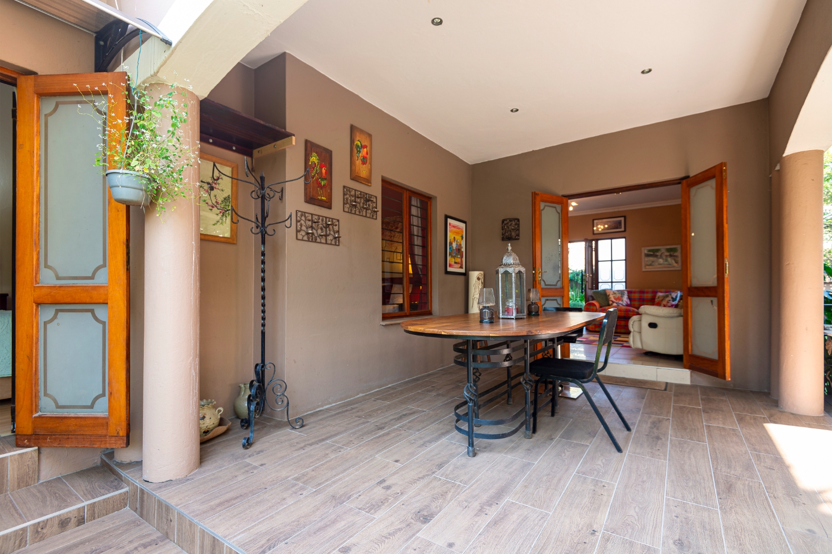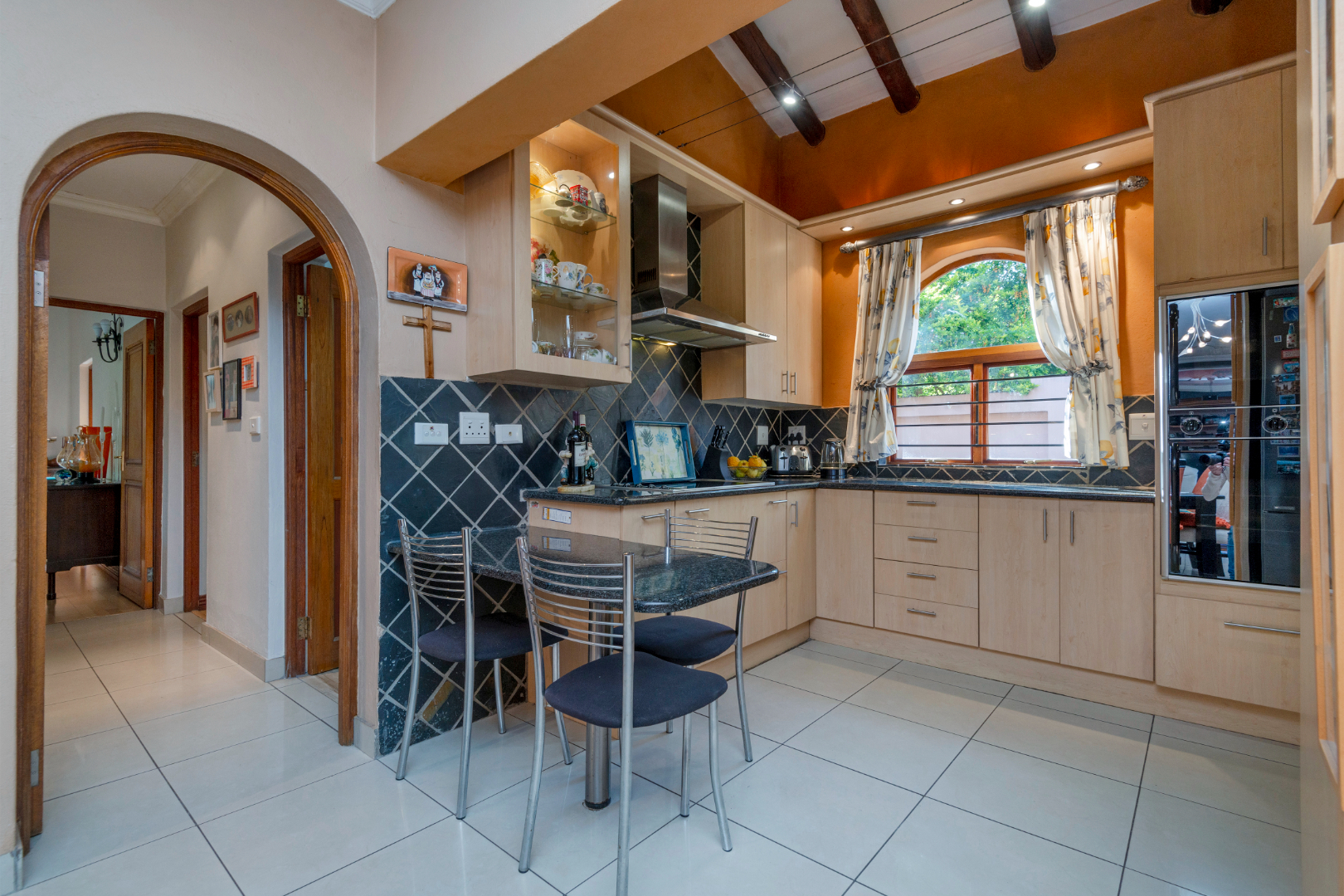 Step outside to a generously sized covered patio, where you can unwind and enjoy the peaceful surroundings. Beyond lies a magnificent, landscaped garden, meticulously maintained and bursting with natural beauty. It features a sparkling blue rock pool and a built-in braai with an outdoor entertainment area—perfect for embracing outdoor living at its finest.