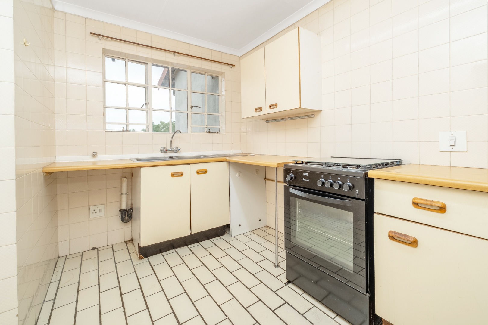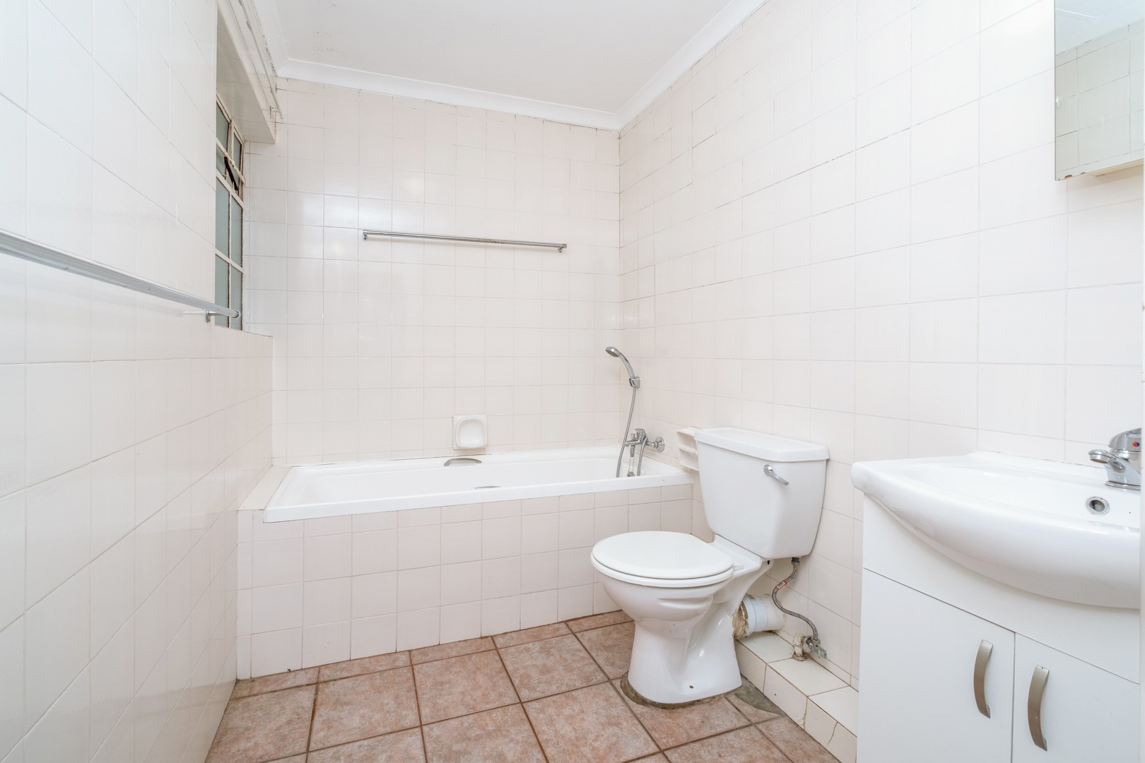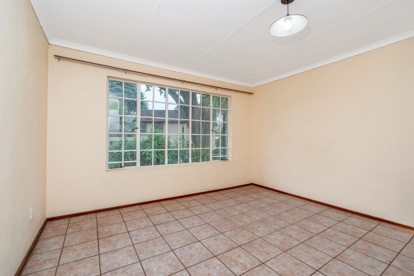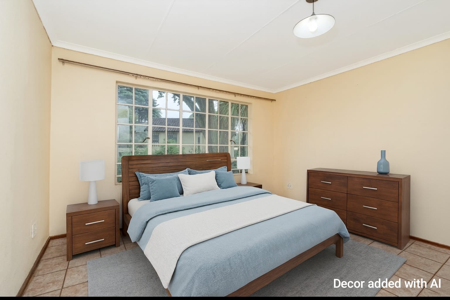 This inviting 2-bedroom, 1.5-bathroom apartment is situated in a well-maintained complex in the desirable suburban area of Northcliff, Randburg. The property presents a practical and comfortable living solution, featuring a light-colored facade, individual ground-level garages, and a paved parking area, all framed by mature trees that enhance its curb appeal. The complex offers a secure environment with an access gate, providing peace of mind for residents.