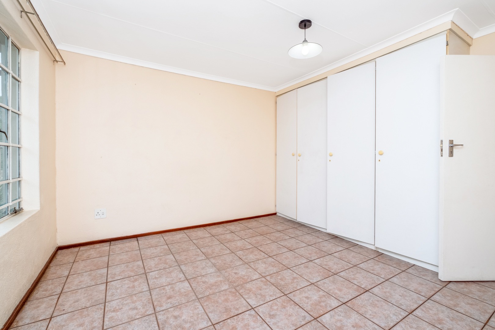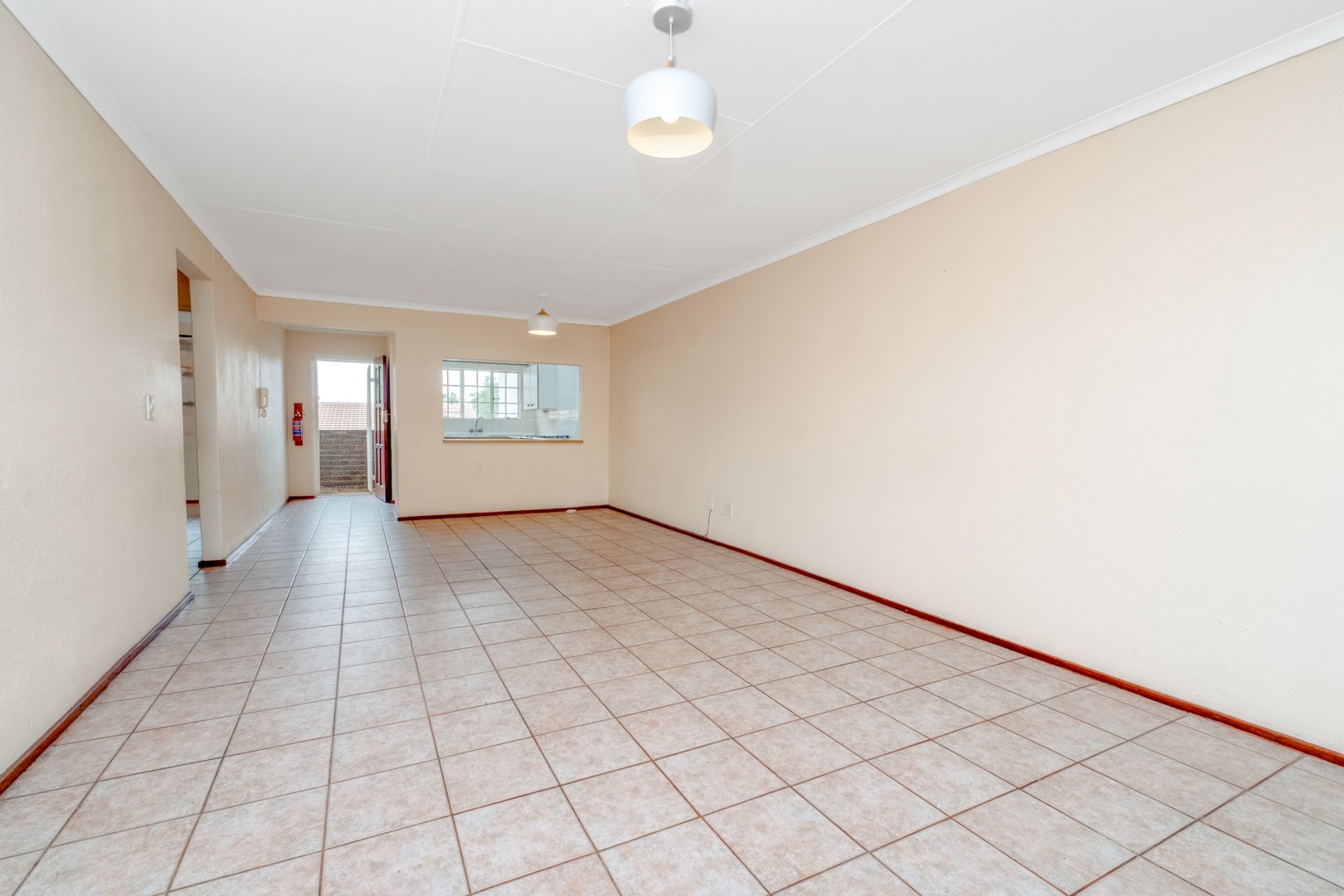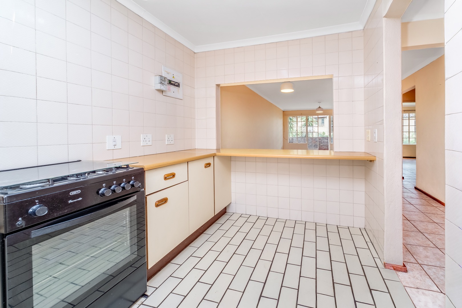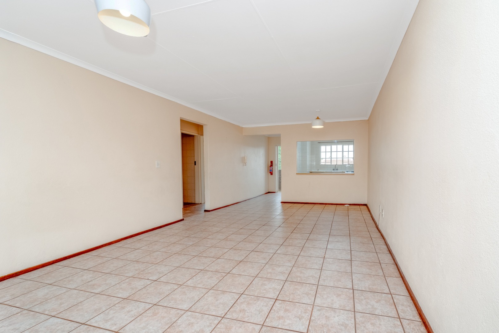 This inviting 2-bedroom, 1.5-bathroom apartment is situated in a well-maintained complex in the desirable suburban area of Northcliff, Randburg. The property presents a practical and comfortable living solution, featuring a light-colored facade, individual ground-level garages, and a paved parking area, all framed by mature trees that enhance its curb appeal. The complex offers a secure environment with an access gate, providing peace of mind for residents.