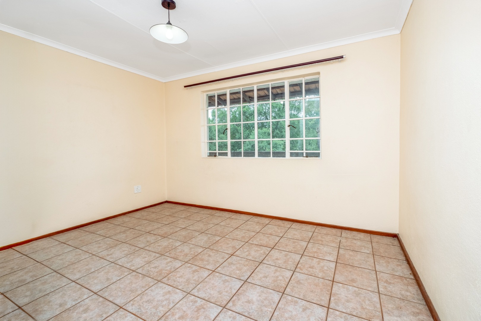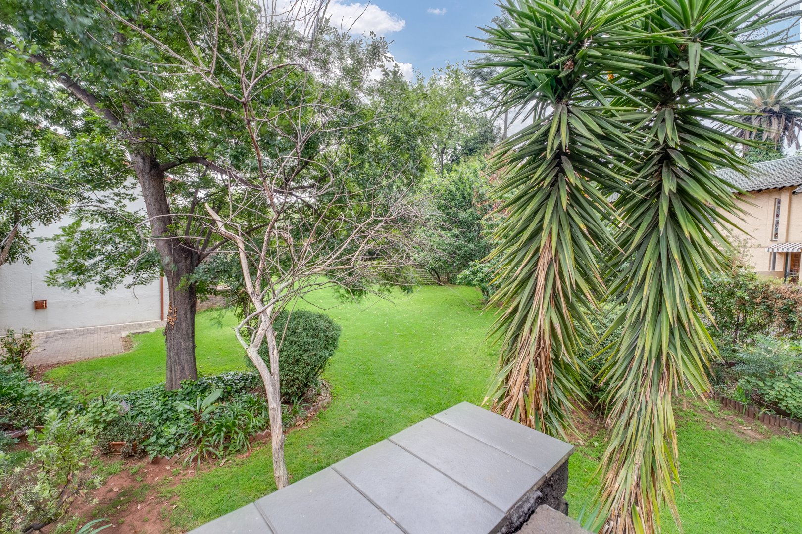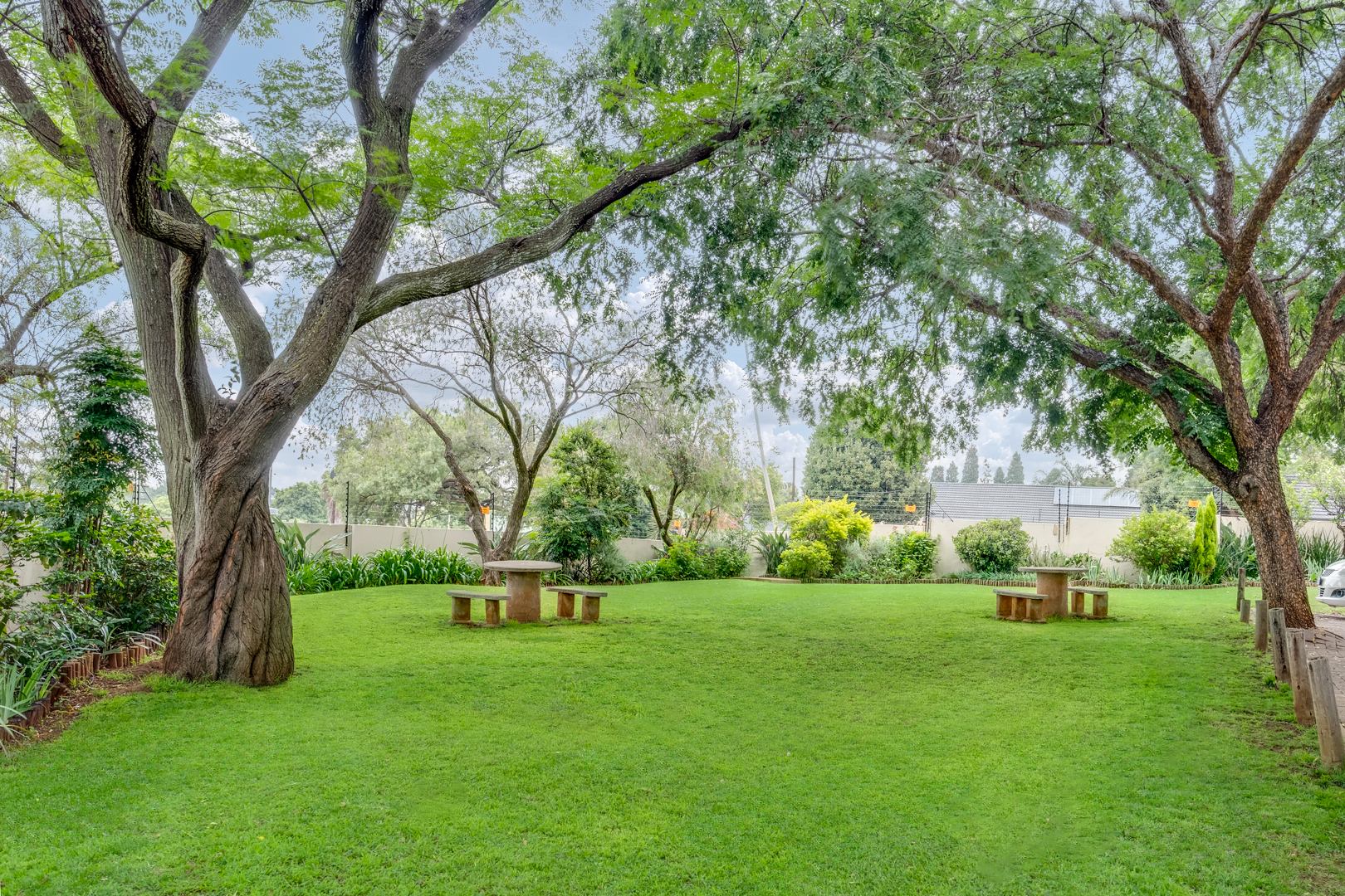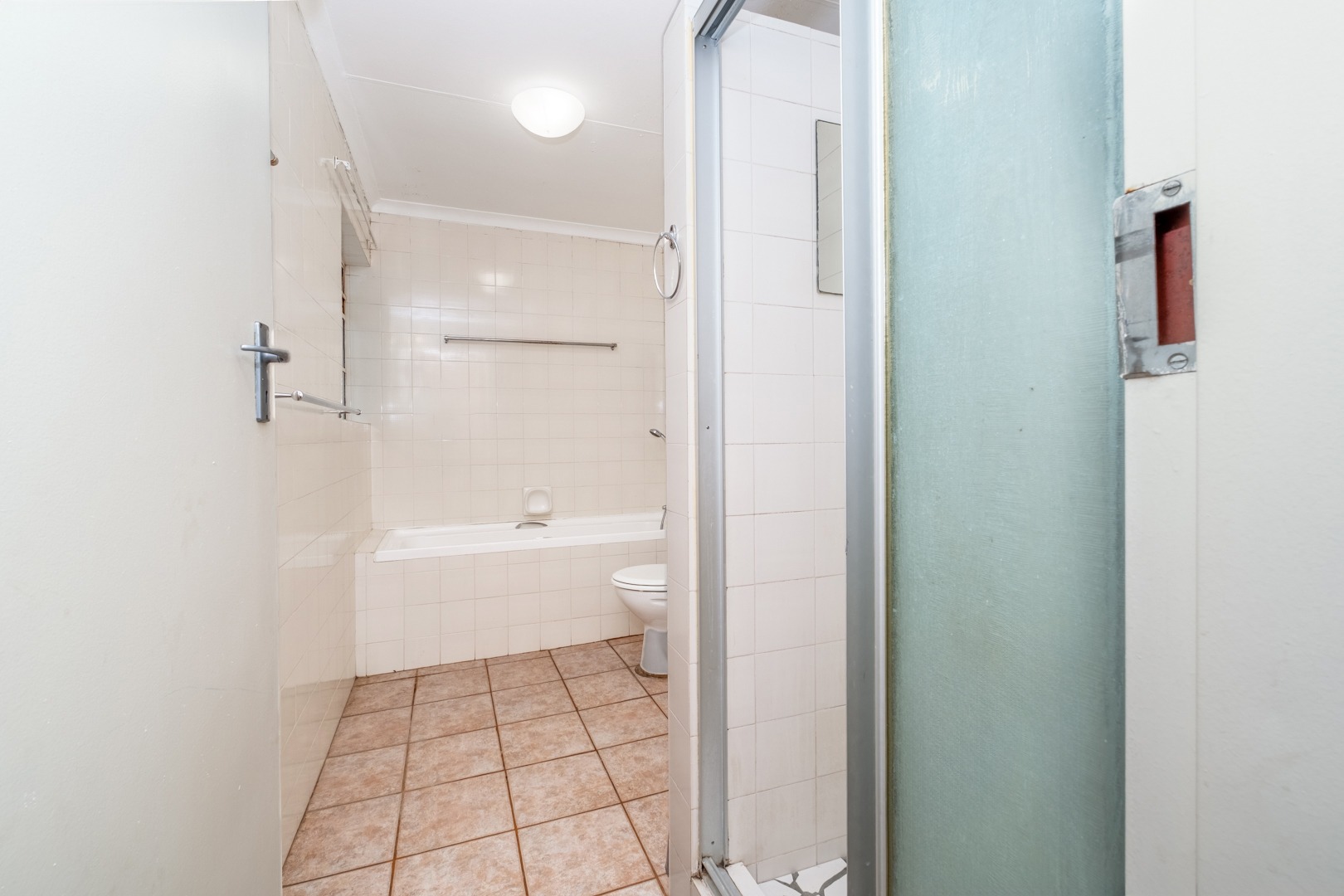 This inviting 2-bedroom, 1.5-bathroom apartment is situated in a well-maintained complex in the desirable suburban area of Northcliff, Randburg. The property presents a practical and comfortable living solution, featuring a light-colored facade, individual ground-level garages, and a paved parking area, all framed by mature trees that enhance its curb appeal. The complex offers a secure environment with an access gate, providing peace of mind for residents.
