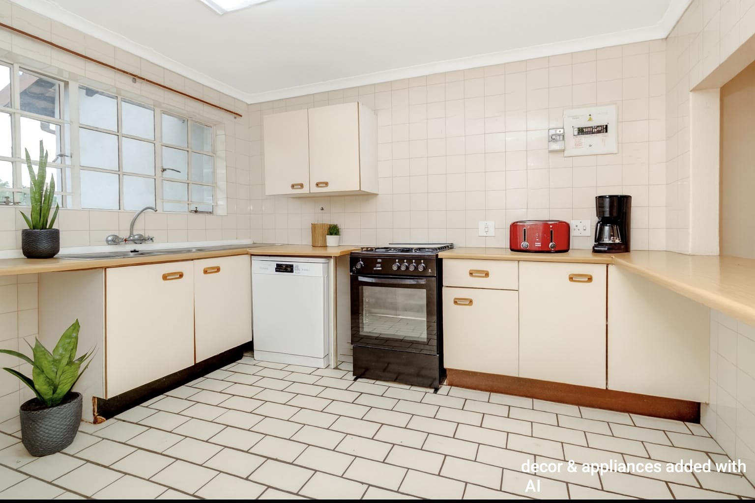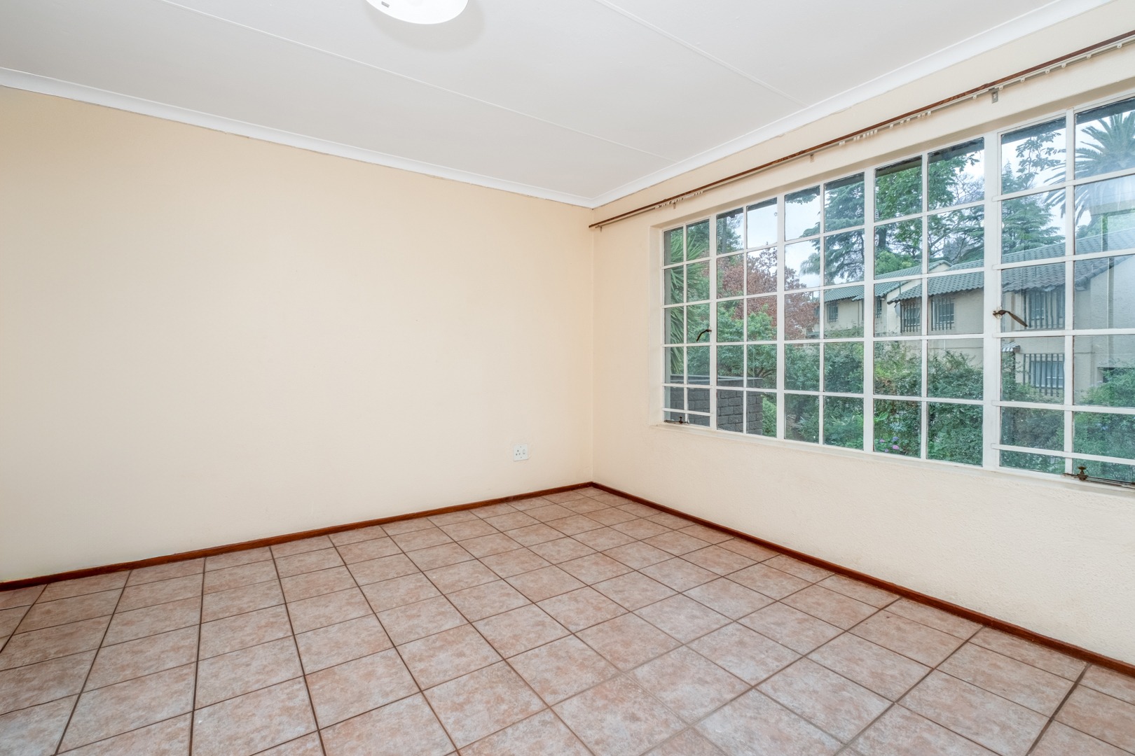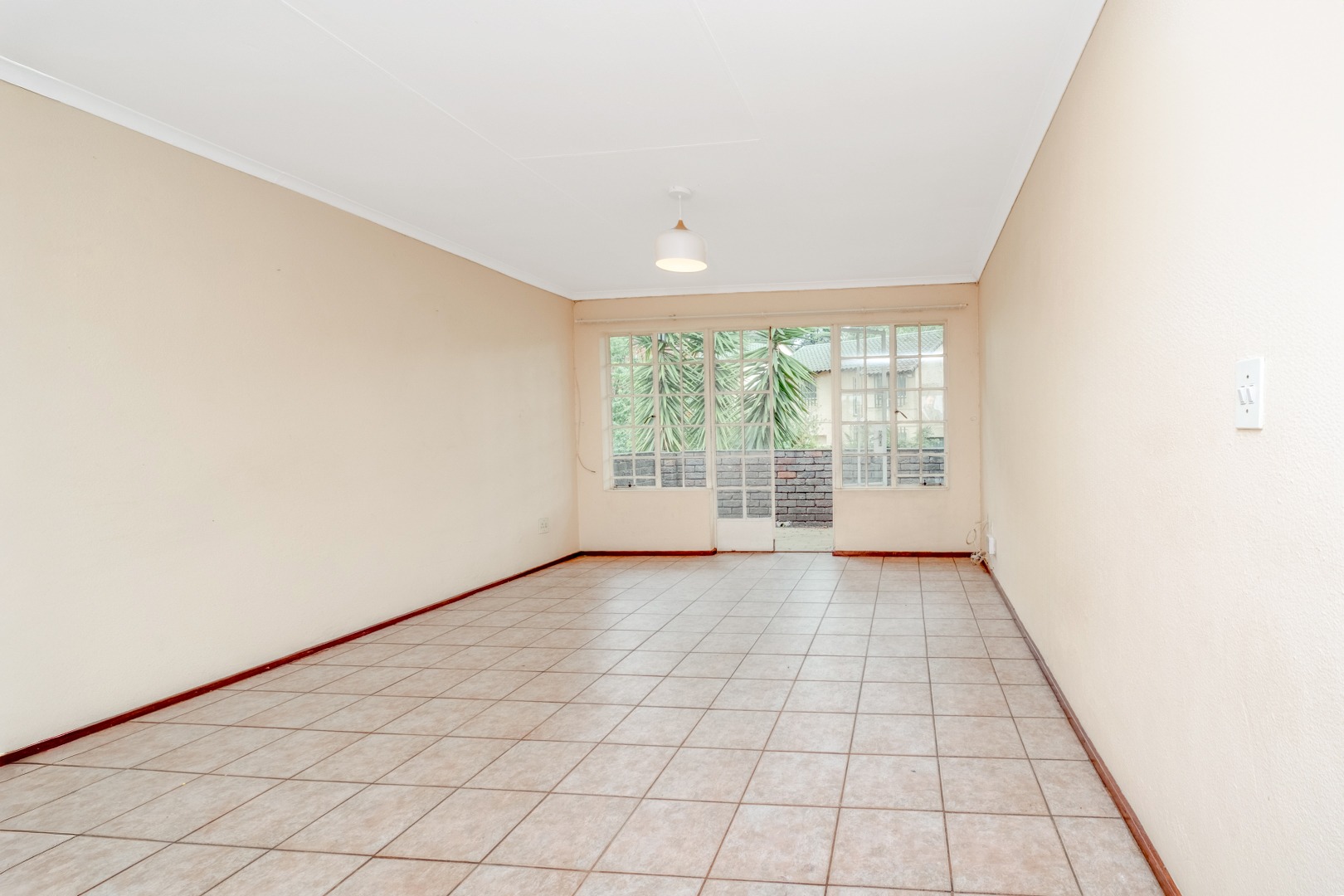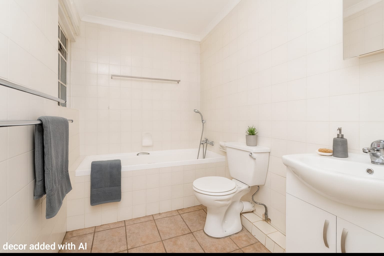 This inviting 2-bedroom, 1.5-bathroom apartment is situated in a well-maintained complex in the desirable suburban area of Northcliff, Randburg. The property presents a practical and comfortable living solution, featuring a light-colored facade, individual ground-level garages, and a paved parking area, all framed by mature trees that enhance its curb appeal. The complex offers a secure environment with an access gate, providing peace of mind for residents.