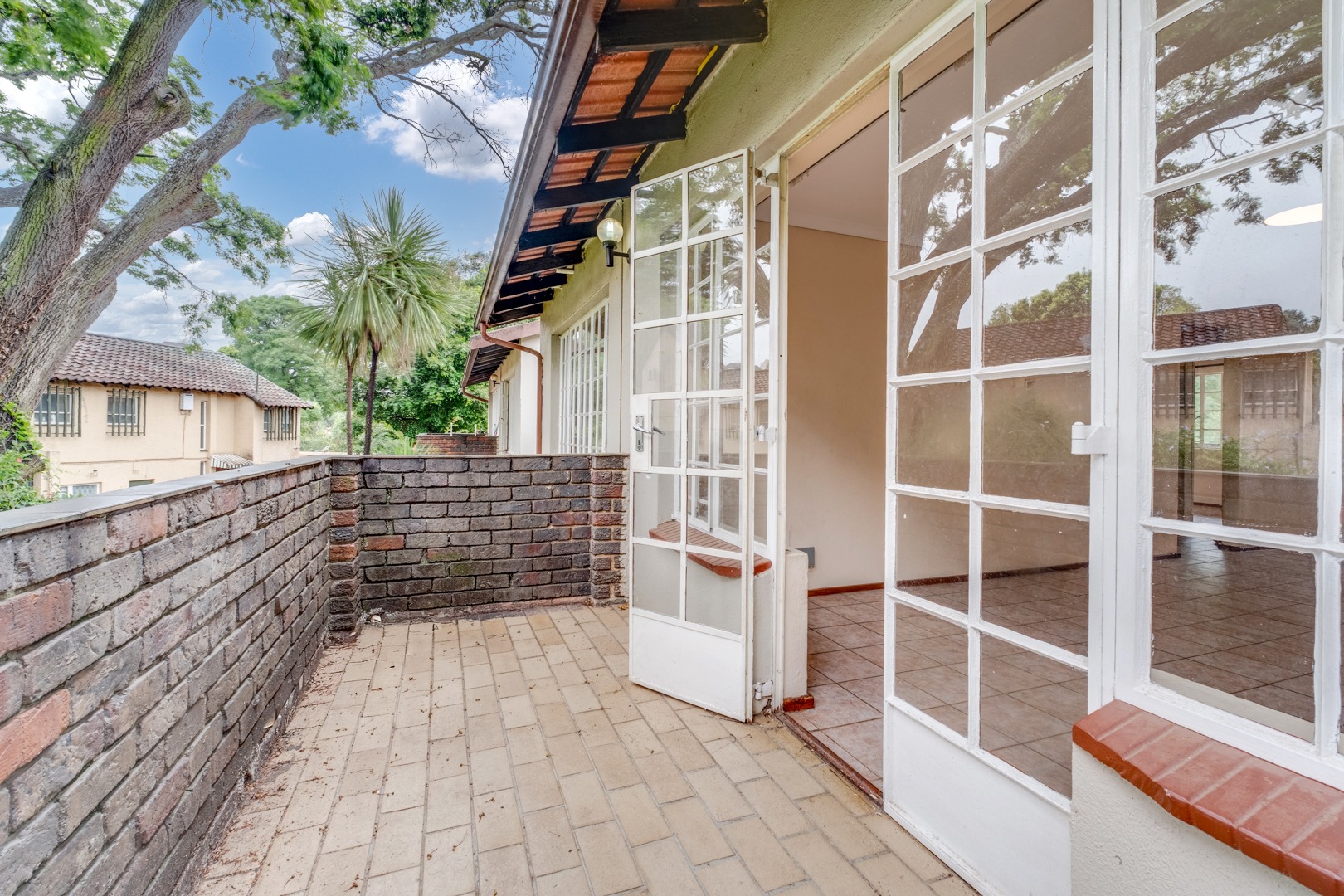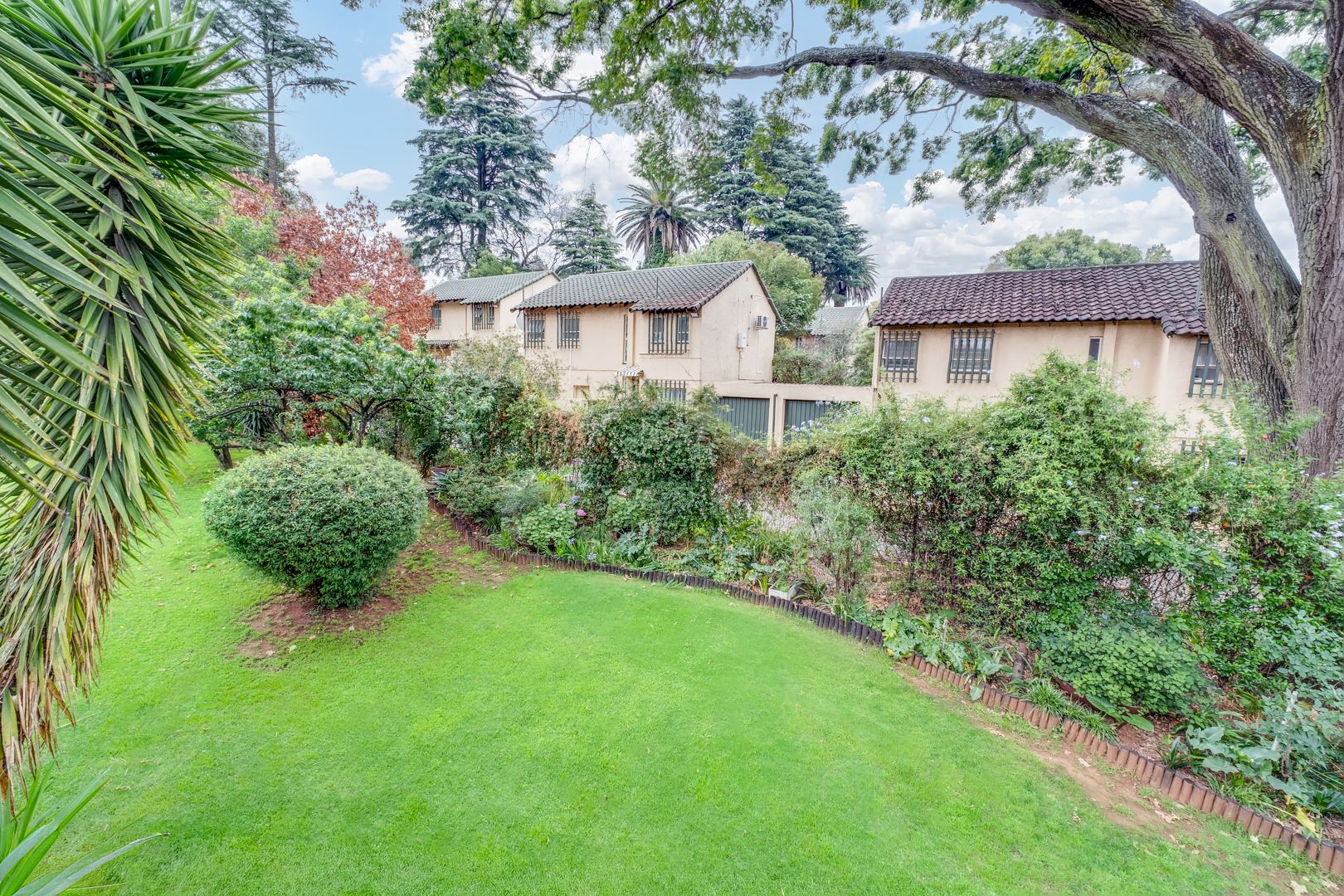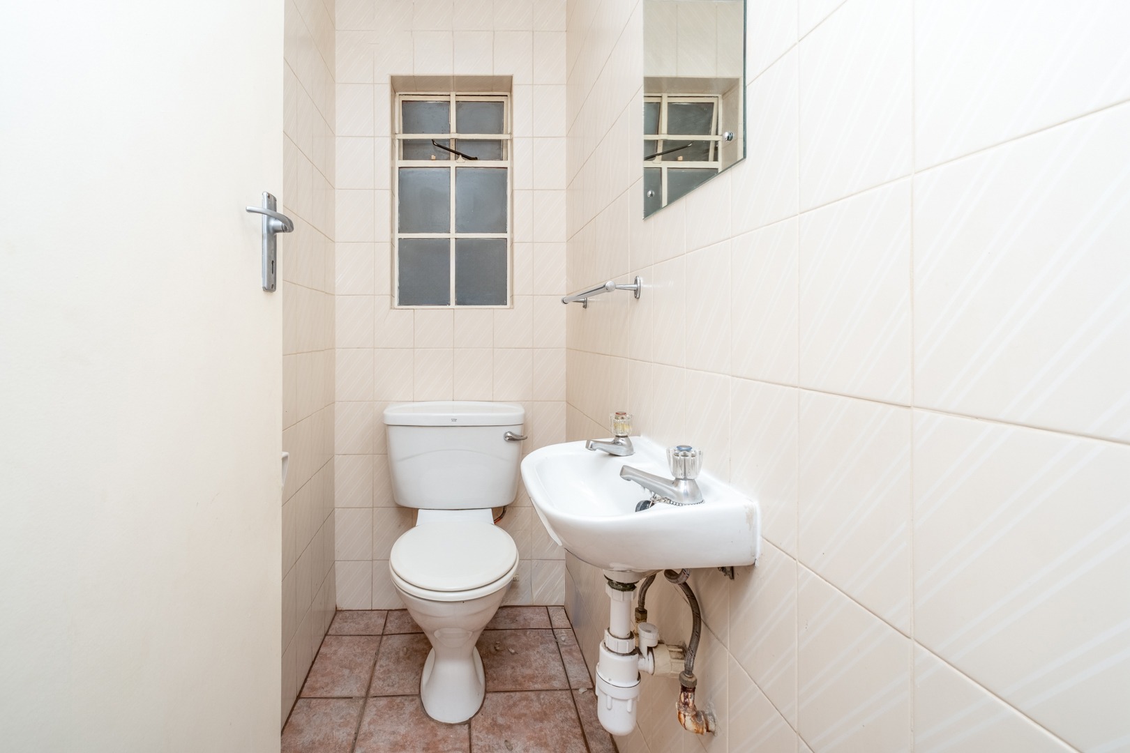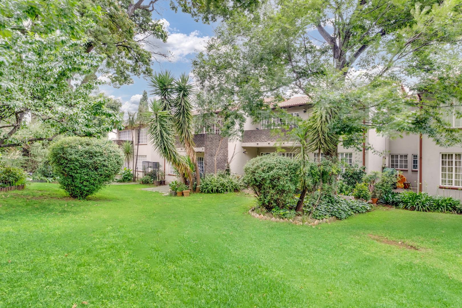 This inviting 2-bedroom, 1.5-bathroom apartment is situated in a well-maintained complex in the desirable suburban area of Northcliff, Randburg. The property presents a practical and comfortable living solution, featuring a light-colored facade, individual ground-level garages, and a paved parking area, all framed by mature trees that enhance its curb appeal. The complex offers a secure environment with an access gate, providing peace of mind for residents.