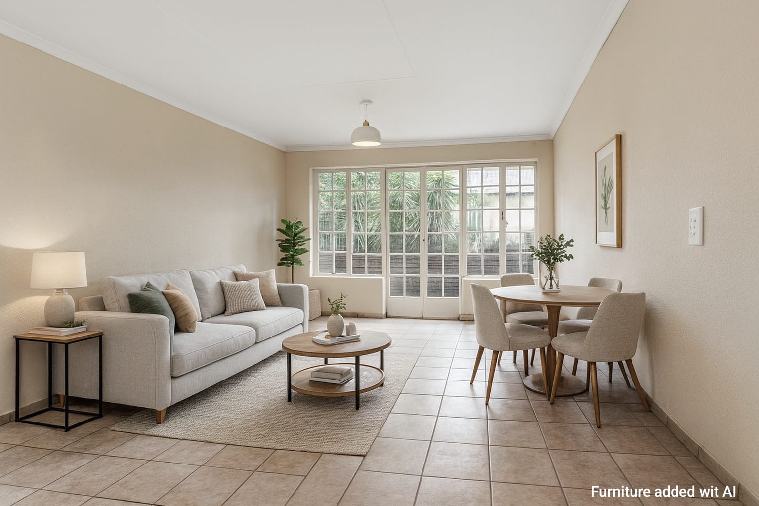 Step inside to discover a bright and spacious open-plan living area, designed for modern comfort. Neutral colored walls and light-toned tiled flooring create a versatile canvas, ready for your personal touch. Abundant natural light streams through large windows and glass doors, illuminating the space and creating an airy atmosphere. The layout seamlessly connects the lounge and dining areas, with an open pass-through to the kitchen, fostering an inclusive environment perfect for daily living and entertaining.
