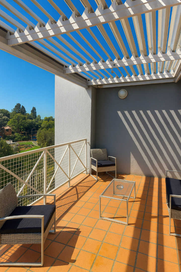 Nestled in the desirable suburban area of Northcliff, Randburg, this modern apartment offers a prime metropolitan lifestyle in South Africa. The property presents a striking kerb appeal with its minimalist white architecture and clean lines, set within a well-maintained multi-level complex. Designed to accommodate the natural slope, the exterior features dedicated covered carports and a charming paver driveway, contributing to a sophisticated first impression. This secure complex benefits from 24-hour security and a security post, ensuring peace of mind.