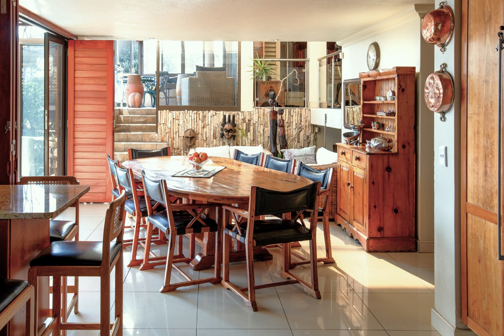 Enjoy unforgettable sunsets from the entertainment deck accessed through double stacker doors — one set in white wood and the other in aluminum and glass — all with uninterrupted views of the Johannesburg skyline.