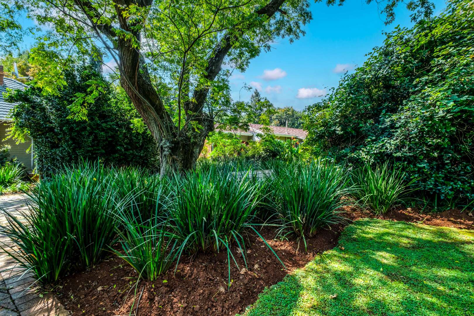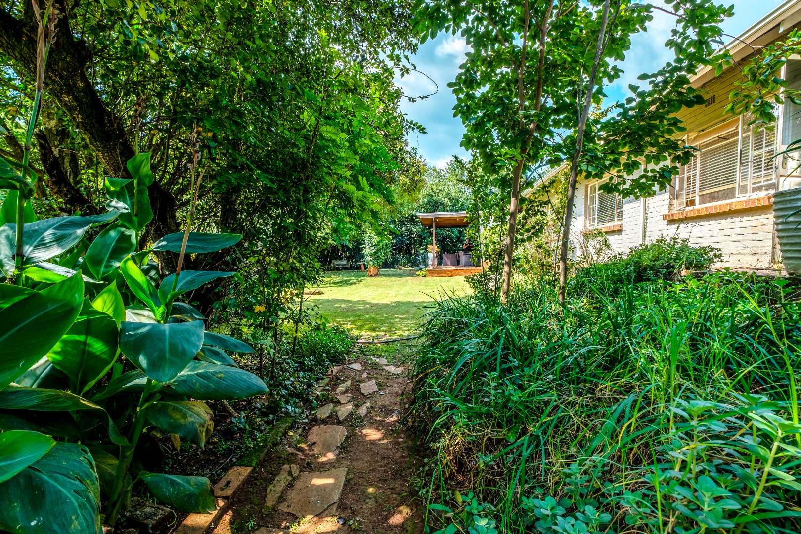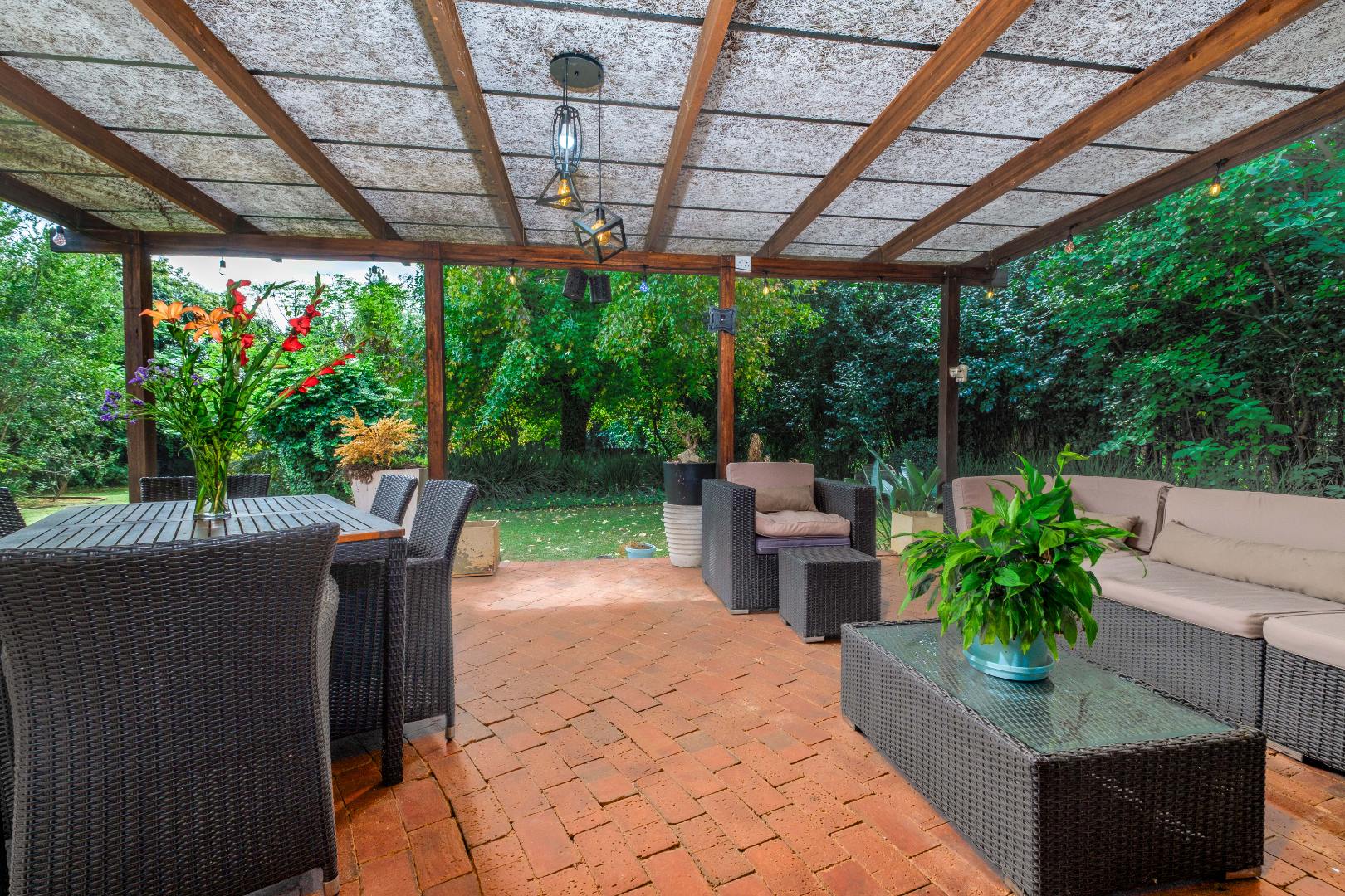 The expansive garden is a true highlight, featuring beautiful, established trees — including fruit trees — that provide ample shade, along with a sparkling swimming pool for those warm summer days. The property also includes a borehole (pump required), adding great potential for water sustainability.