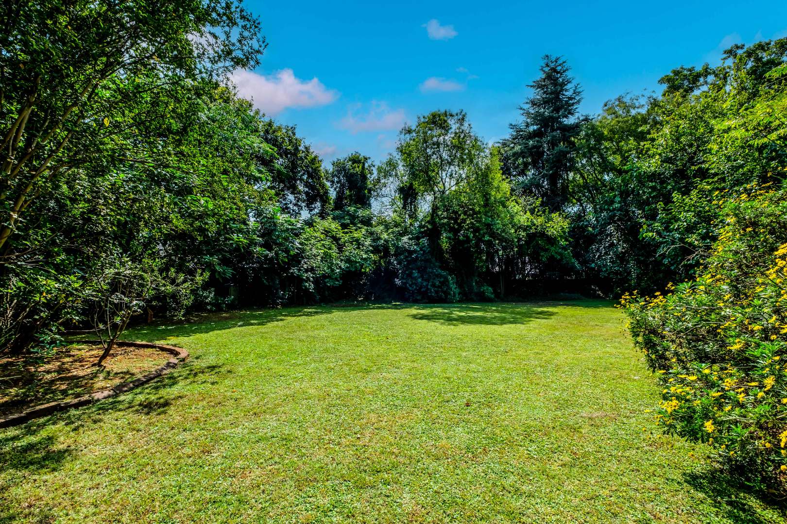 A passage leads to three spacious bedrooms and two bathrooms. The main bedroom boasts an en-suite bathroom and opens out directly into the lush garden, offering a peaceful retreat. One of the additional bathrooms includes a separate toilet for added convenience.