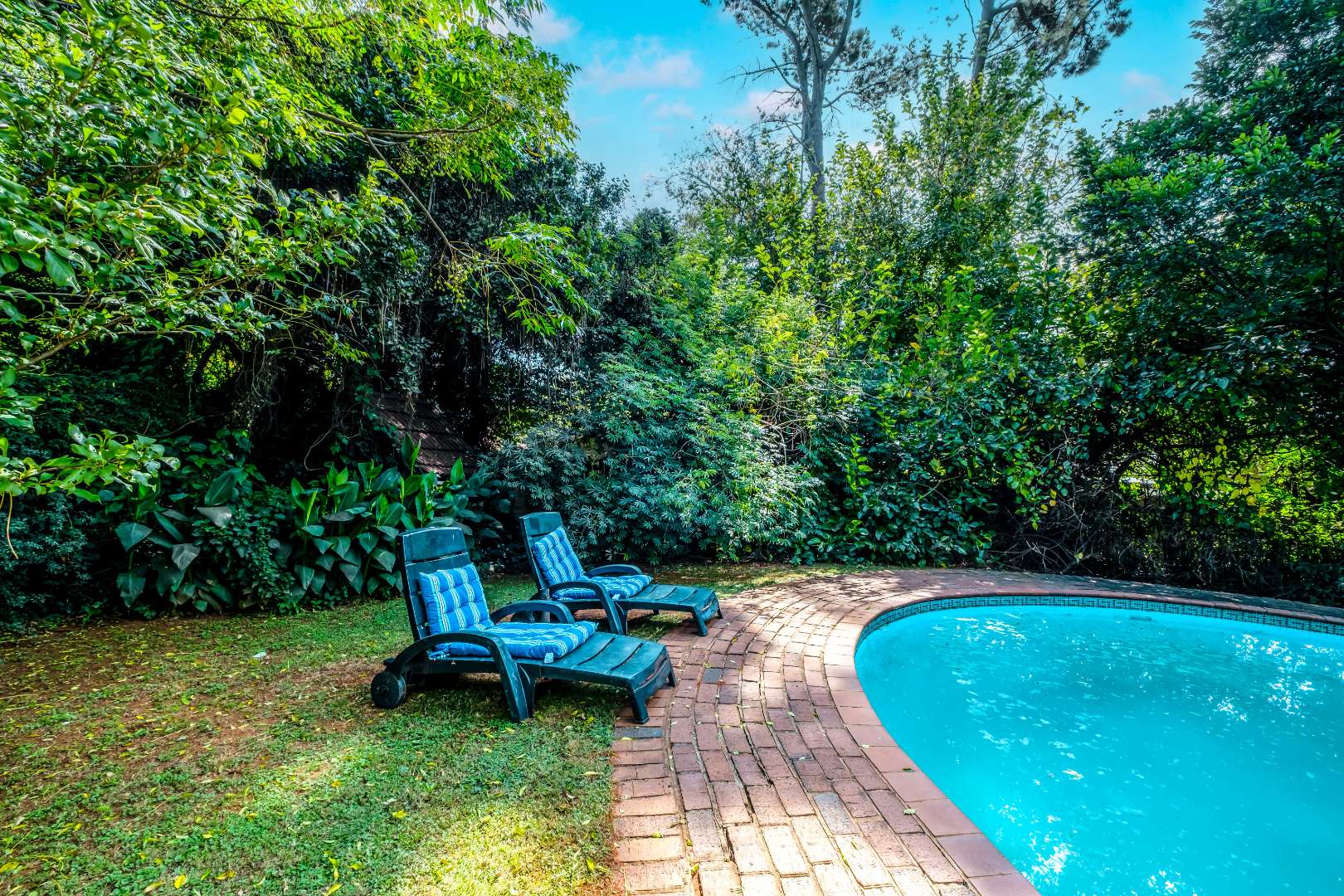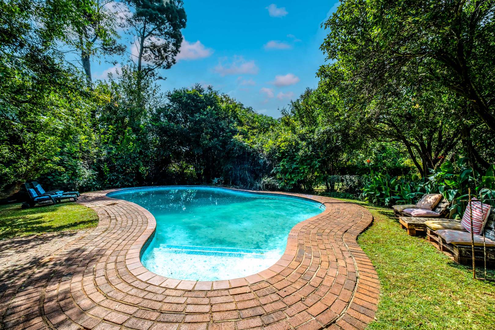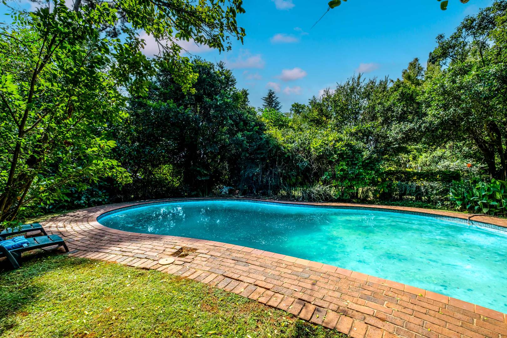 The expansive garden is a true highlight, featuring beautiful, established trees — including fruit trees — that provide ample shade, along with a sparkling swimming pool for those warm summer days. The property also includes a borehole (pump required), adding great potential for water sustainability.