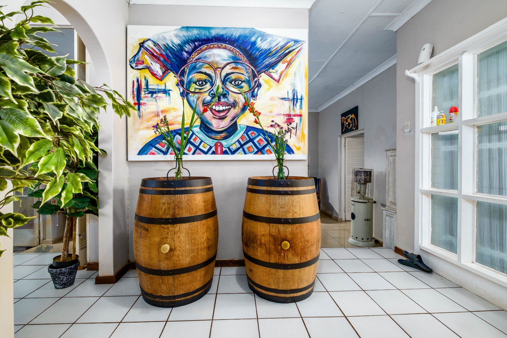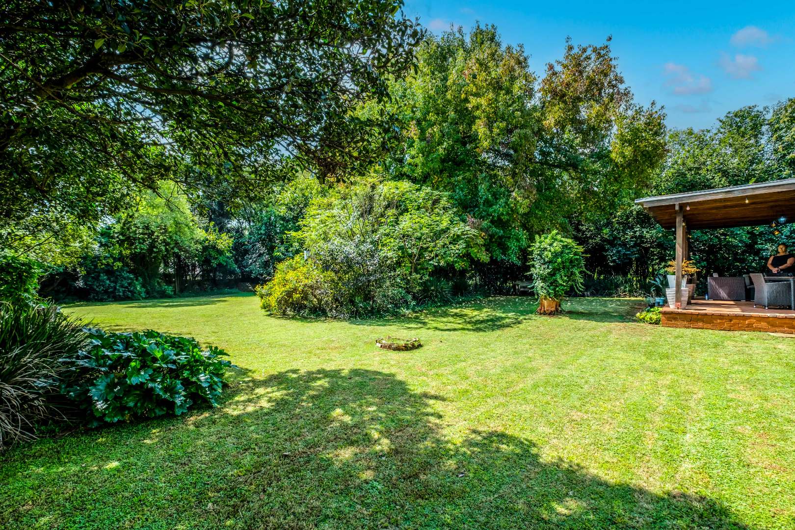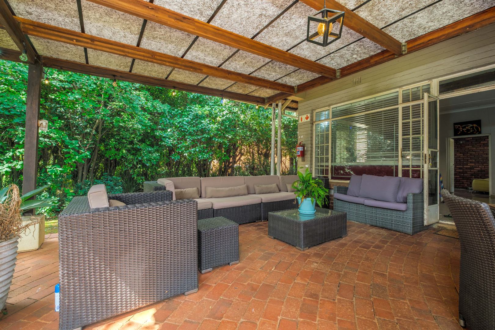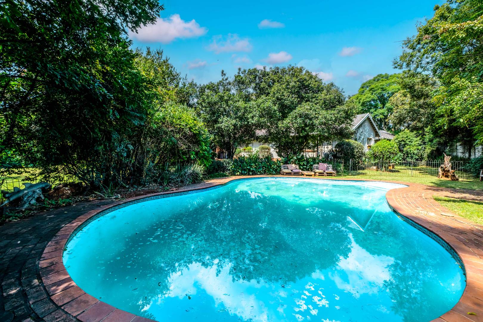 The expansive garden is a true highlight, featuring beautiful, established trees — including fruit trees — that provide ample shade, along with a sparkling swimming pool for those warm summer days. The property also includes a borehole (pump required), adding great potential for water sustainability.