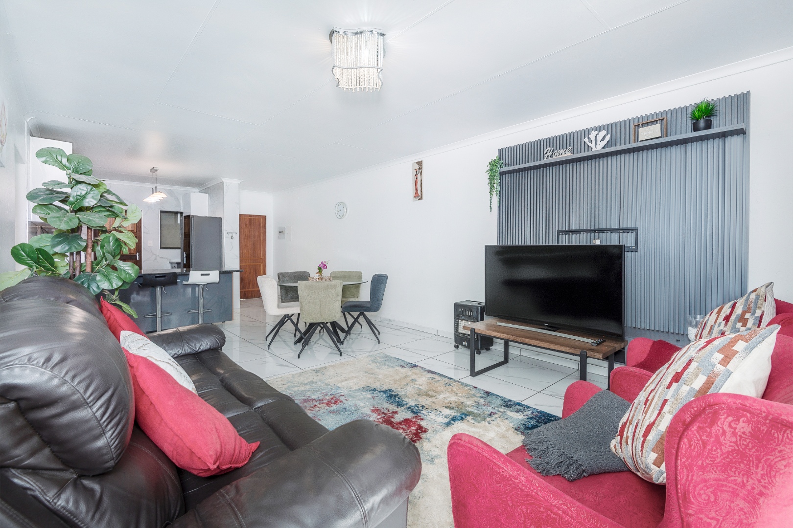 Step inside and you’ll find modern finishes and a trendy flair throughout. The sleek, high-gloss, open-plan kitchen flows effortlessly into the lounge and dining area. With no carpets, only fully tiled floors, the space is easy to maintain and ideal for a stylish, low-maintenance lifestyle. Spacious bedrooms add comfort, while the open layout creates the perfect setting for both relaxation and entertaining.