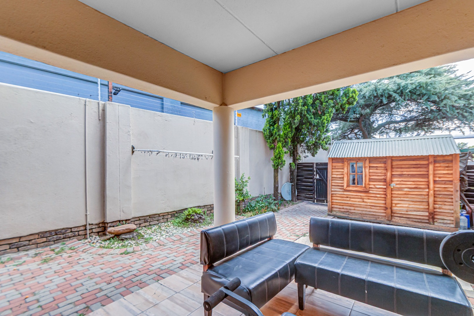 Step outside to discover a private oasis featuring a clean swimming pool in the complex, a spacious, well-maintained lawn, and a charming gazebo perfect for relaxation or entertaining. The garden provides a tranquil setting, complemented by a Wendy house for additional utility. Residents also benefit from two dedicated parking spaces, a clubhouse, and a communal braai area, with pets allowed.