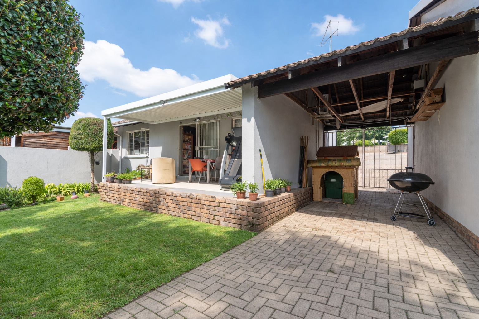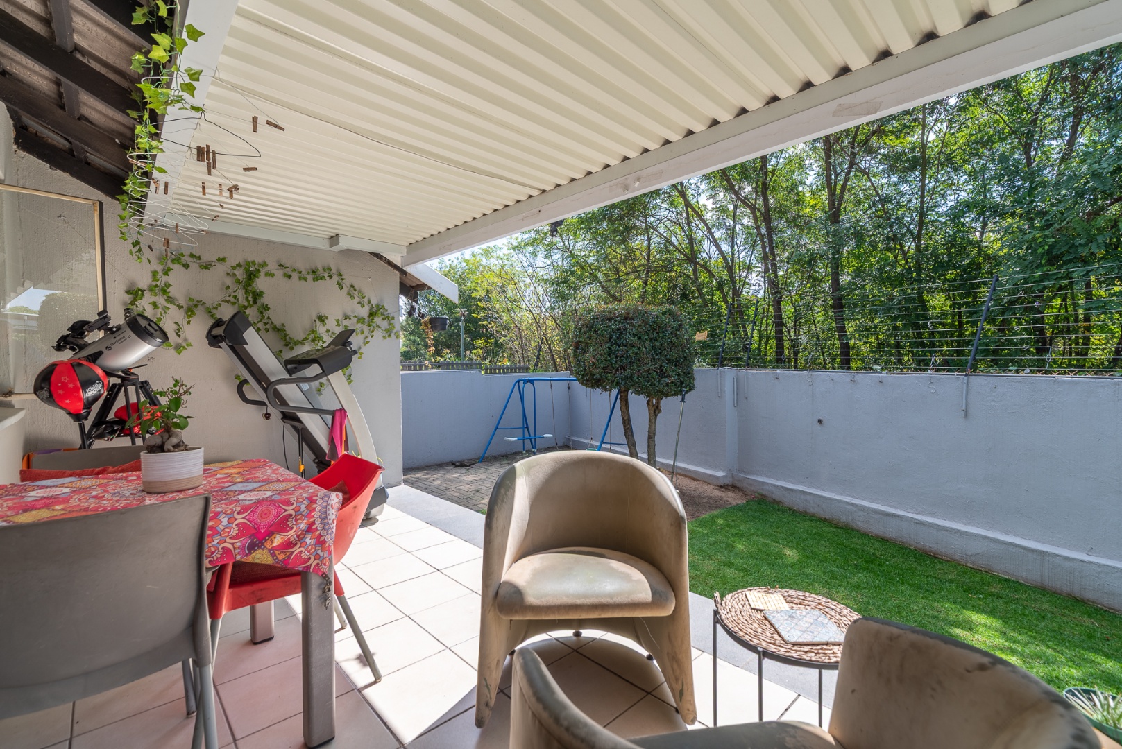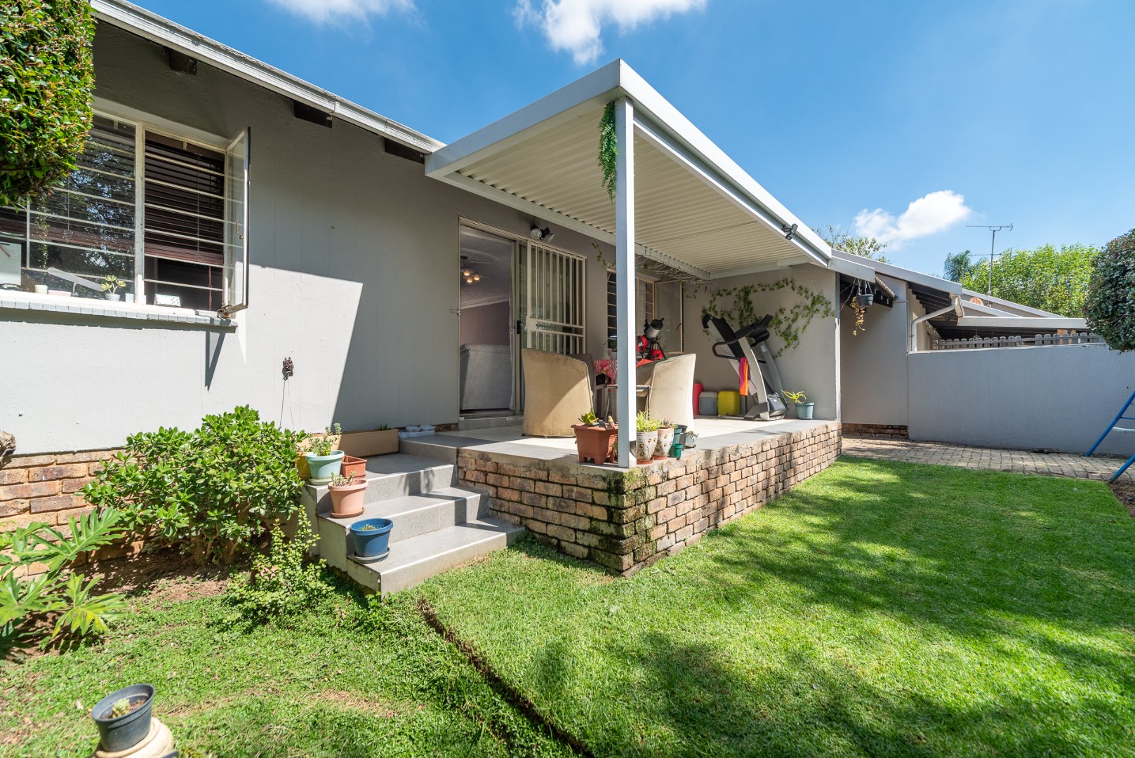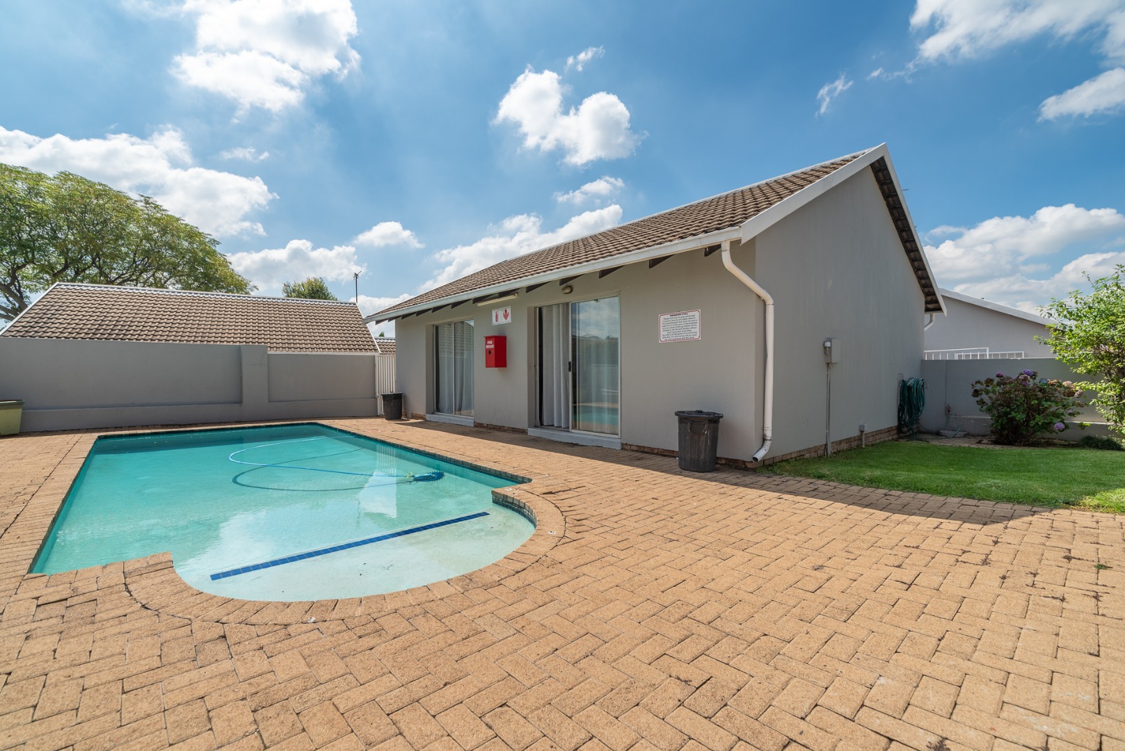 Step outside to a private patio, perfect for outdoor dining or enjoying the fresh air. Residents benefit from access to a communal pool, ideal for leisure and recreation. Practical amenities include a dedicated parking space, additional storage facilities, and a convenient Wendy house. For year-round comfort, the property is equipped with air conditioning, and fibre connectivity ensures seamless internet access.