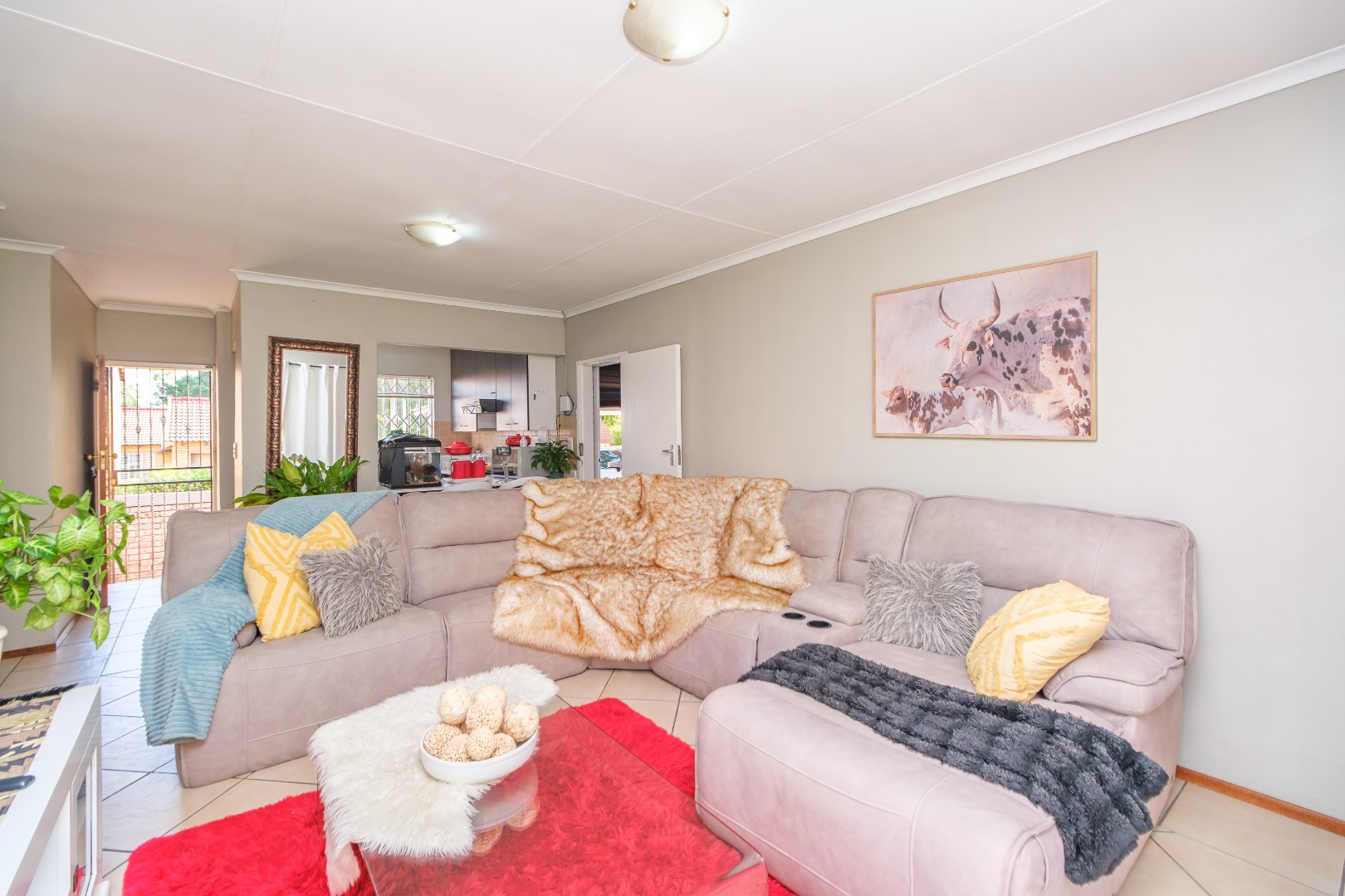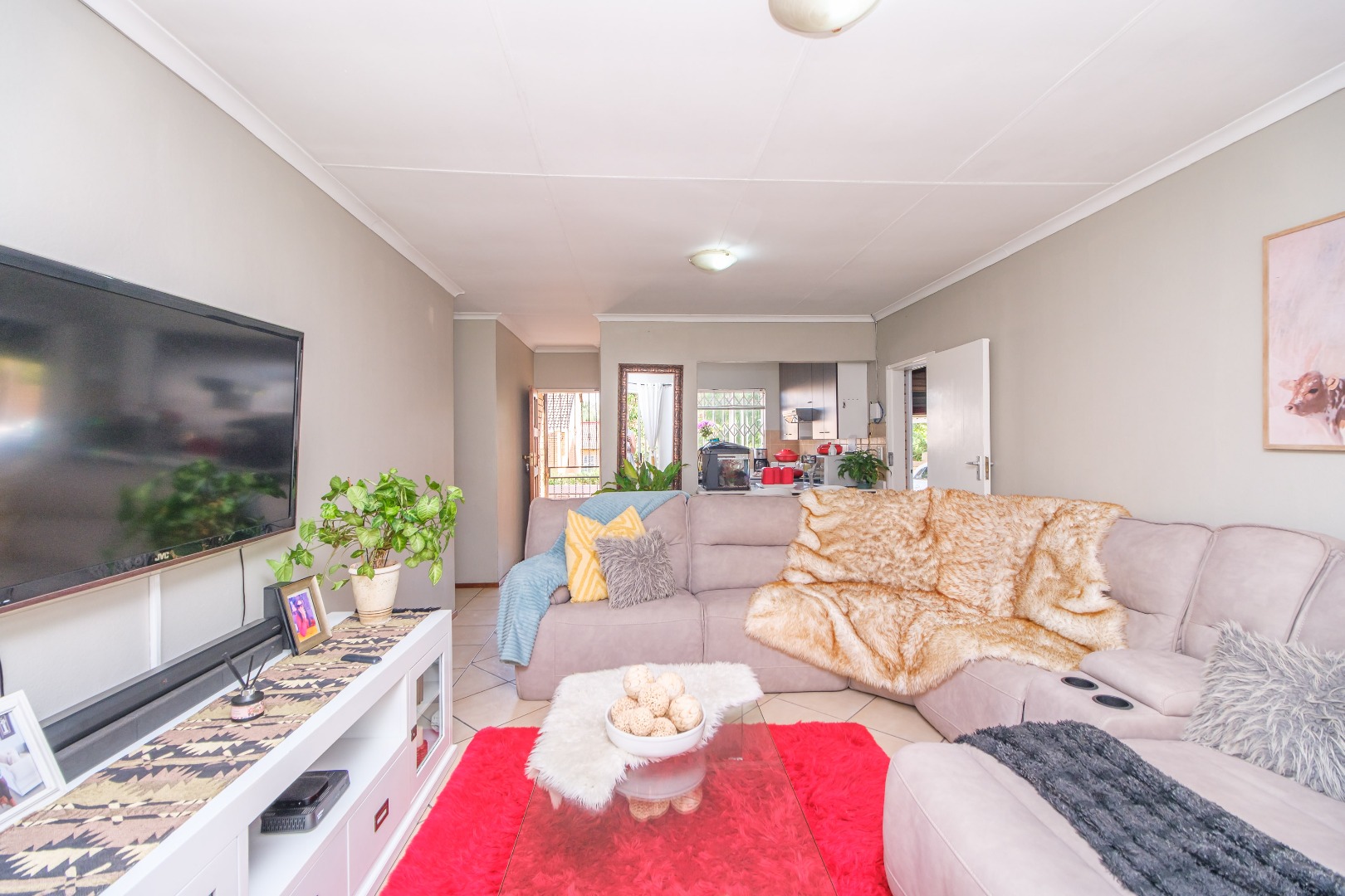 A double garage plus a double carport provides ample parking for family and guests. Step inside to a spacious lounge that flows seamlessly into the open-plan kitchen, creating a warm and inviting living space.