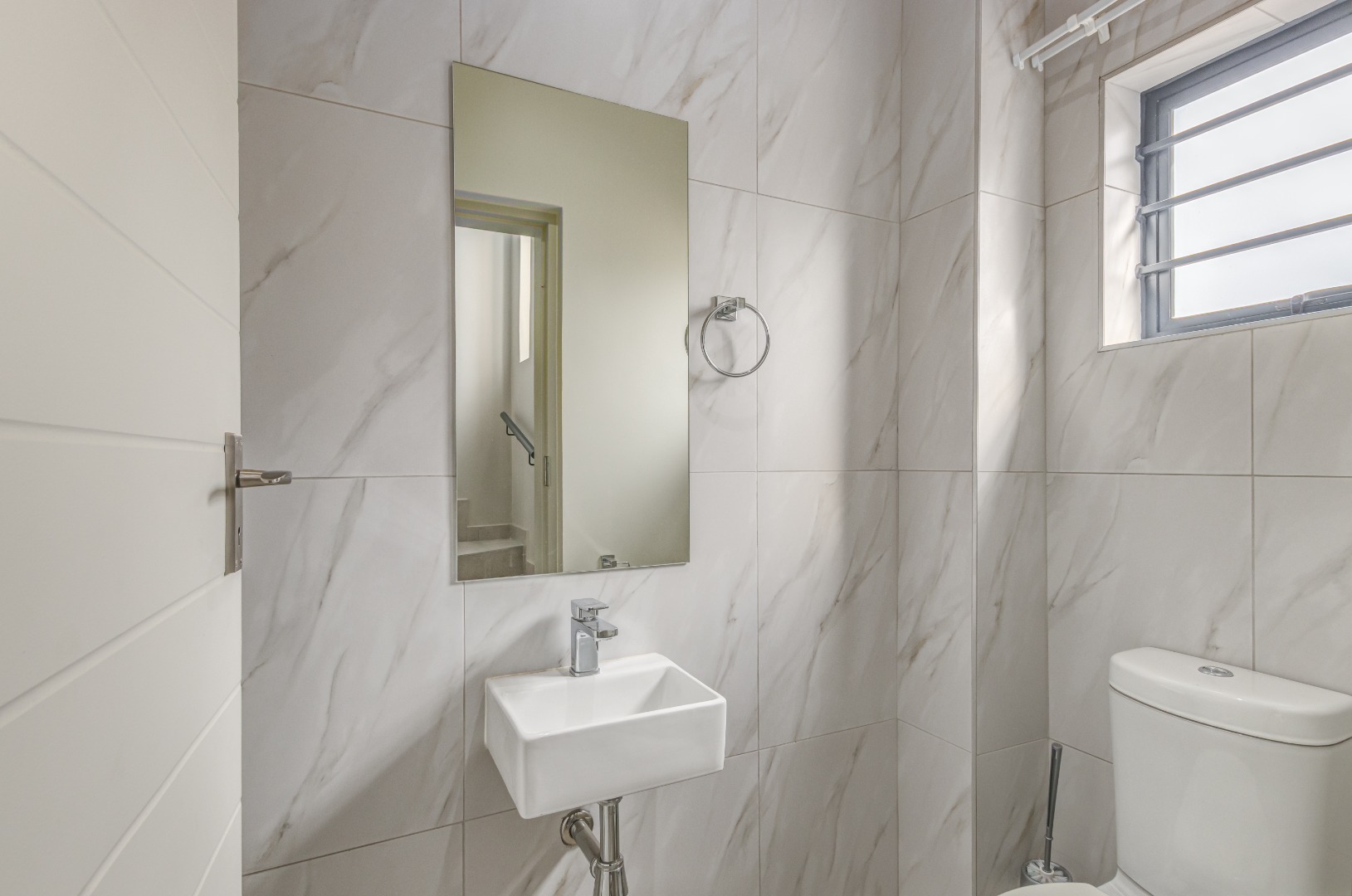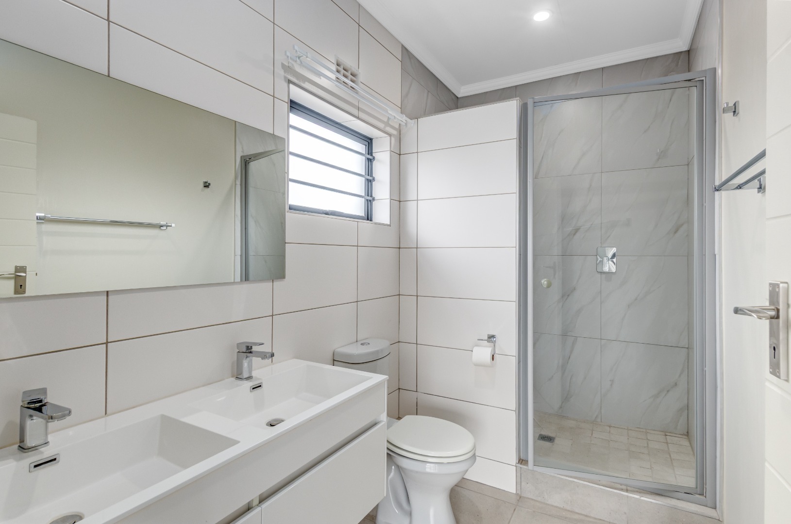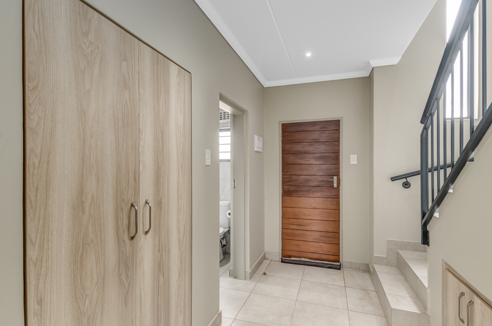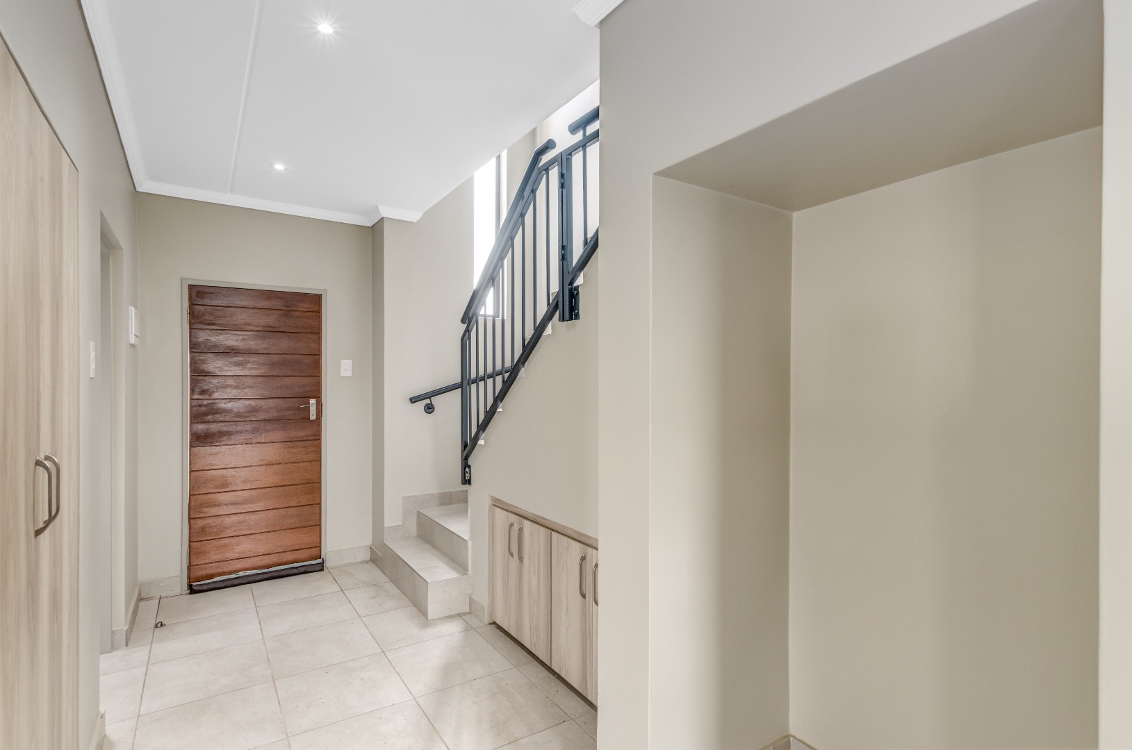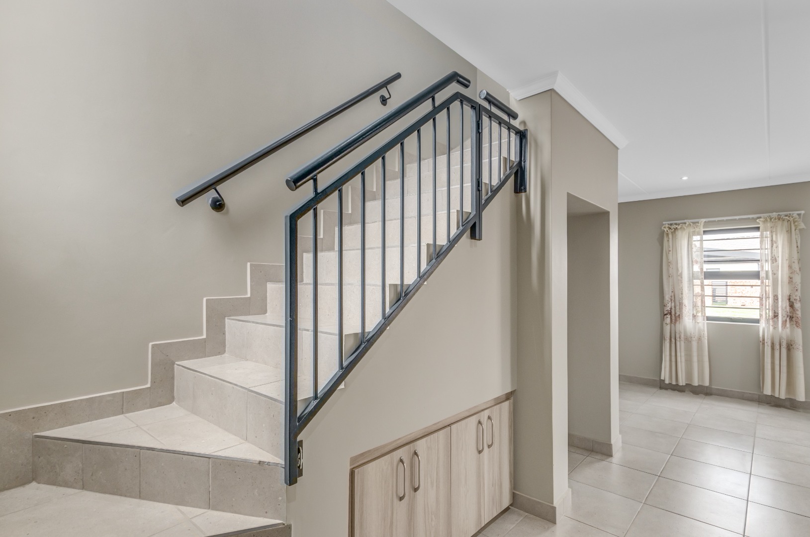 Upstairs, you will find three well-appointed bedrooms and 2 bathrooms, offering comfortable accommodation for the whole family. The home extends its living space outdoors with a private patio and a charming garden, ideal for enjoying the South African climate. Parking is ample with four dedicated spaces.