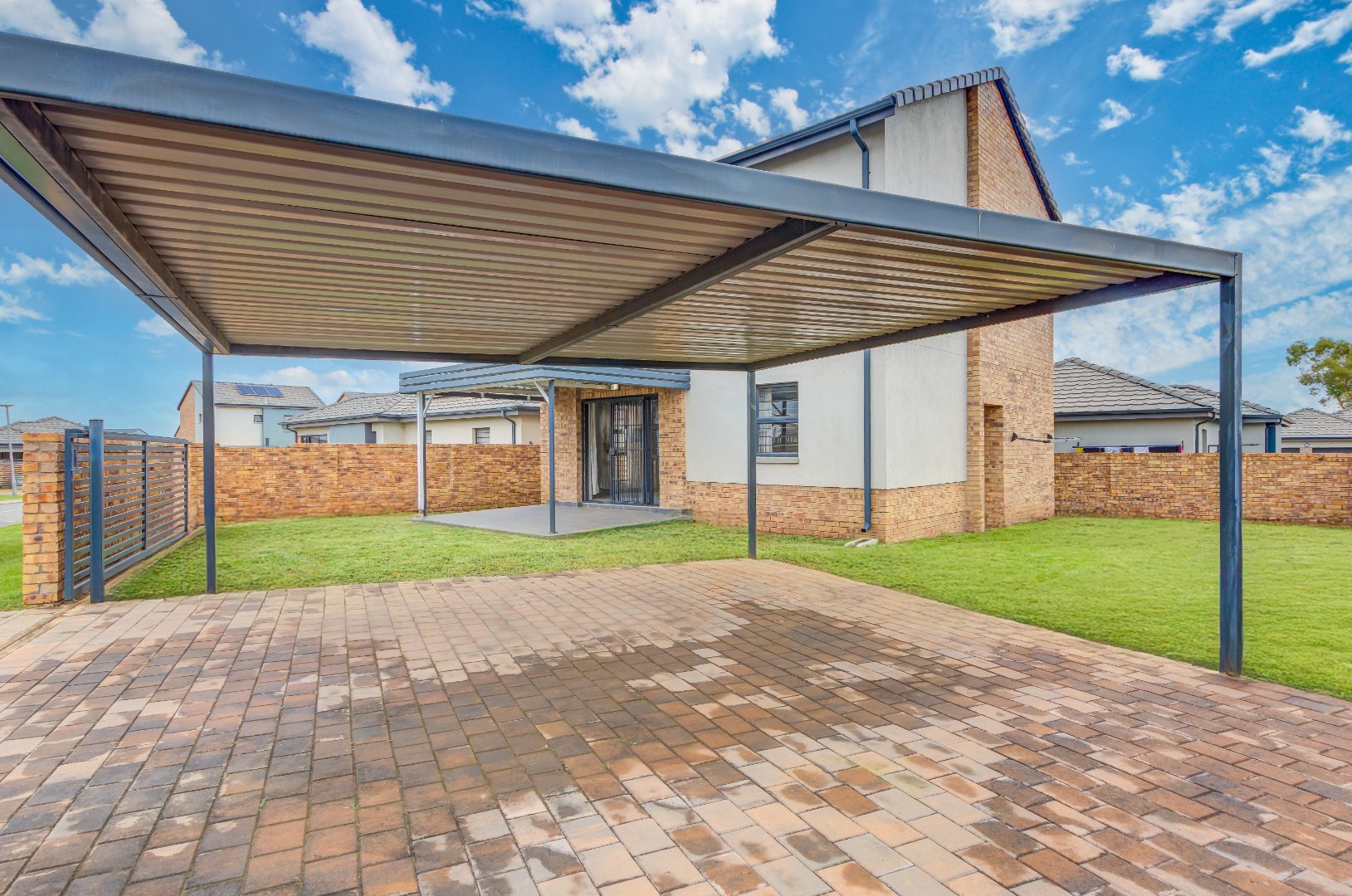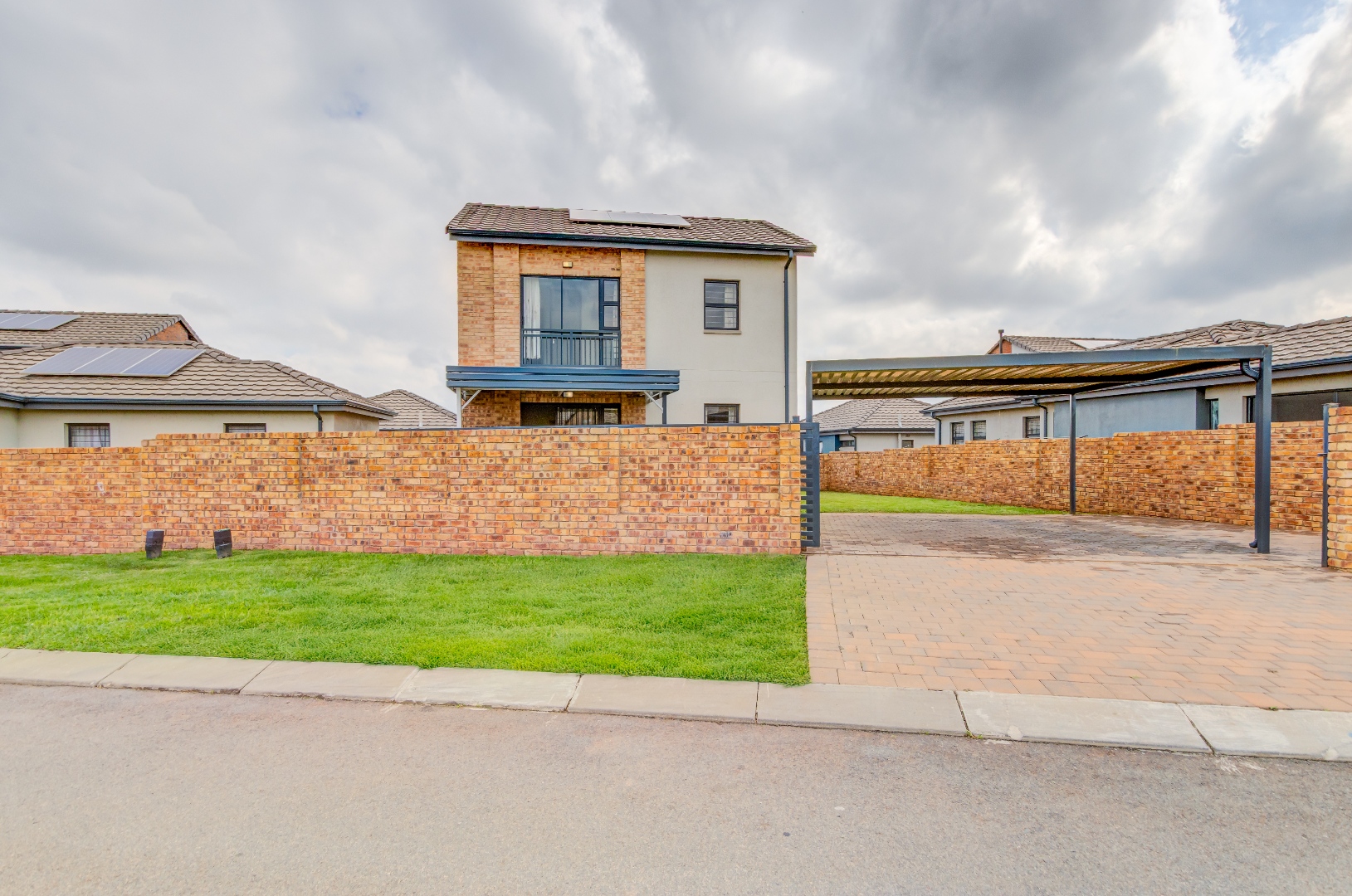 Discover this modern two-story home, perfectly situated within a secure estate in Lion Pride Boasting a contemporary brick and stucco exterior, the property offers excellent kerb appeal with its private gated entrance, brick perimeter wall, and a well-maintained lawn, complemented by a covered carport.